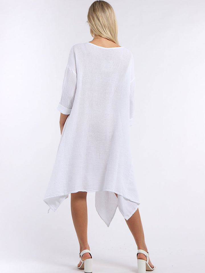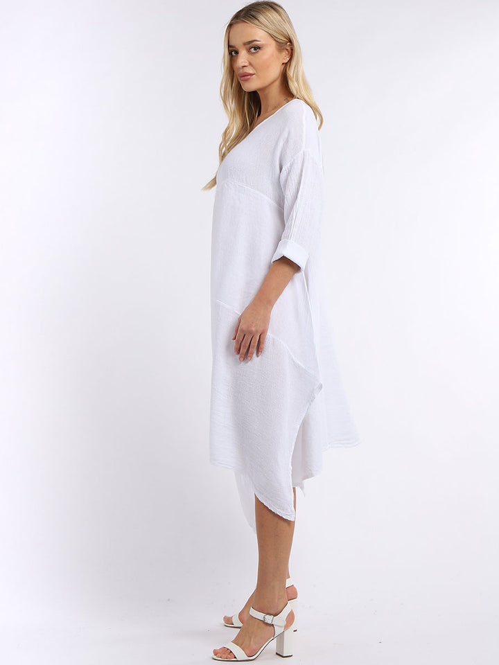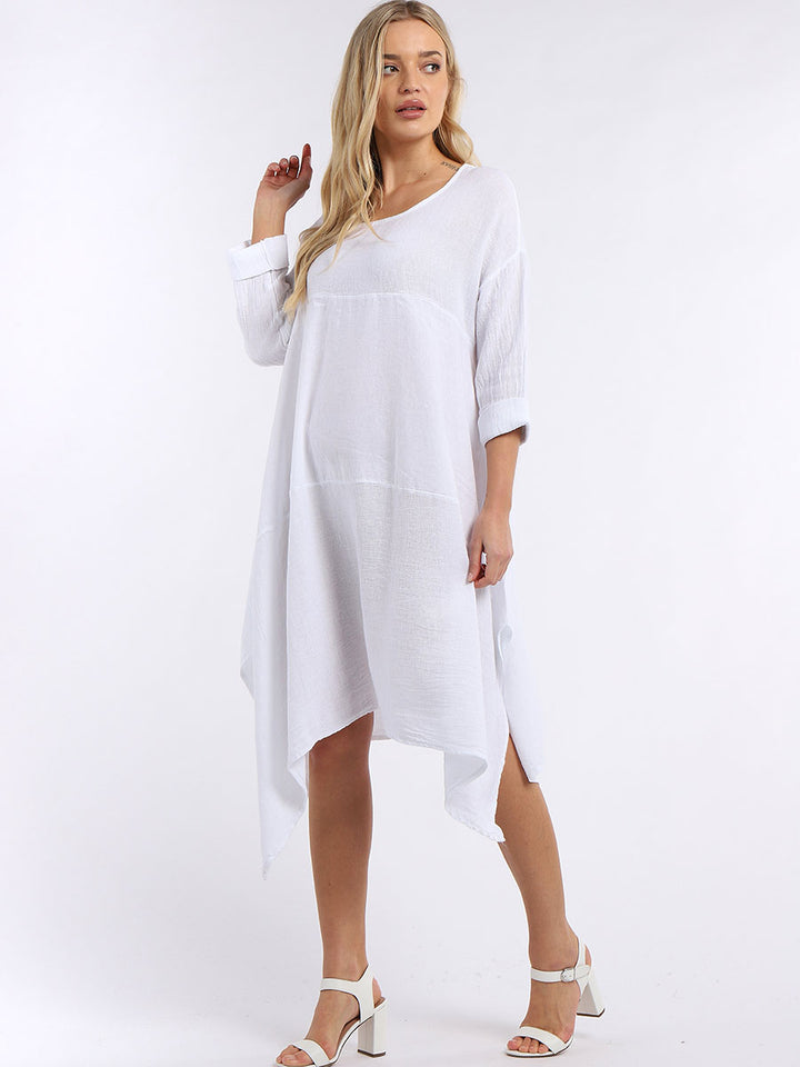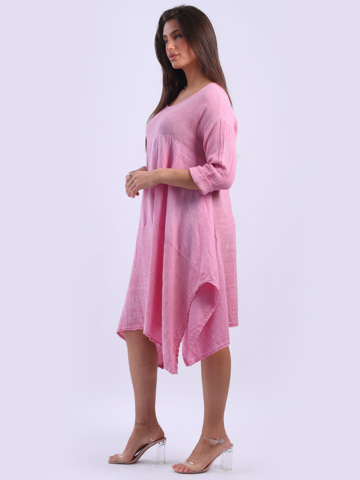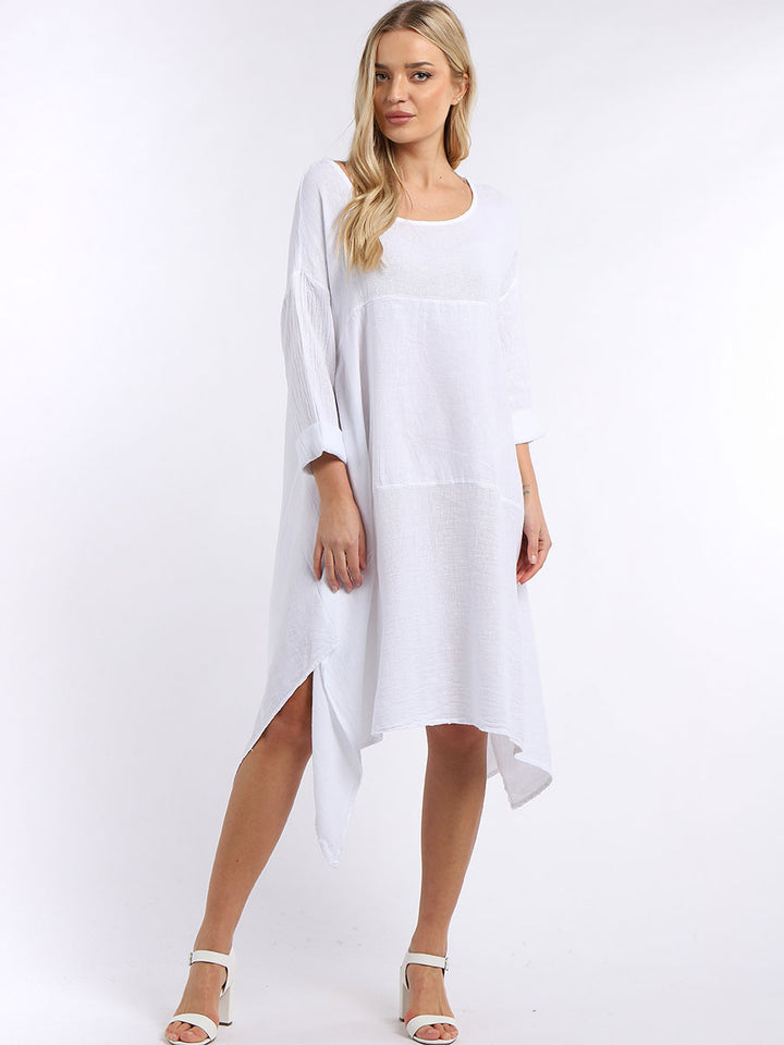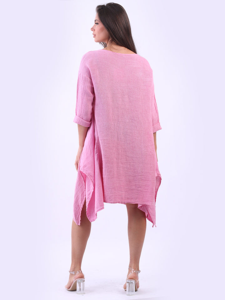 A little fun goes a long way with this pure and soft to touch and feel linen dress by Redwholesale. Made in Italy for promising quality this slouch dress is just so relaxing to look at and women wearers always adore these comfort wardrobe staples with features like turn up sleeves, tunic hem and acid wash dye. The dress would be a perfect partner for couch day in a laid back style.