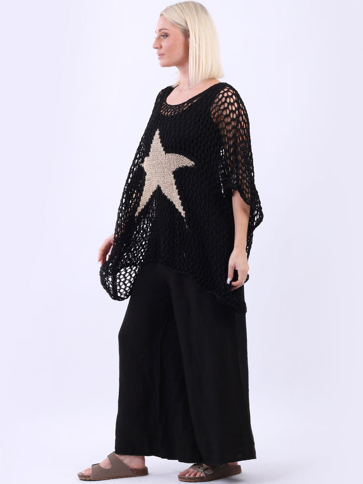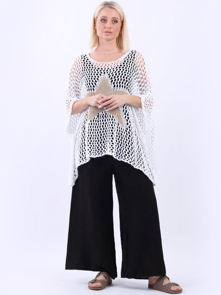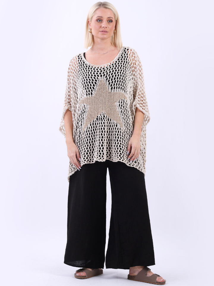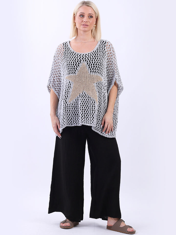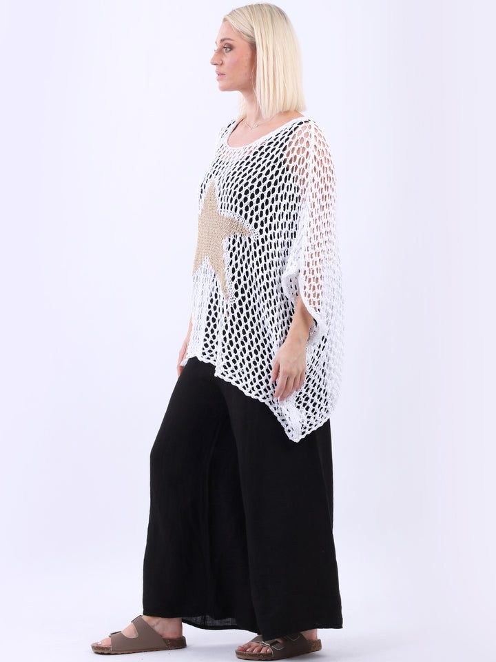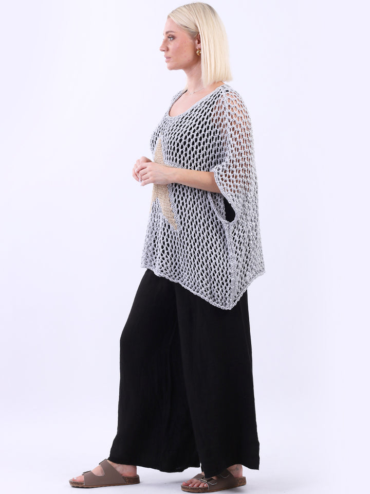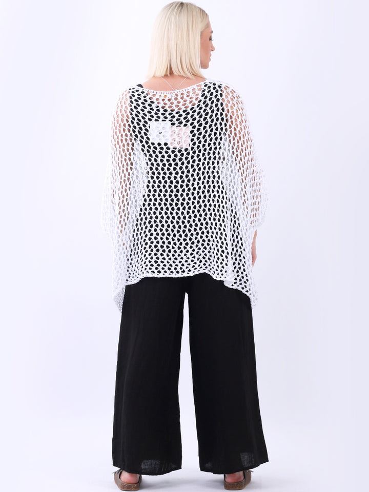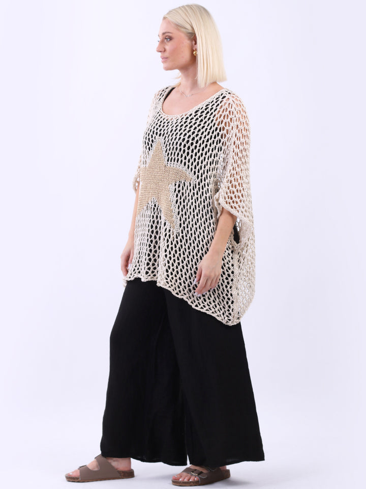 Stardome inspired that is all bling for women wearers to adore every season. It is highly popular among happy shoppers with intricate wide hole knit that is serves peek-a-boo for personal favorites to show and tell and made in Italy with finest soft cotton blend. Layer it over leather pants and long boots.