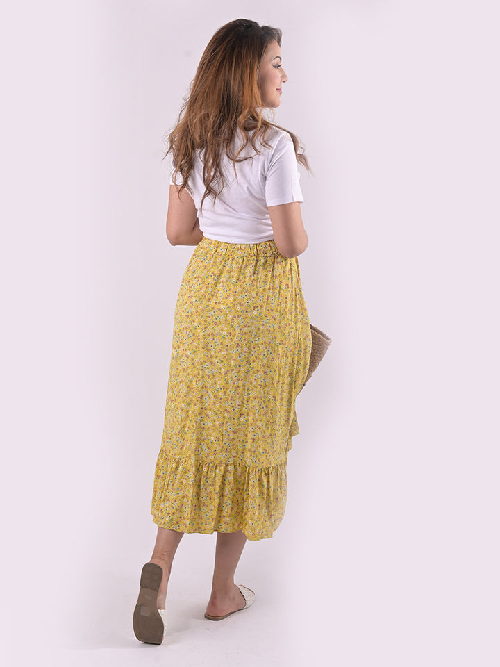 Finest and perfect this ditsy floral print is nostalgic and classic yet with a unique touch of style that is bright by Redwholesale for the women wearers that will cover them for all the summer season. This short skirt is ideal for seasonal perfection with jaw dropping goodness of elastic waist, fringed front with flowy frilled style hem that adds character to every step taken forward. This is a perfect match for crop tops and high heels with cross body bag.