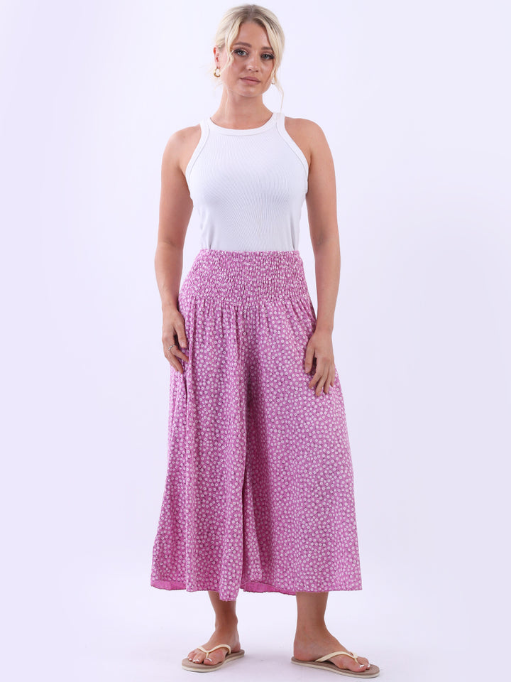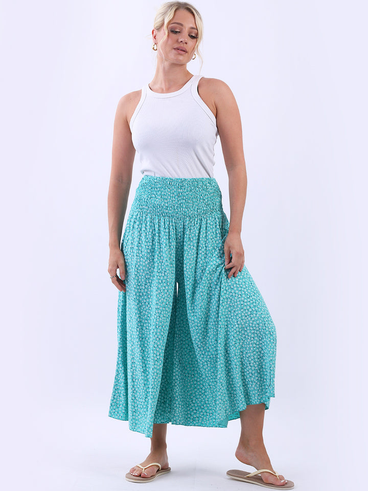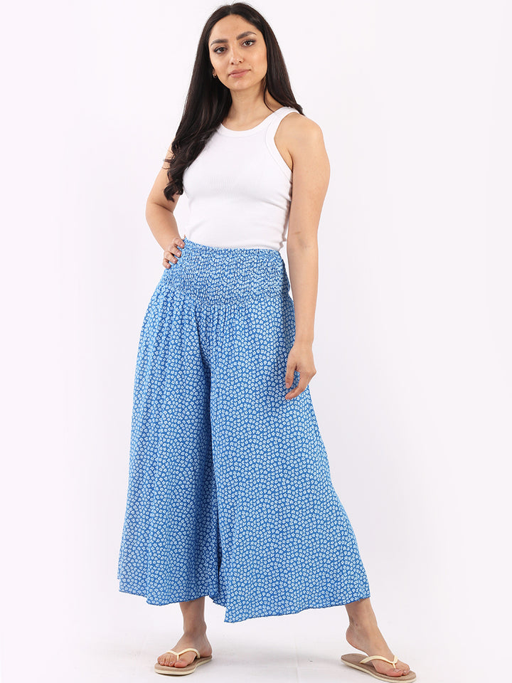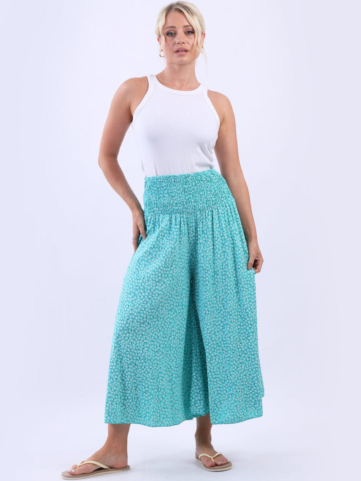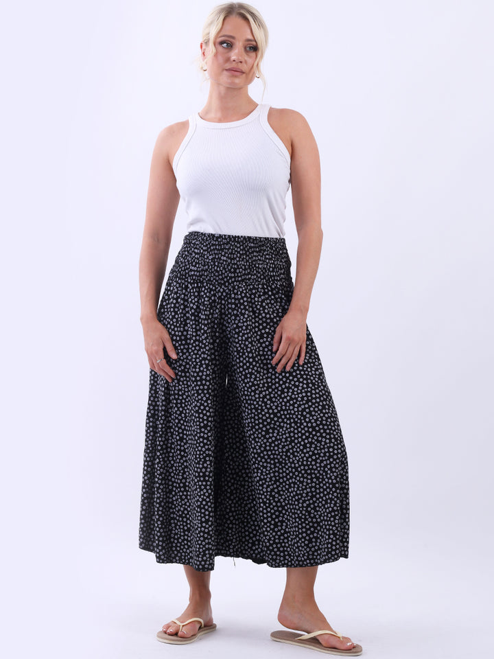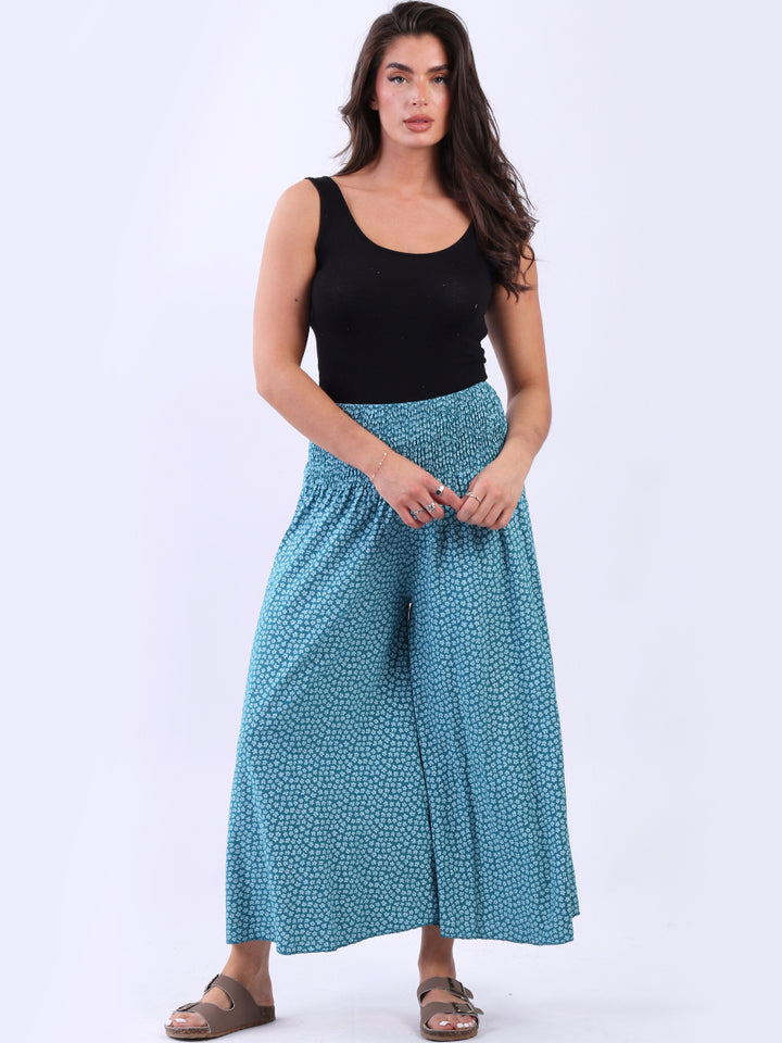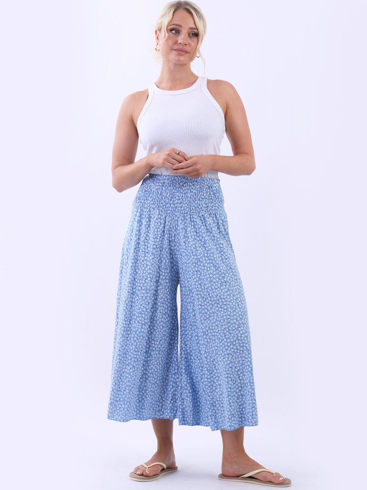 Women fashion wardrobe staples with made in Italy features that matter the most to those looking for what should a woman wear in Italy. This wide leg palazzo has ditsy floral print, flared style and smocked ruched waist and soft high quality fabric. Mix and match with crop top and cotton cardigan from Redwholesale online clothing store UK to finish an classy outdoor look.