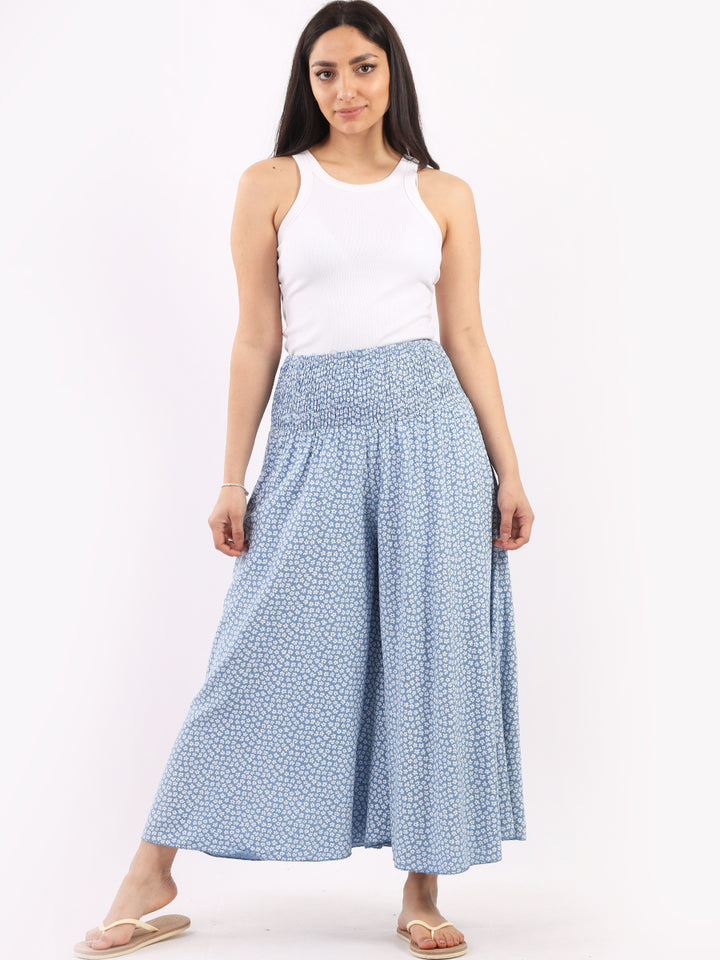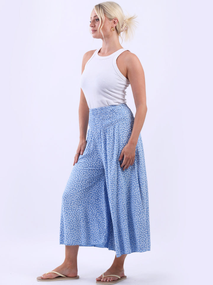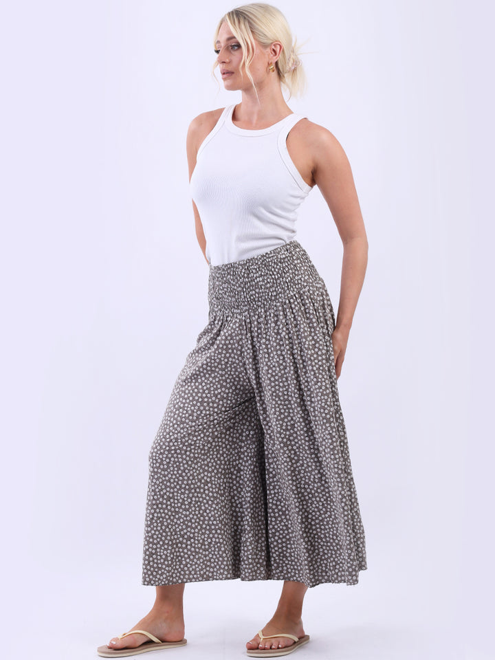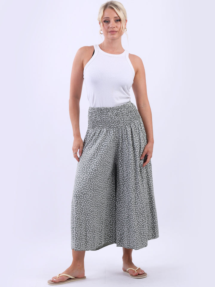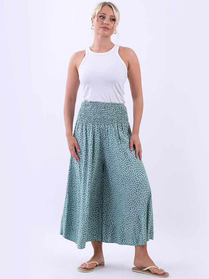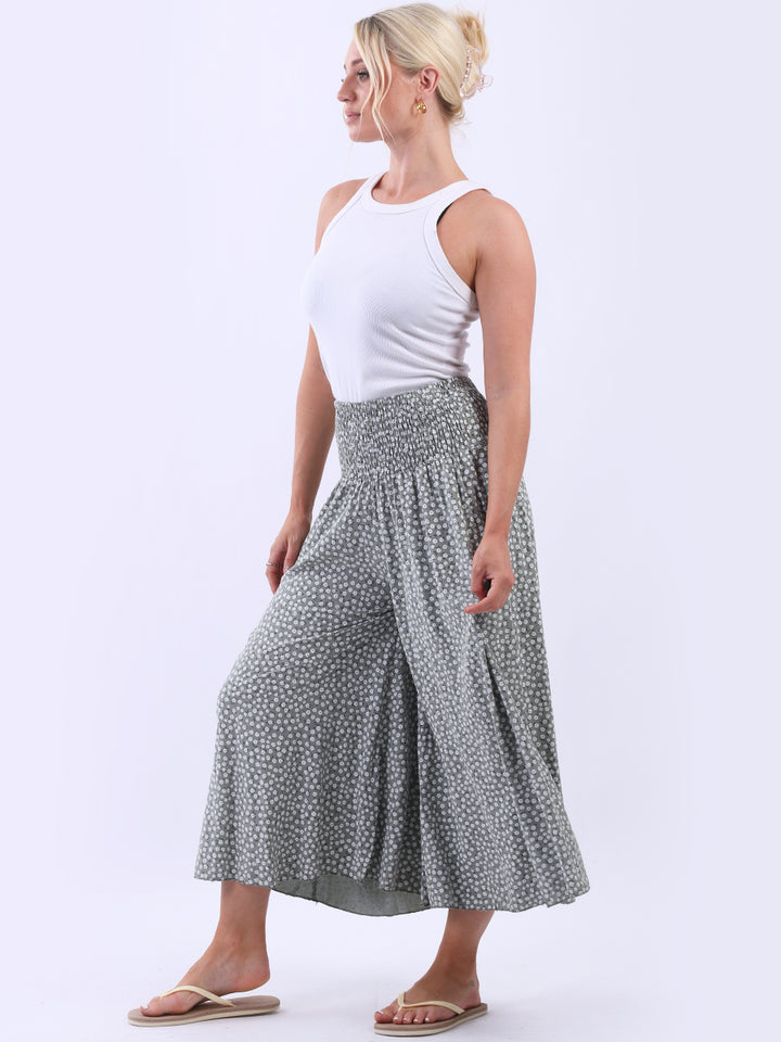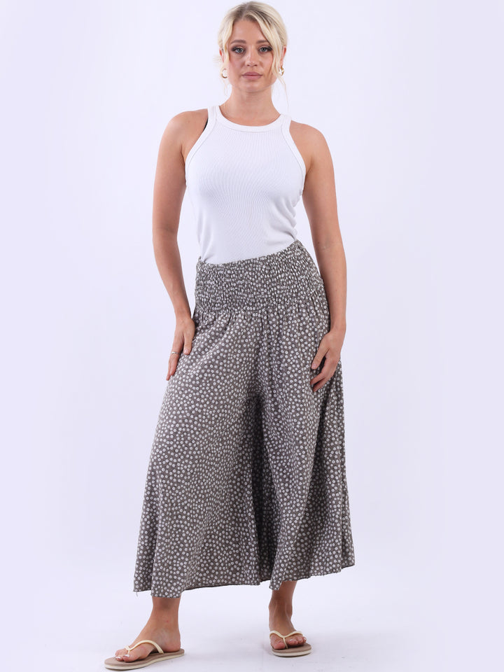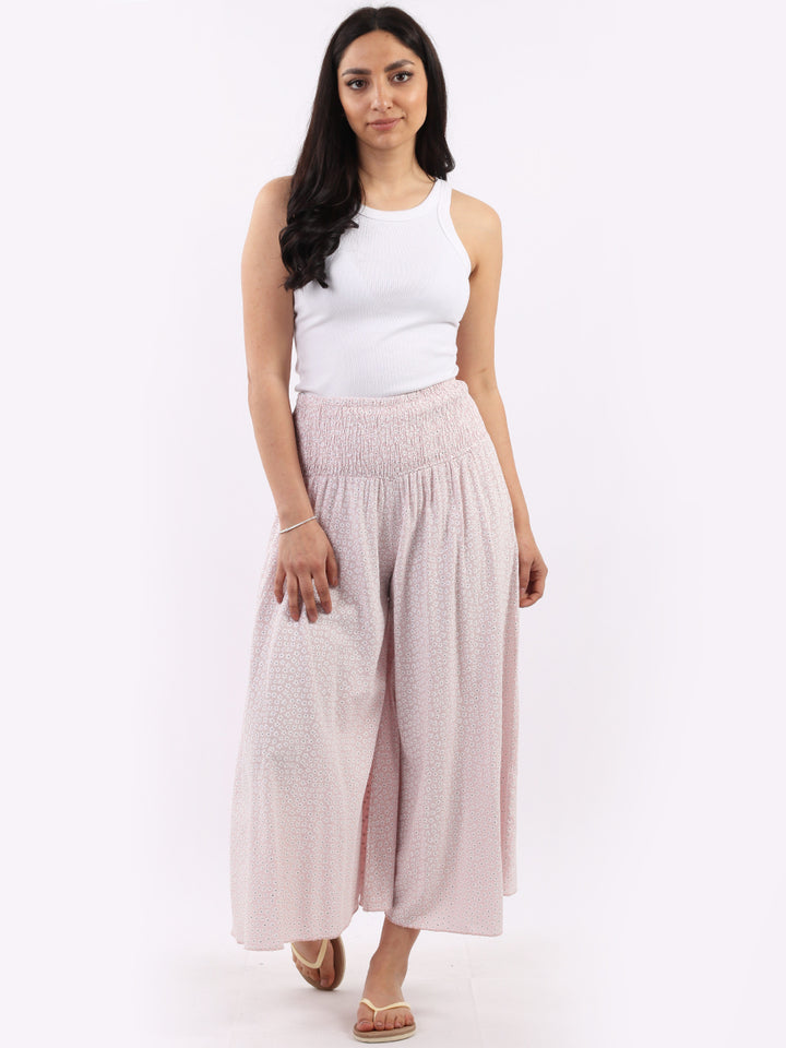 Women fashion wardrobe staples with made in Italy features that matter the most to those looking for what should a woman wear in Italy. This wide leg palazzo has ditsy floral print, flared style and smocked ruched waist and soft high quality fabric. Mix and match with crop top and cotton cardigan from Redwholesale online clothing store UK to finish an classy outdoor look.