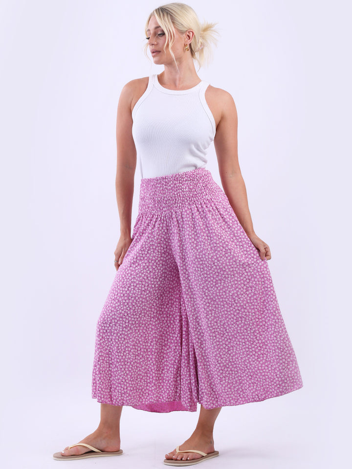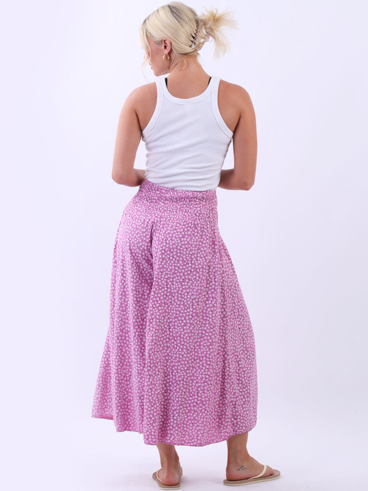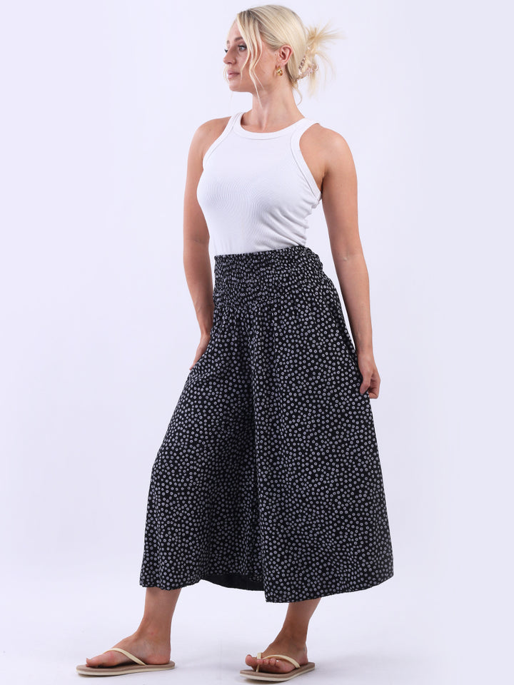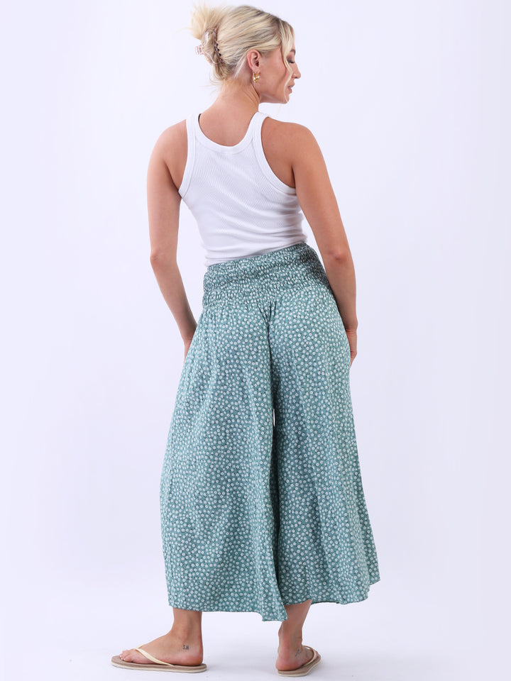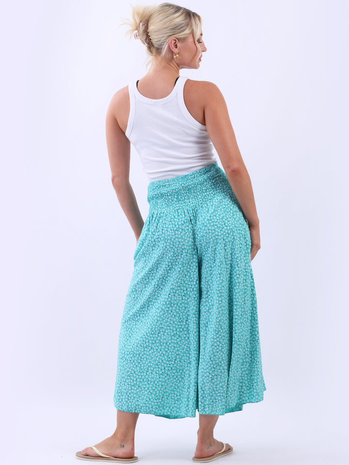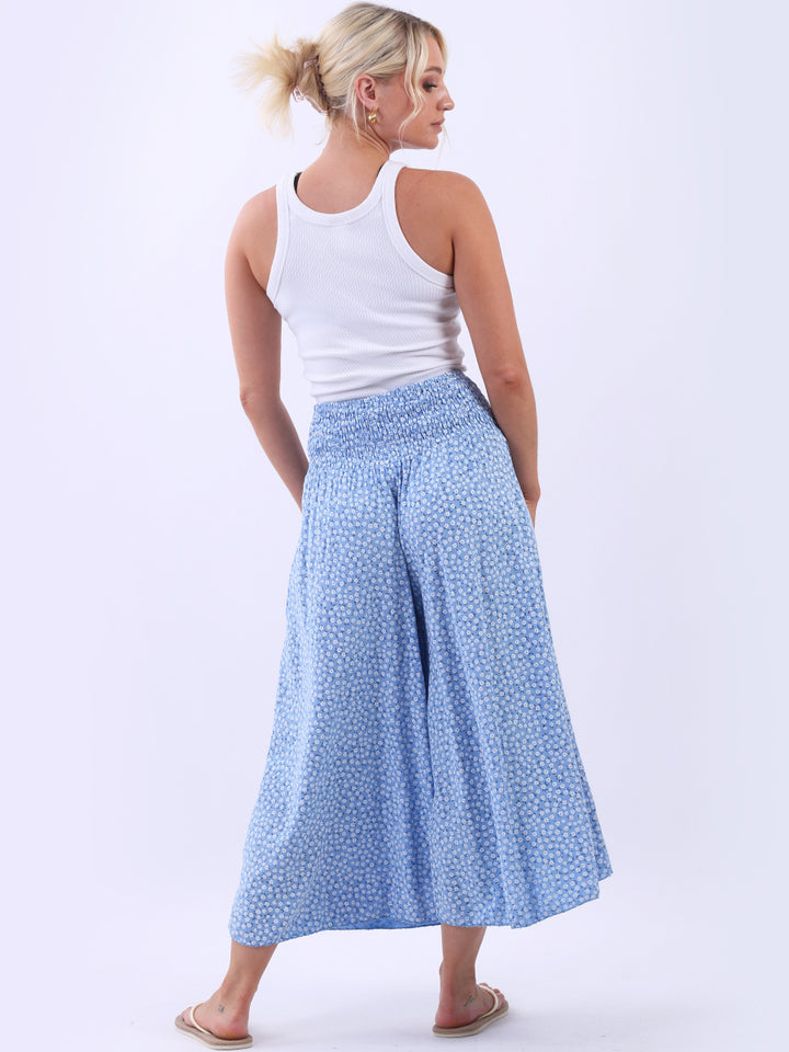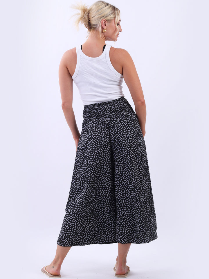 Women fashion wardrobe staples with made in Italy features that matter the most to those looking for what should a woman wear in Italy. This wide leg palazzo has ditsy floral print, flared style and smocked ruched waist and soft high quality fabric. Mix and match with crop top and cotton cardigan from Redwholesale online clothing store UK to finish an classy outdoor look.