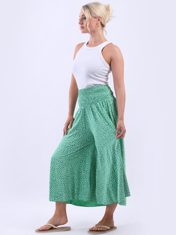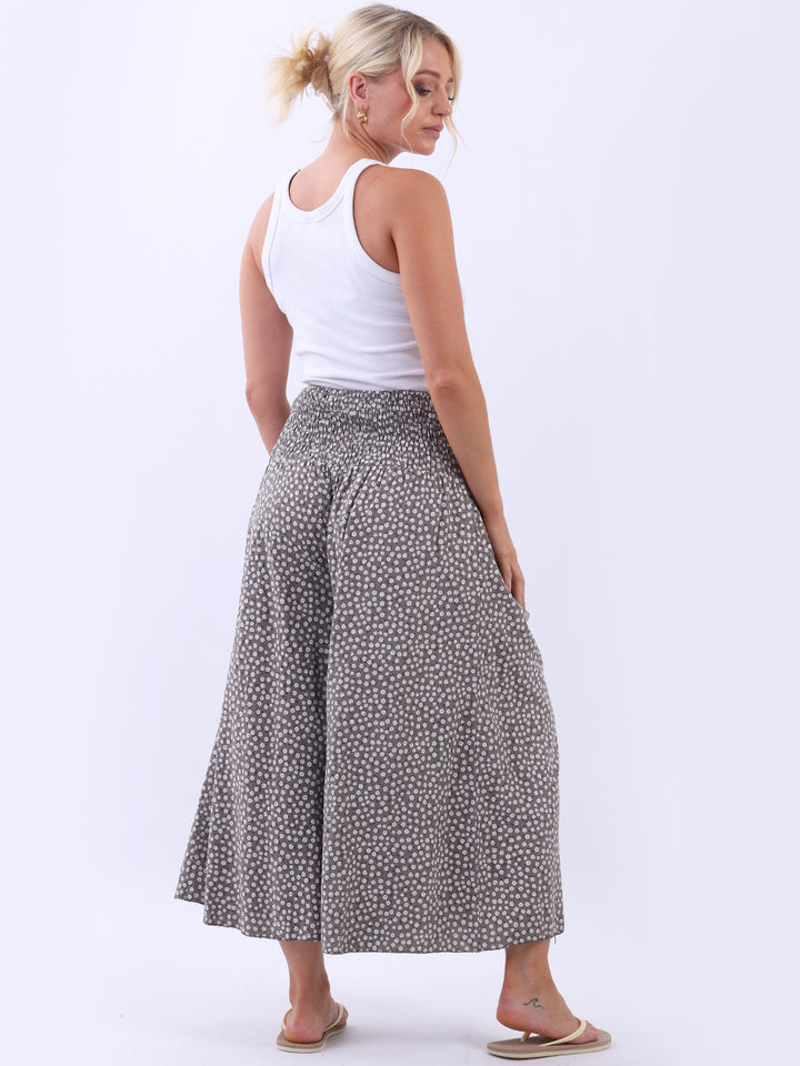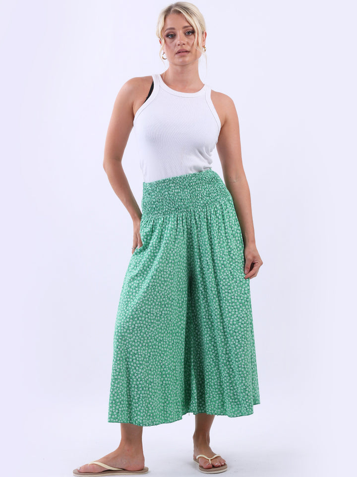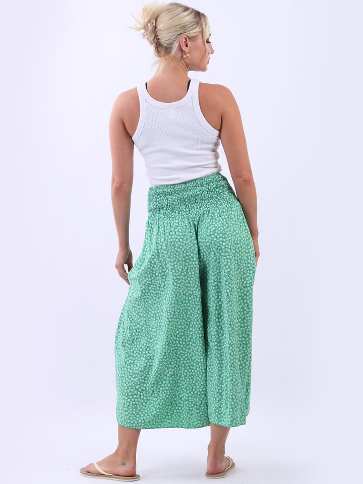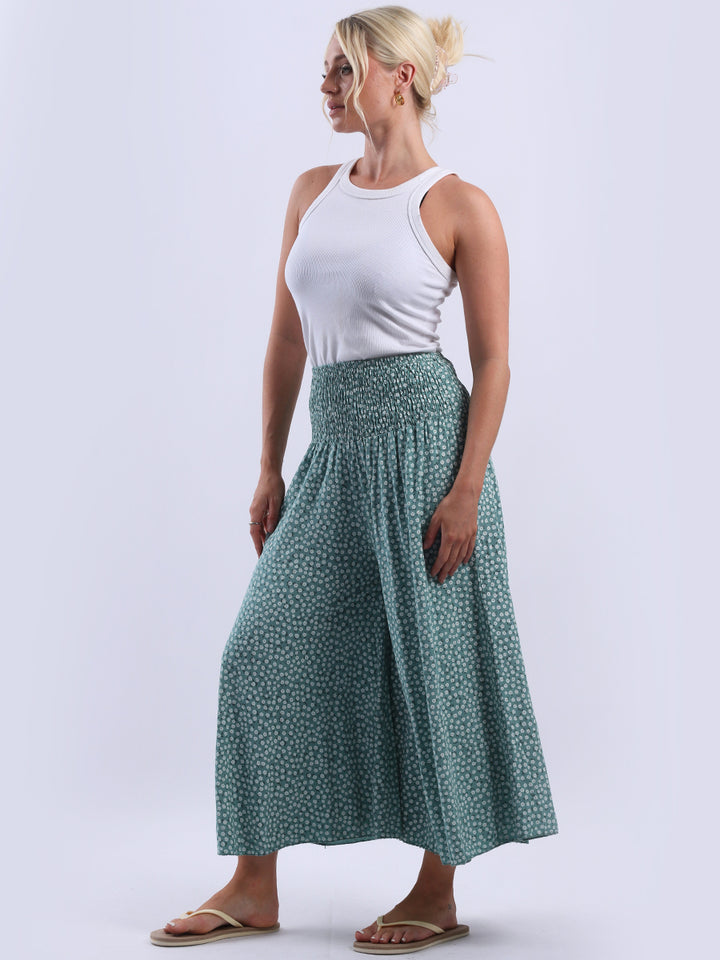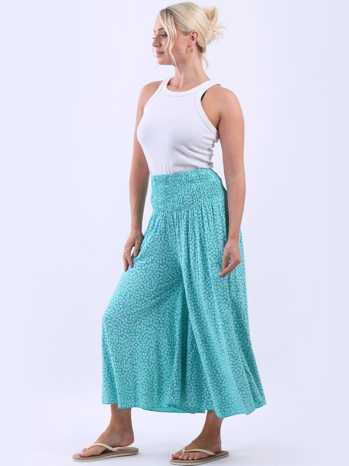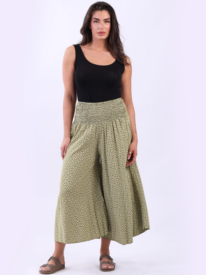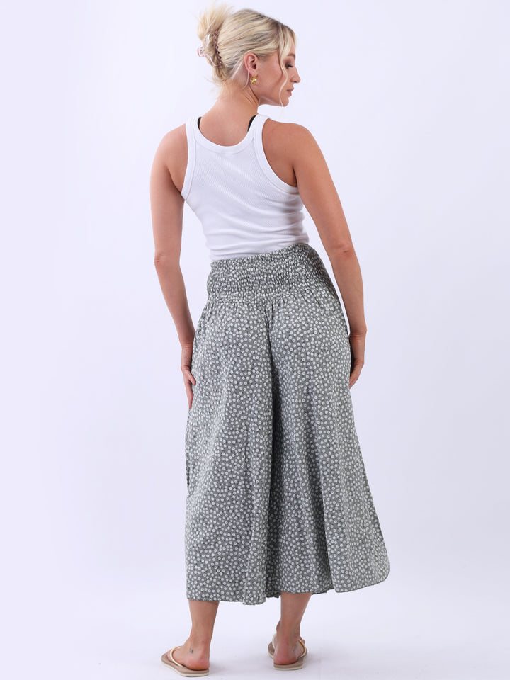 Women fashion wardrobe staples with made in Italy features that matter the most to those looking for what should a woman wear in Italy. This wide leg palazzo has ditsy floral print, flared style and smocked ruched waist and soft high quality fabric. Mix and match with crop top and cotton cardigan from Redwholesale online clothing store UK to finish an classy outdoor look.