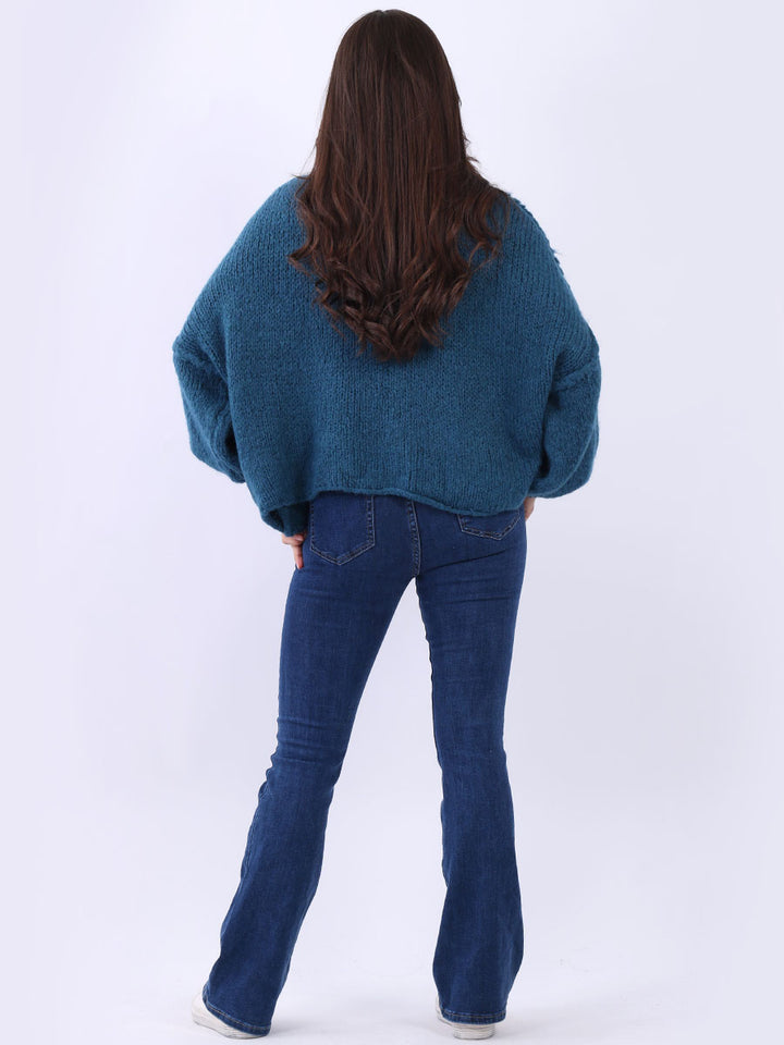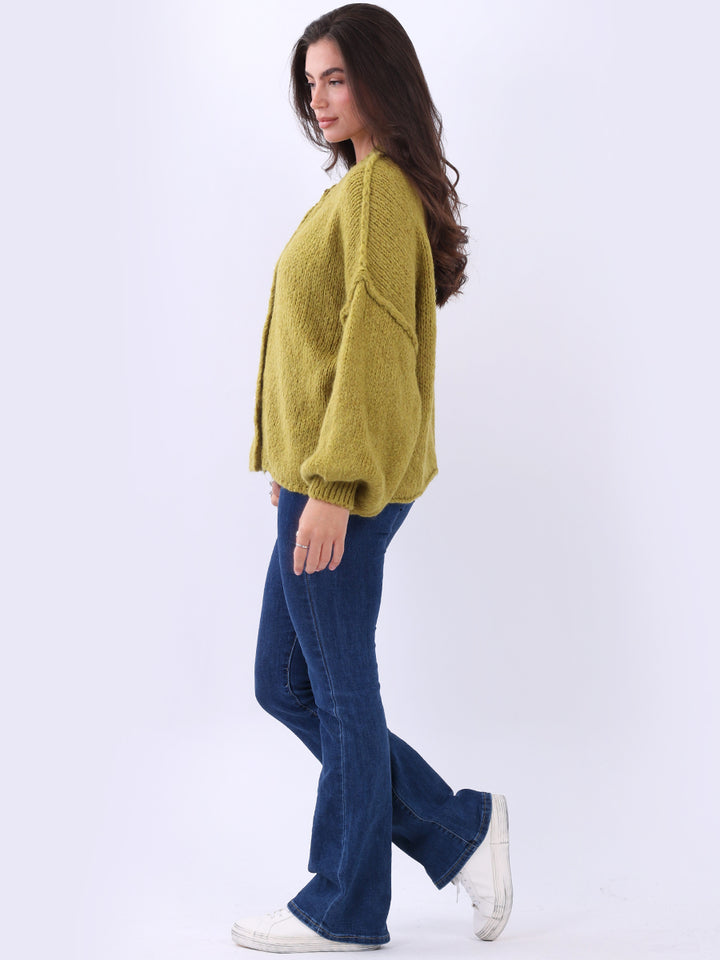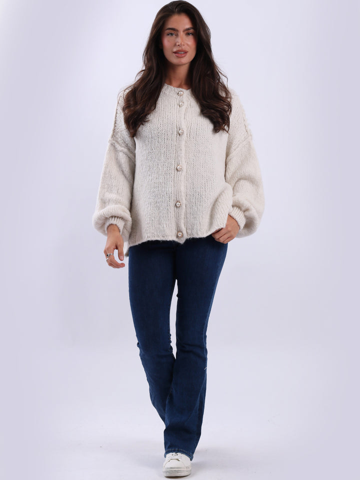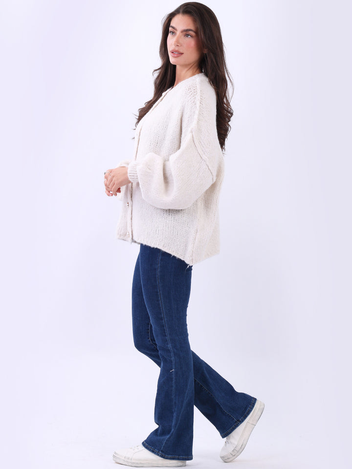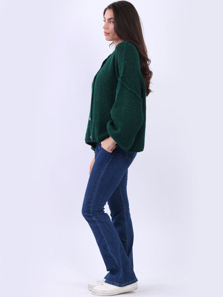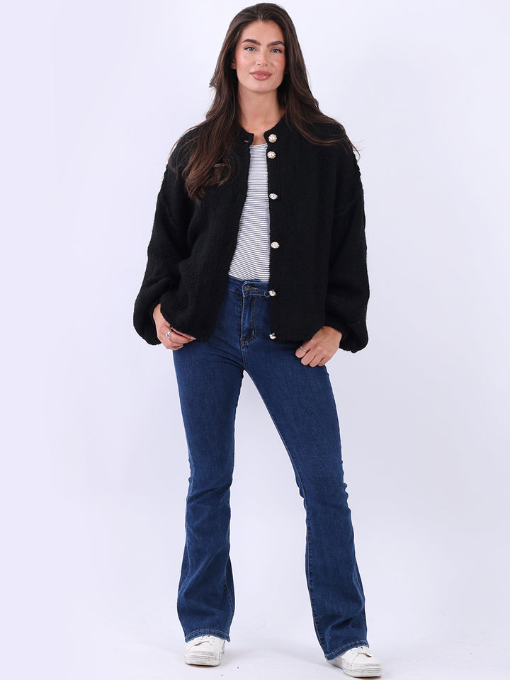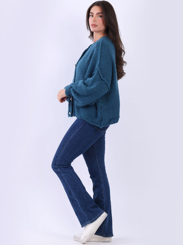 Italian Drop Shoulder Front Button Knitted Wooly Crop Cardigan