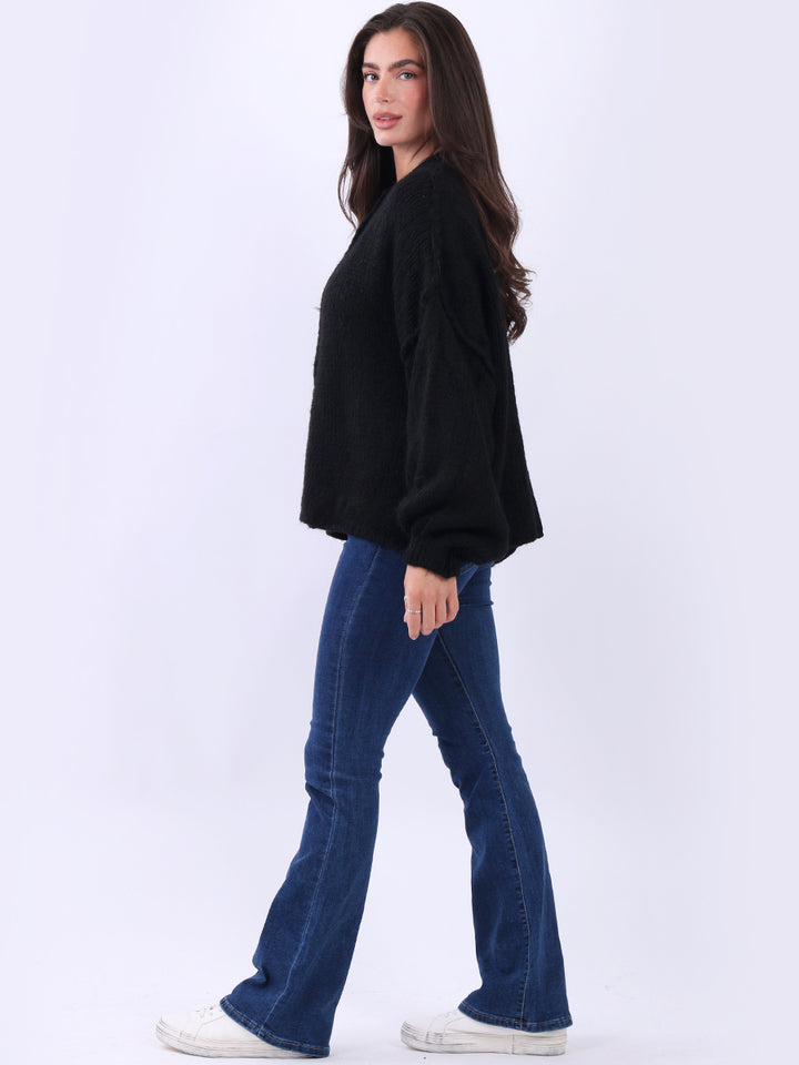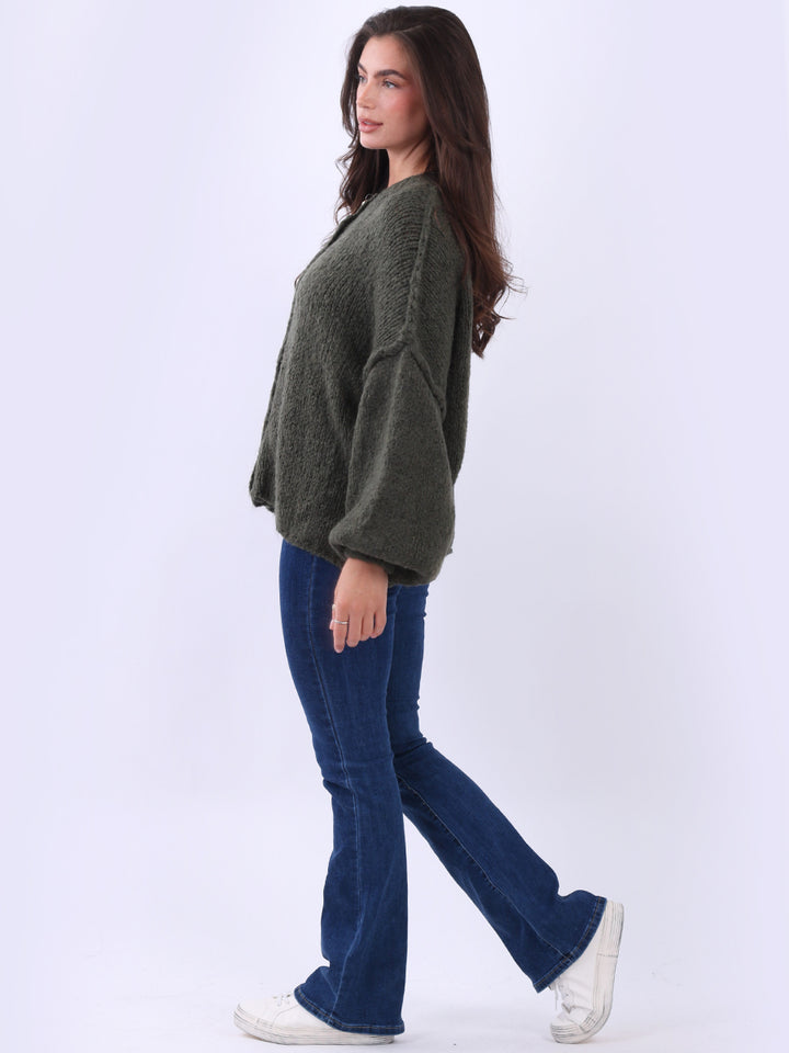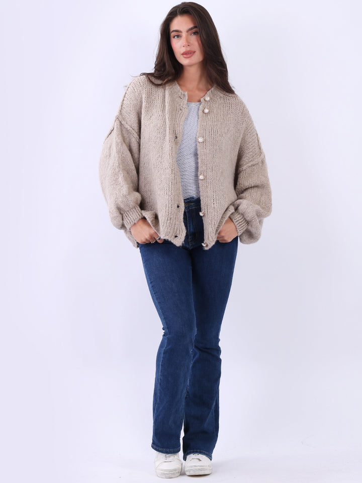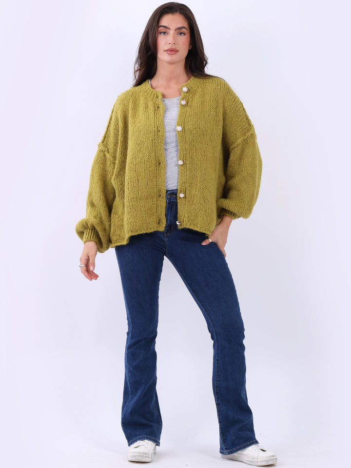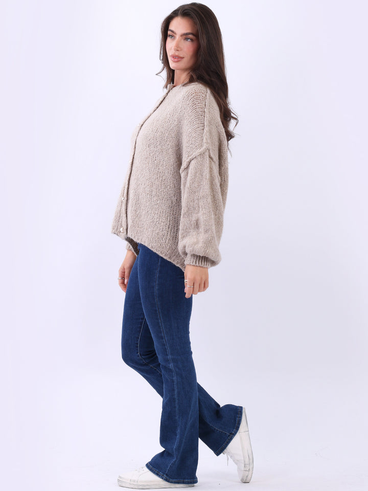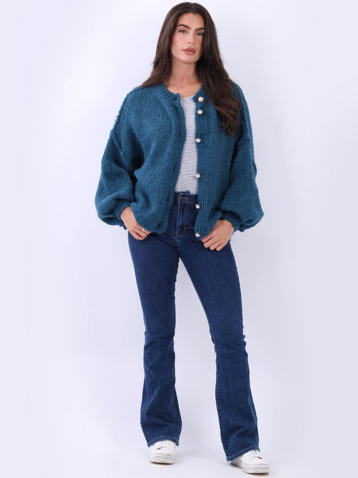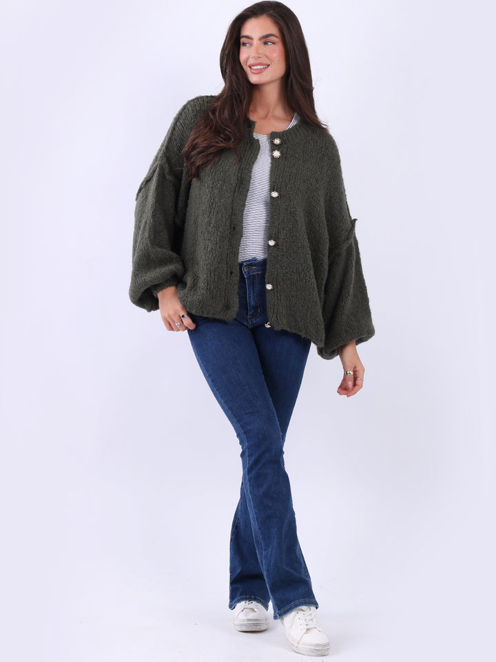 Italian Drop Shoulder Front Button Knitted Wooly Crop Cardigan