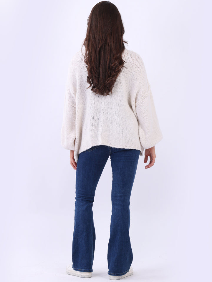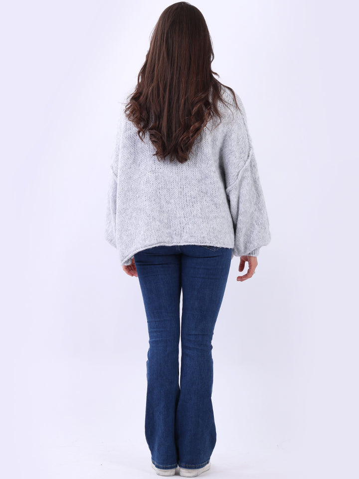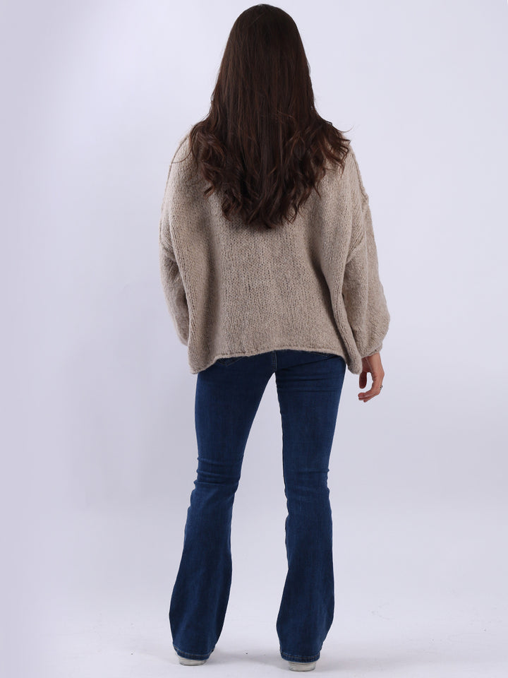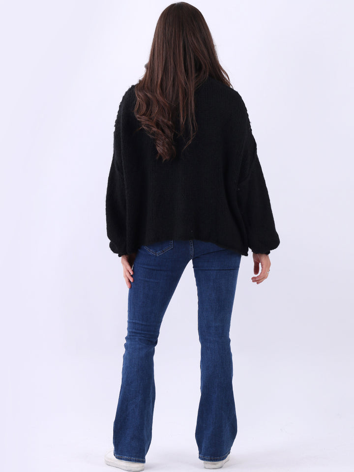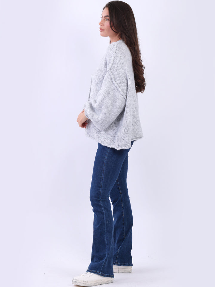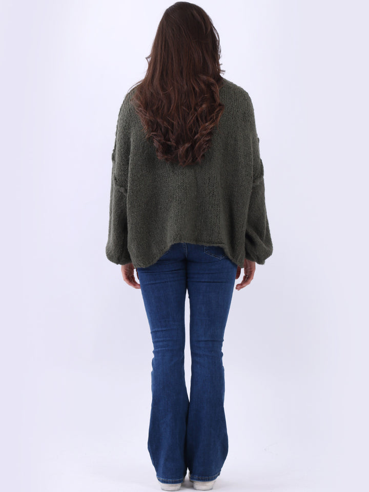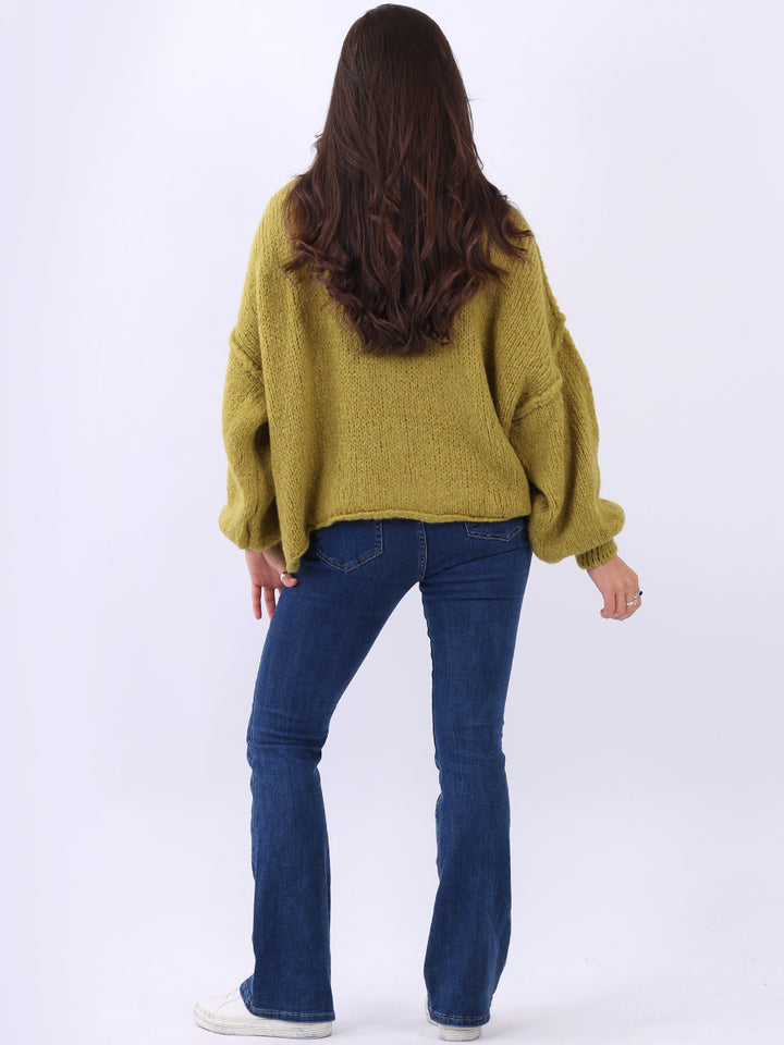 Italian Drop Shoulder Front Button Knitted Wooly Crop Cardigan