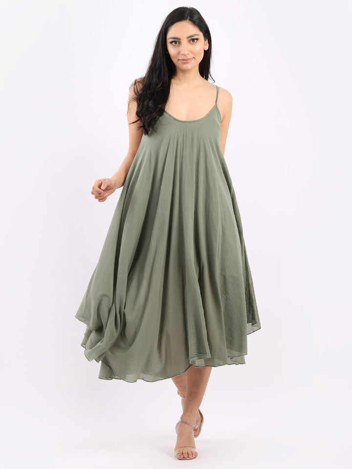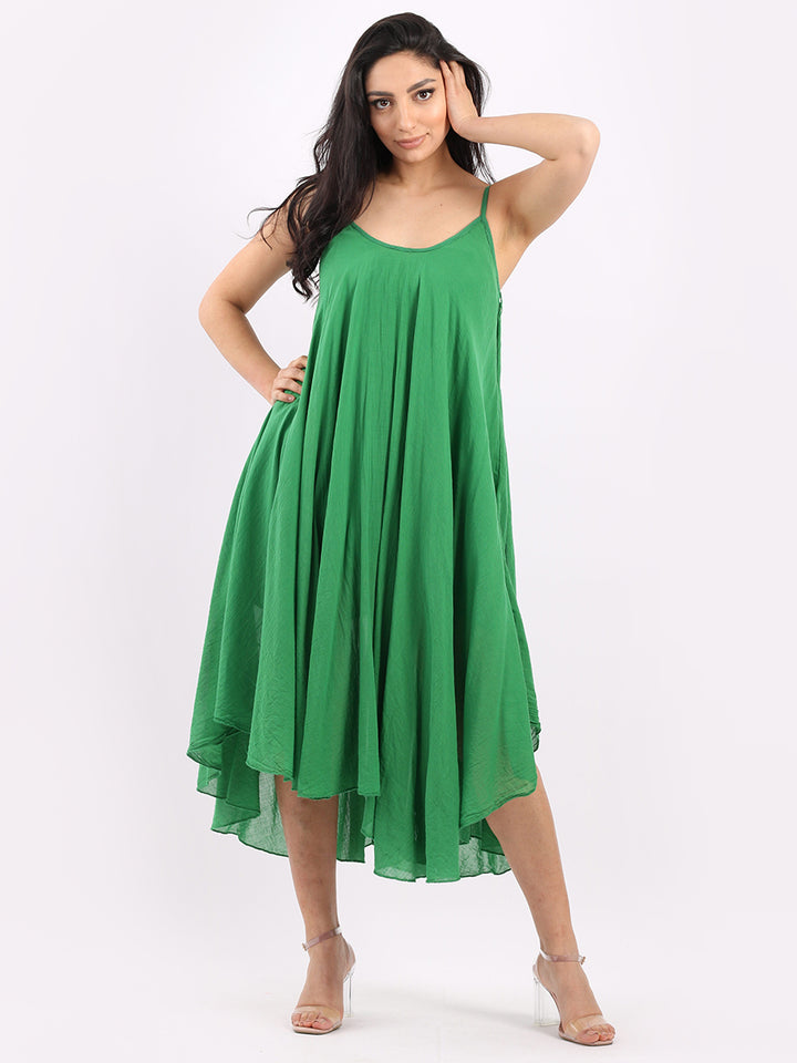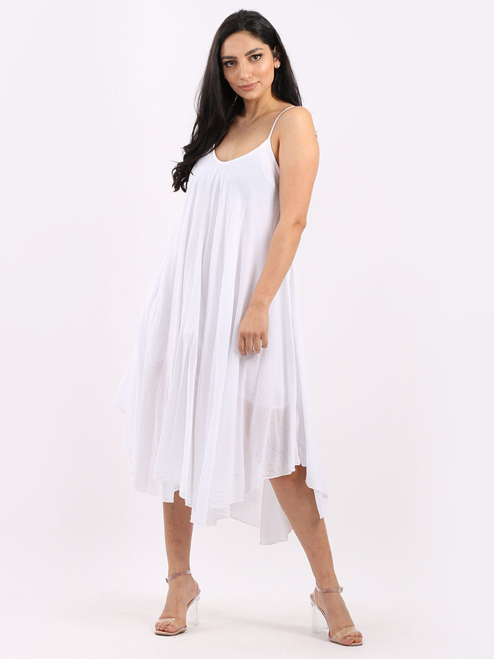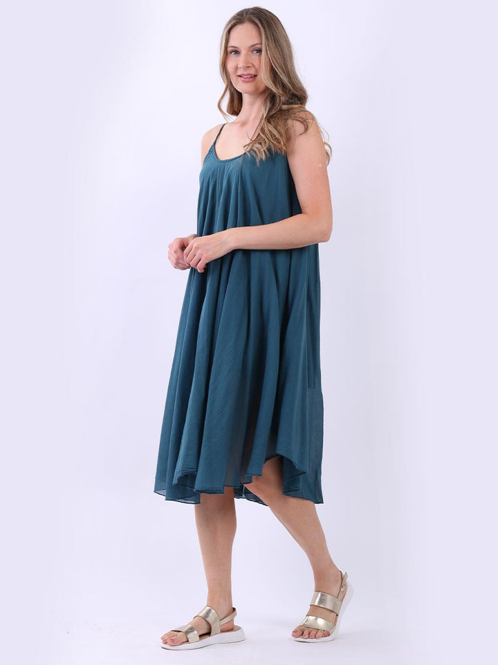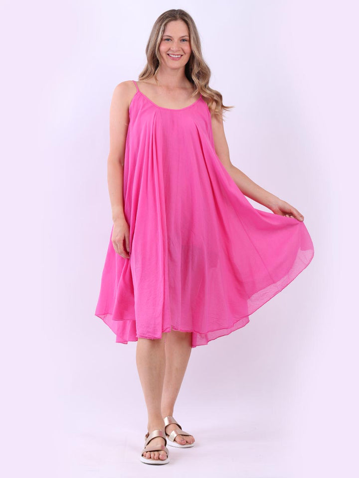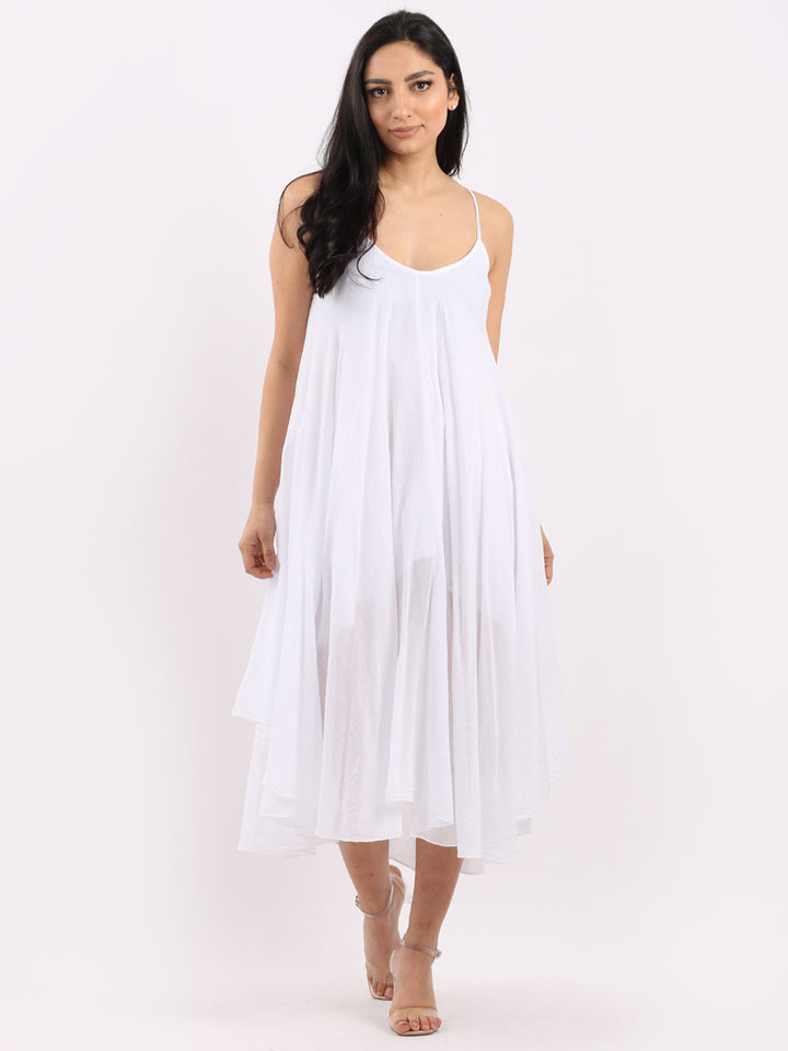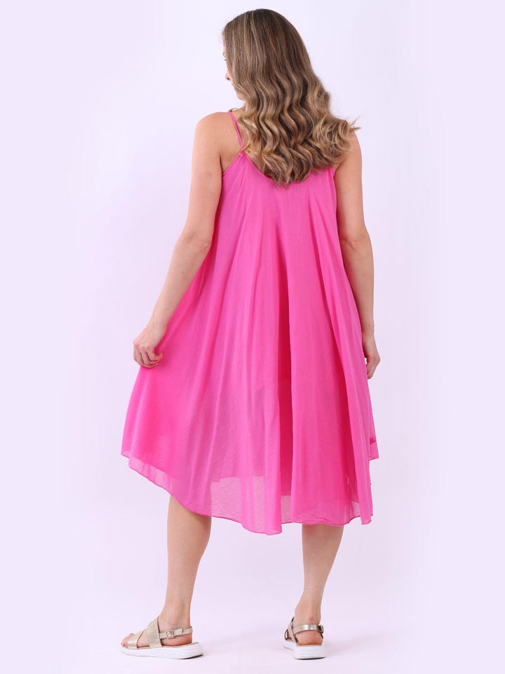 One dress by Redwholesale that caters to the high fashion demand from women wearer. Made in Italy this pure cotton skin friendly summer cami dress features plunging scoop neckline sensual and admirable just as sought, formal sleeves, baggy fit with flared hem. The dress is ideal for evenings out with high heels and clutch.