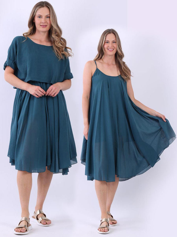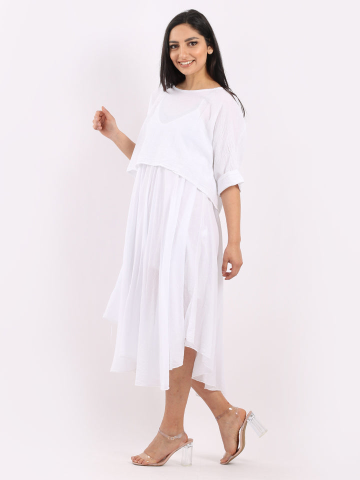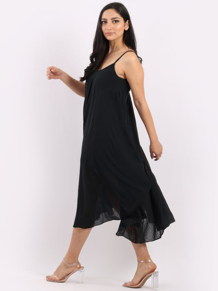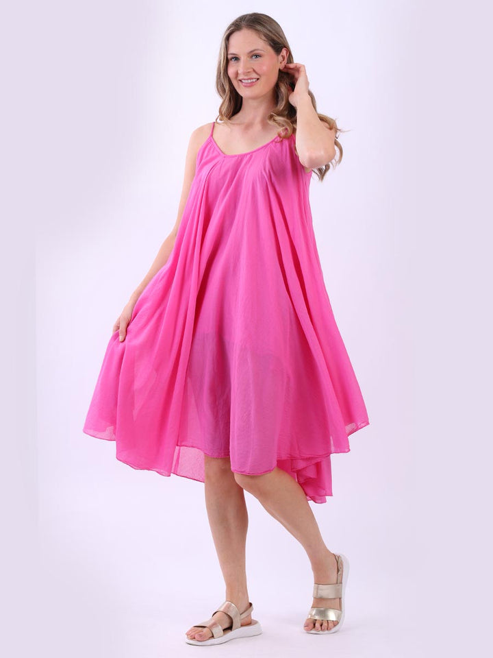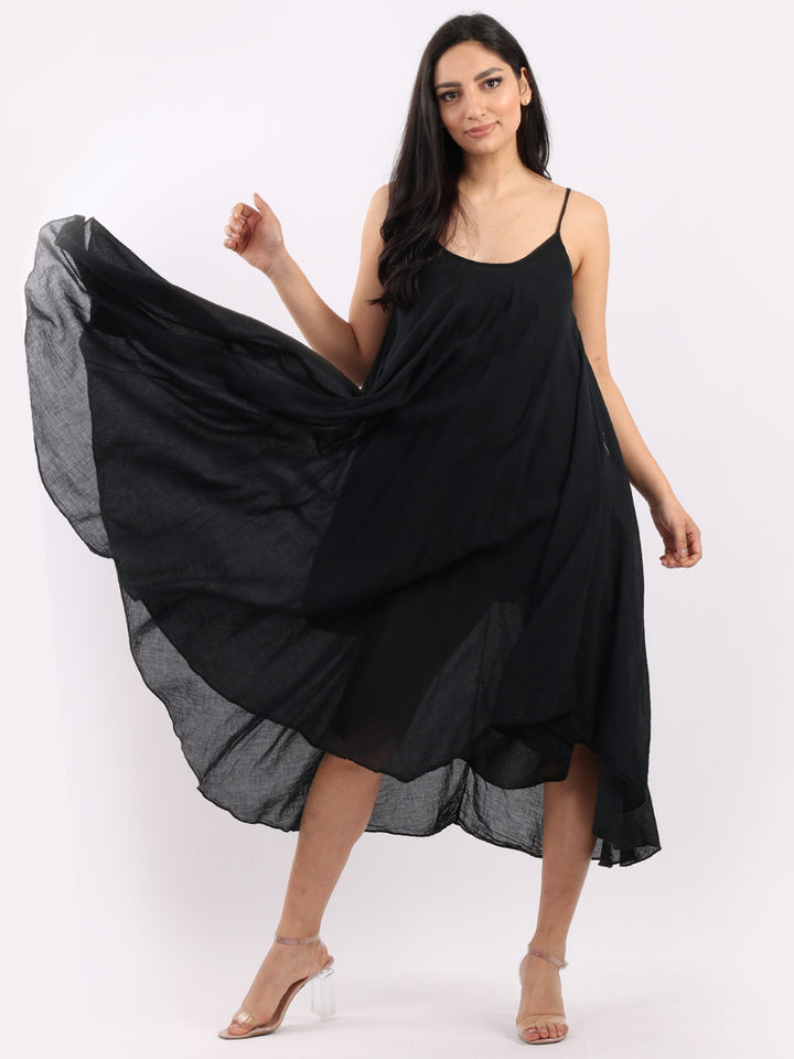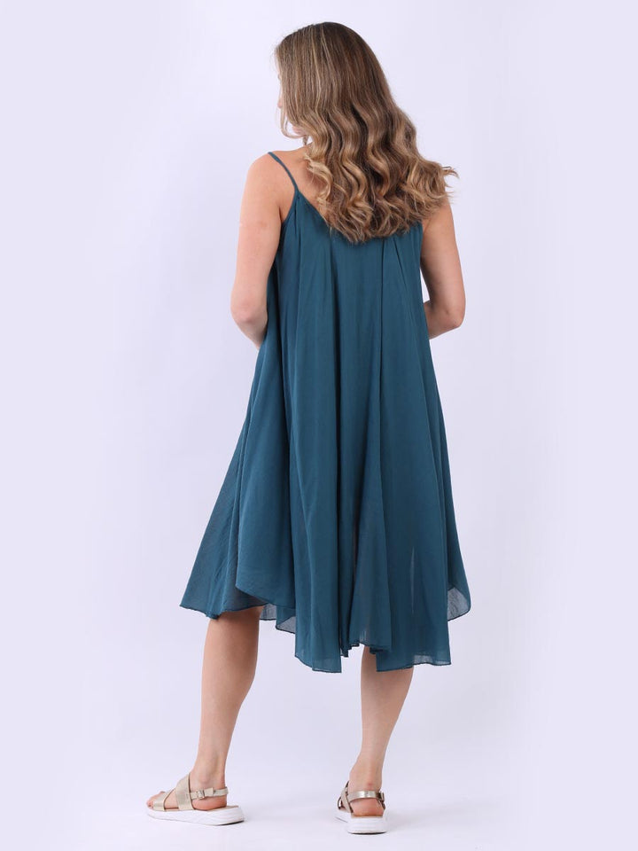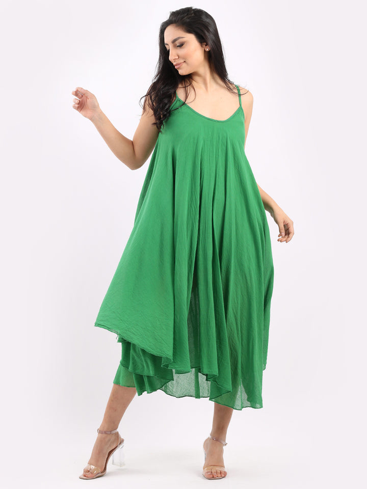 One dress by Redwholesale that caters to the high fashion demand from women wearer. Made in Italy this pure cotton skin friendly summer cami dress features plunging scoop neckline sensual and admirable just as sought, formal sleeves, baggy fit with flared hem. The dress is ideal for evenings out with high heels and clutch.