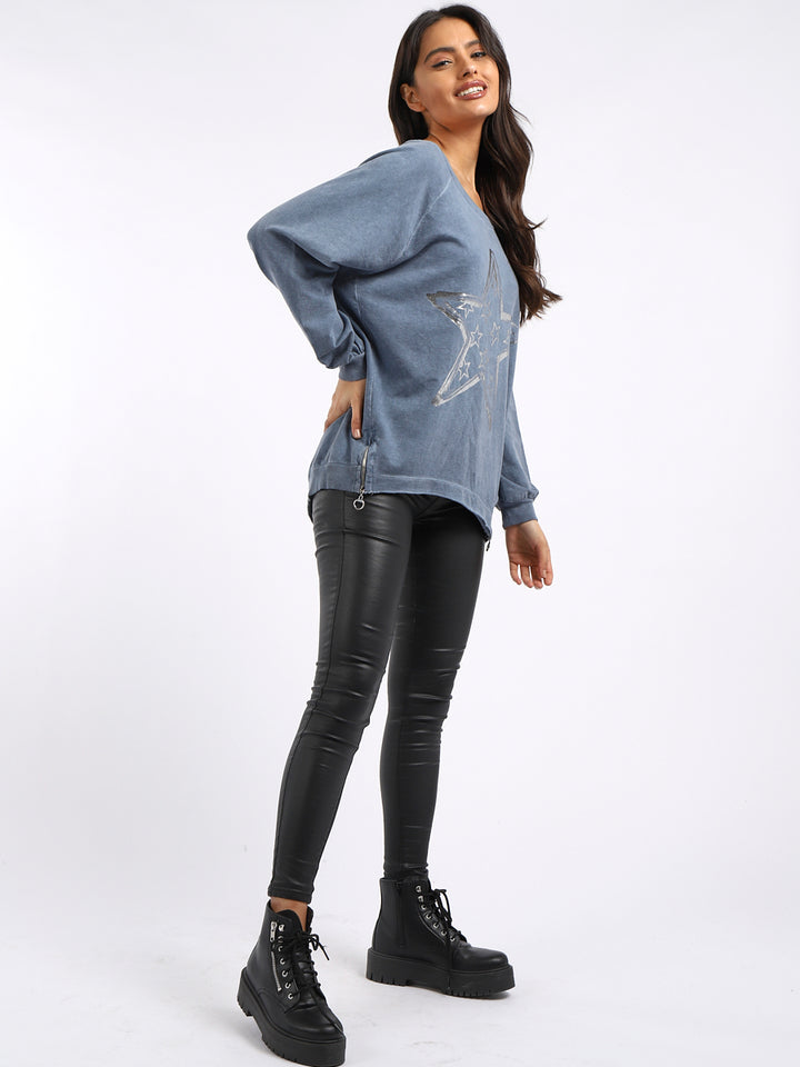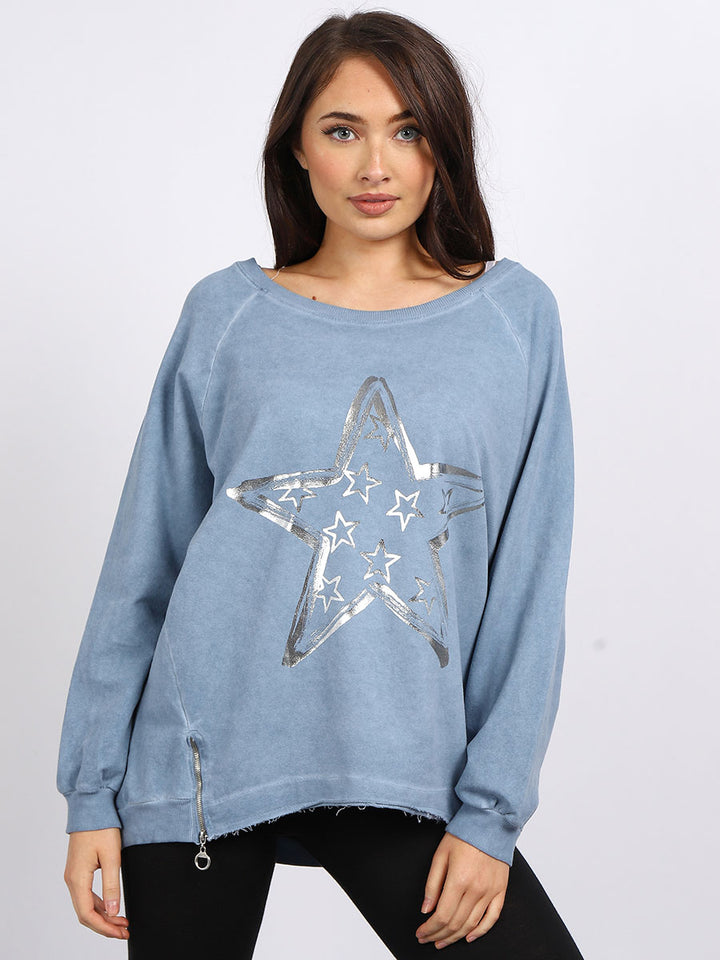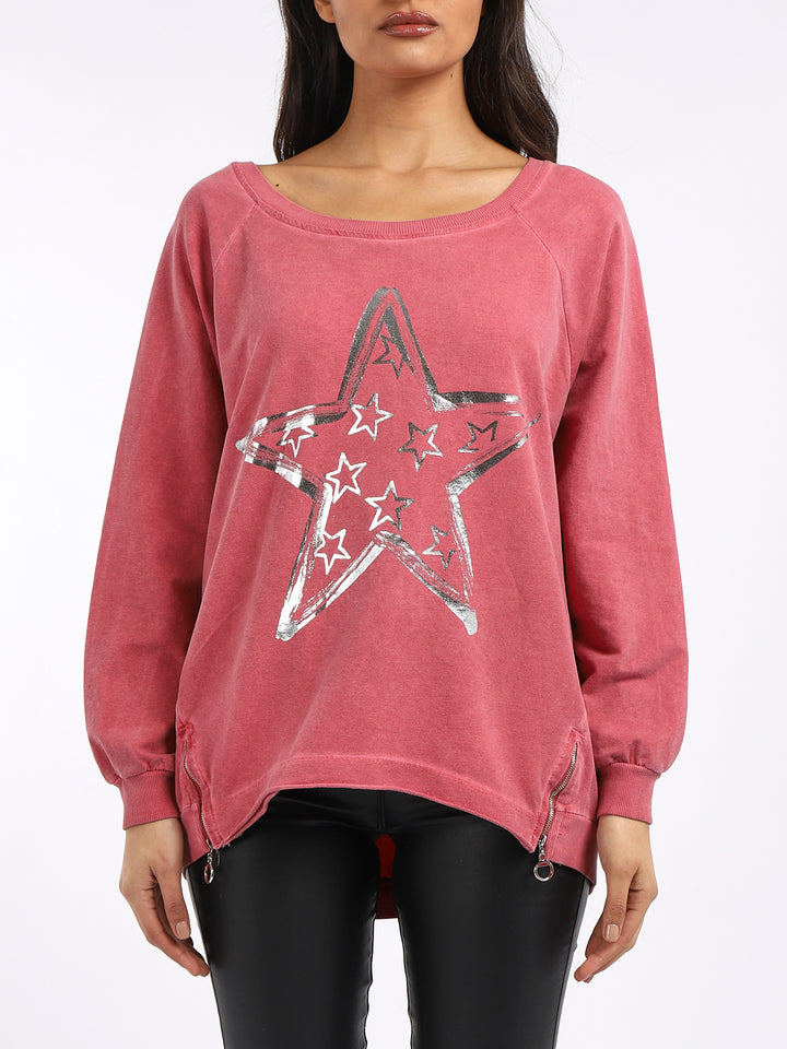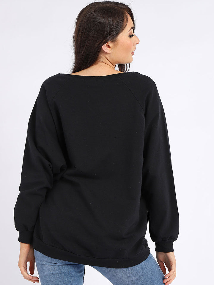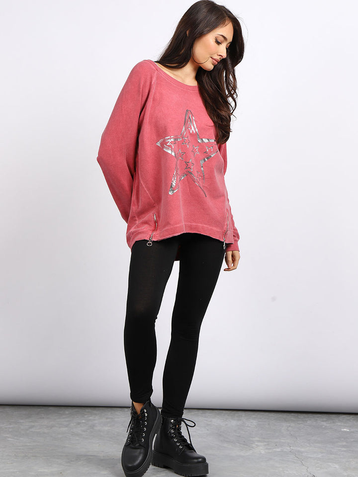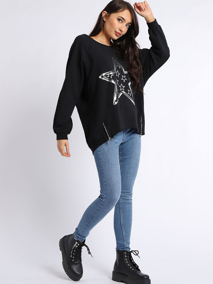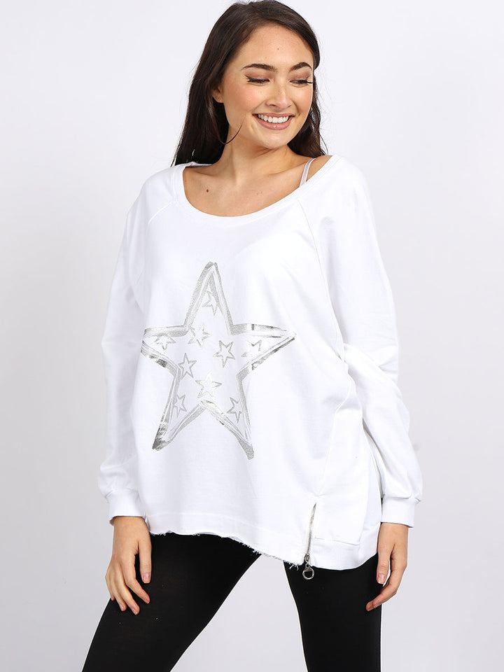 A perfect addition to the women wearer wardrobe for seasonal changes with Italian made quality and Redwholesale’s design. Perfect cut and fit this full sleeves top is made from a soft and stretchy material to fit women wearers perfectly. Wide round neckline, star print on the front and baggy plus size fit makes it a right choice every time.