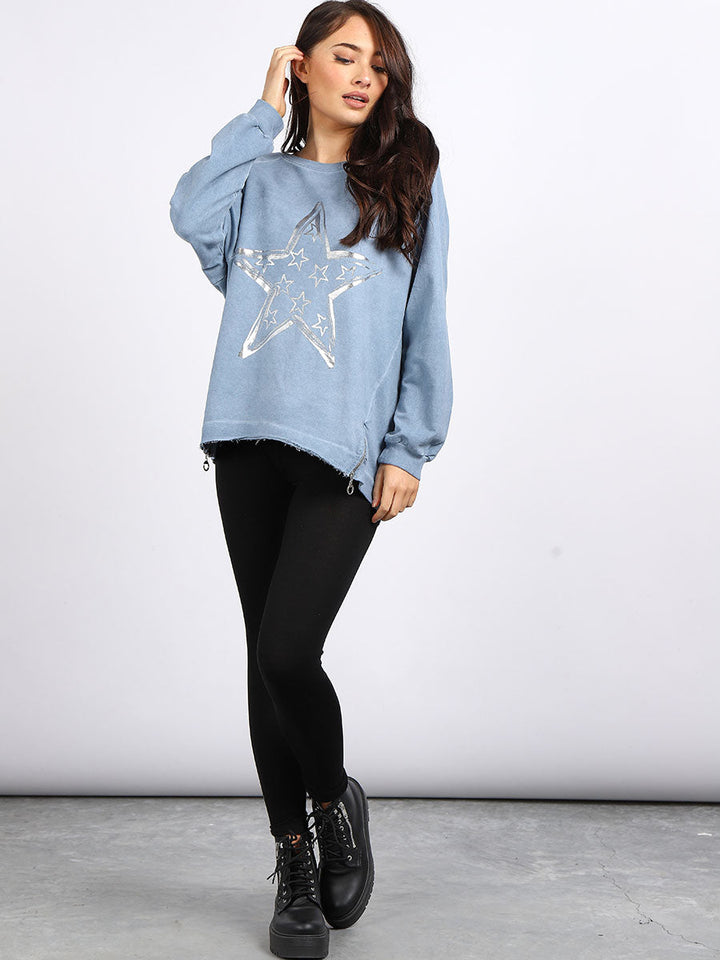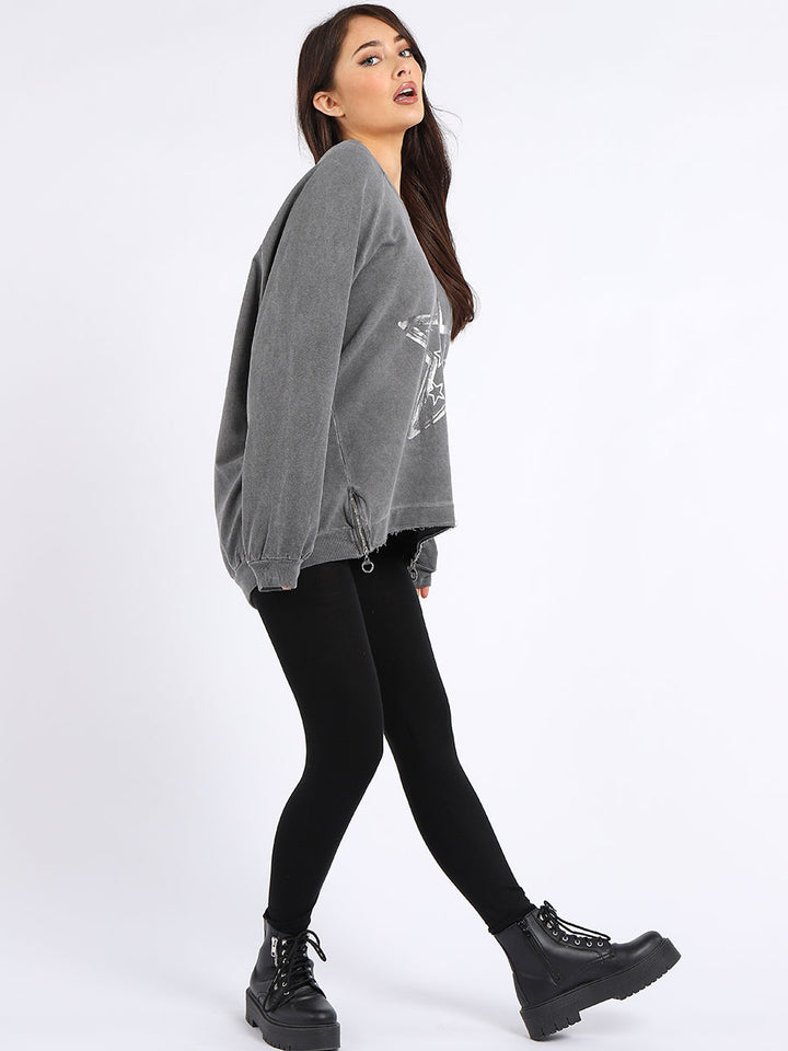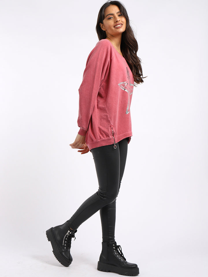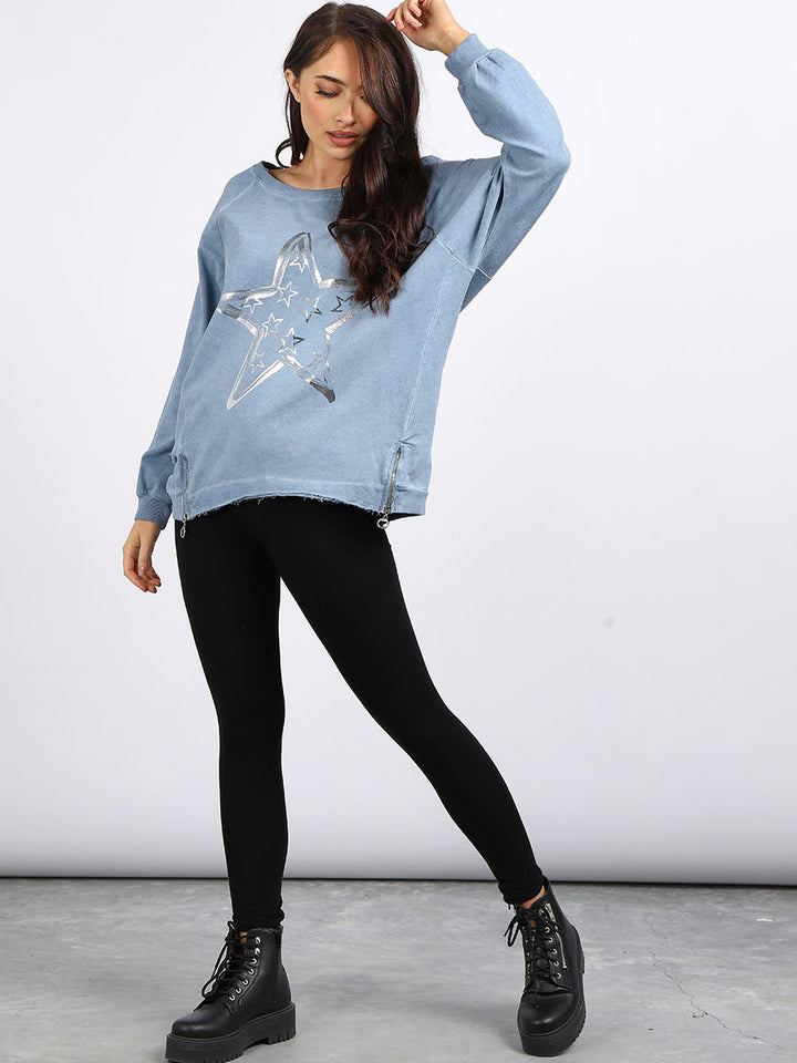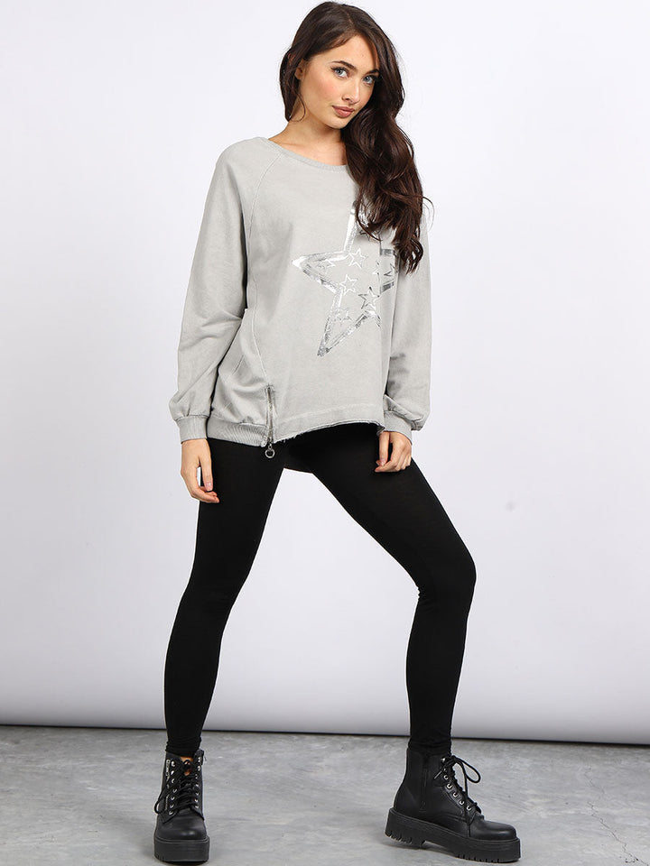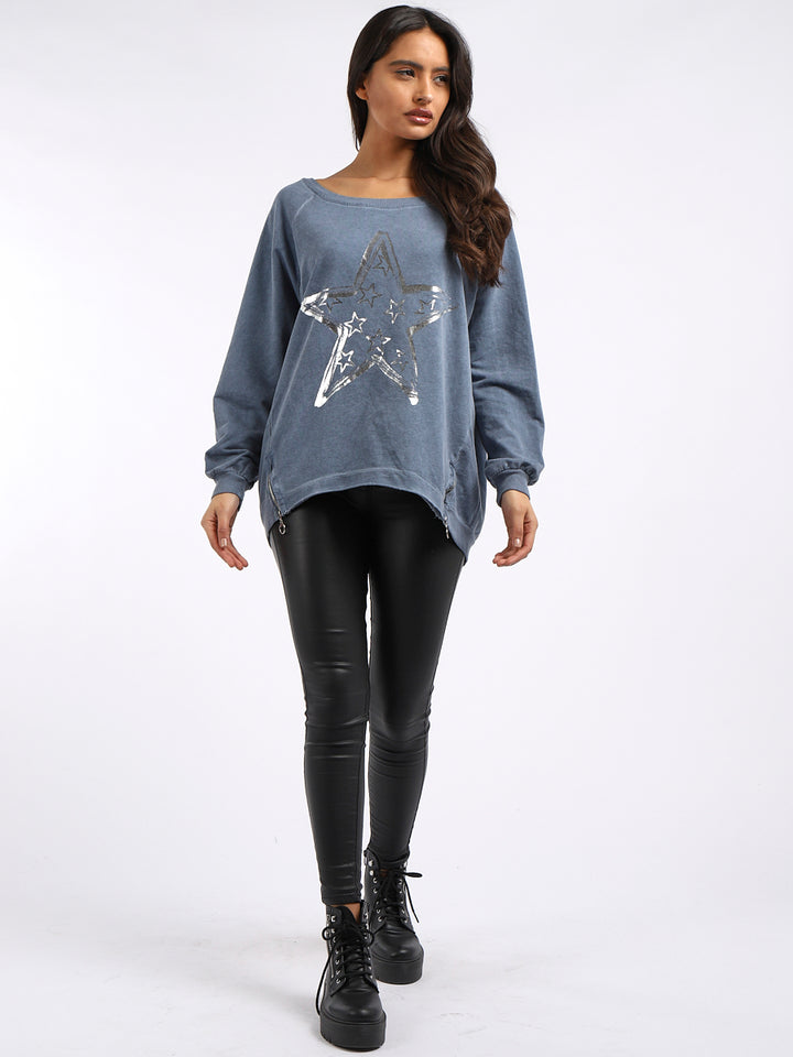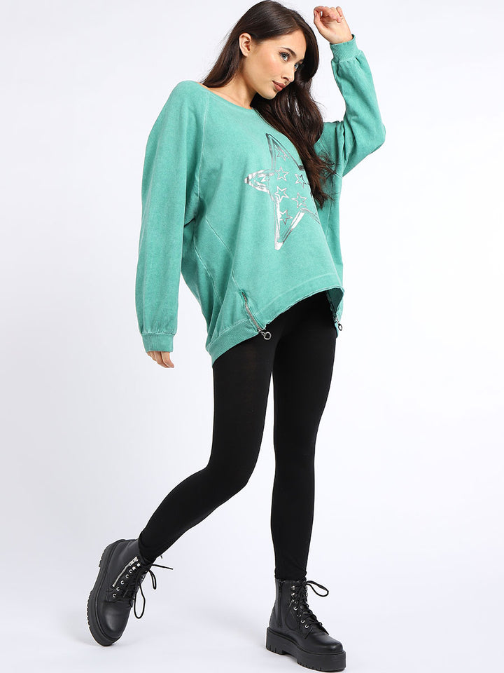 A perfect addition to the women wearer wardrobe for seasonal changes with Italian made quality and Redwholesale’s design. Perfect cut and fit this full sleeves top is made from a soft and stretchy material to fit women wearers perfectly. Wide round neckline, star print on the front and baggy plus size fit makes it a right choice every time.