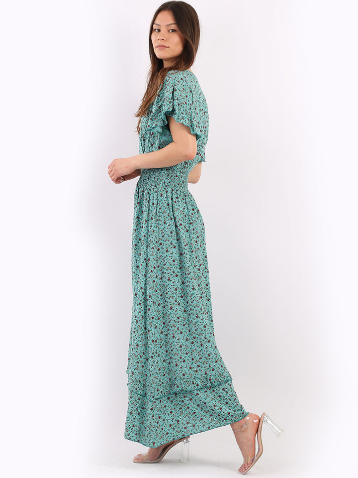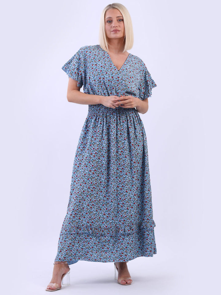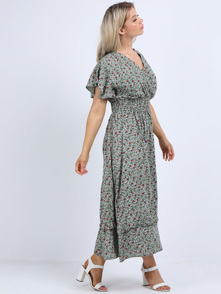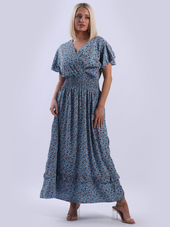 Italian Floral Print Lagenlook Boho Summer Maxi Dress