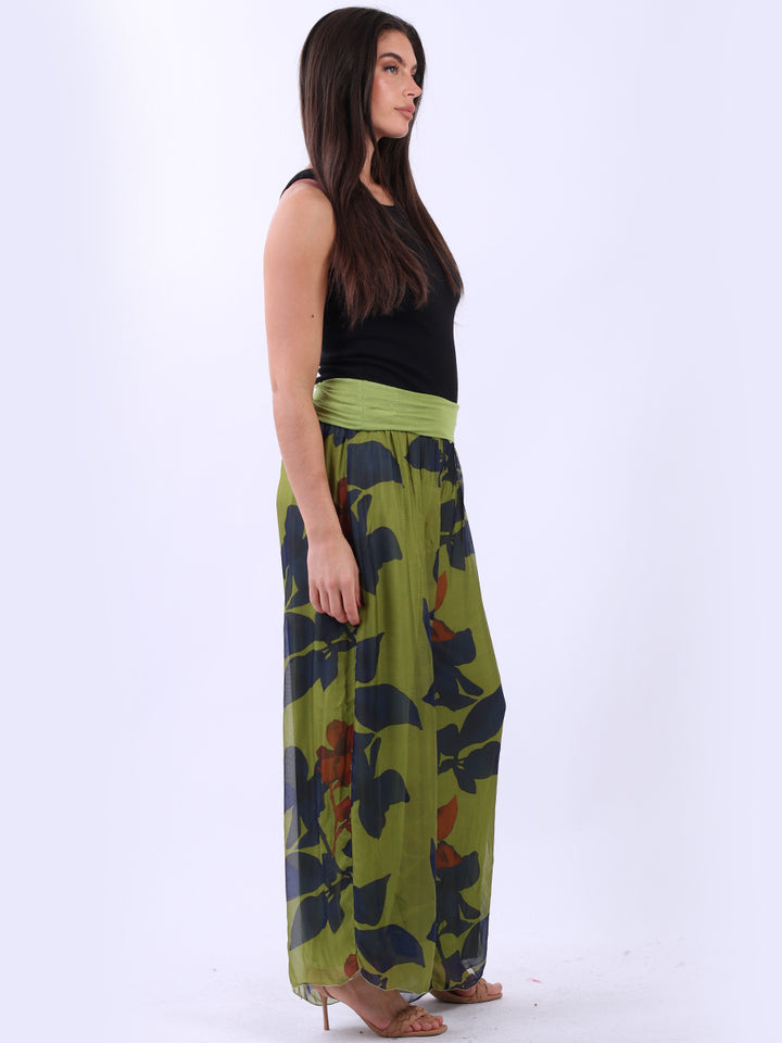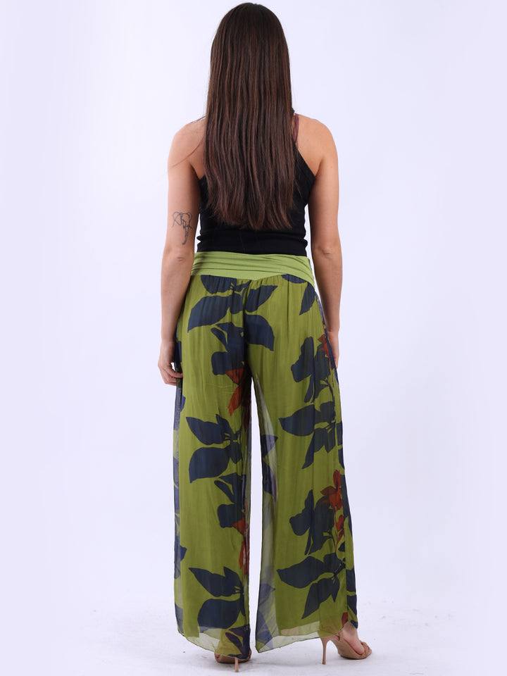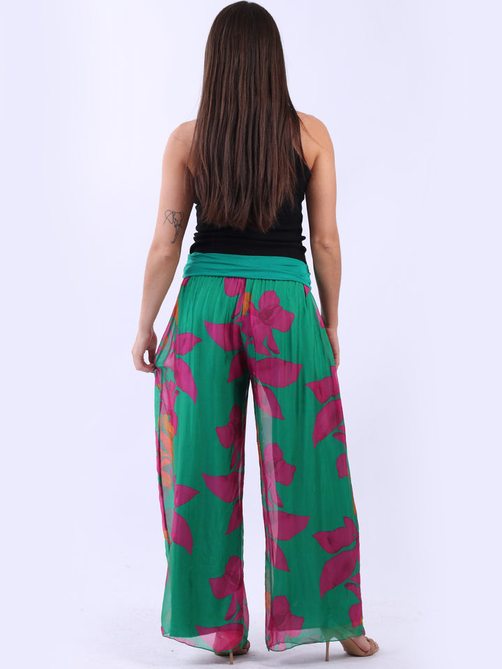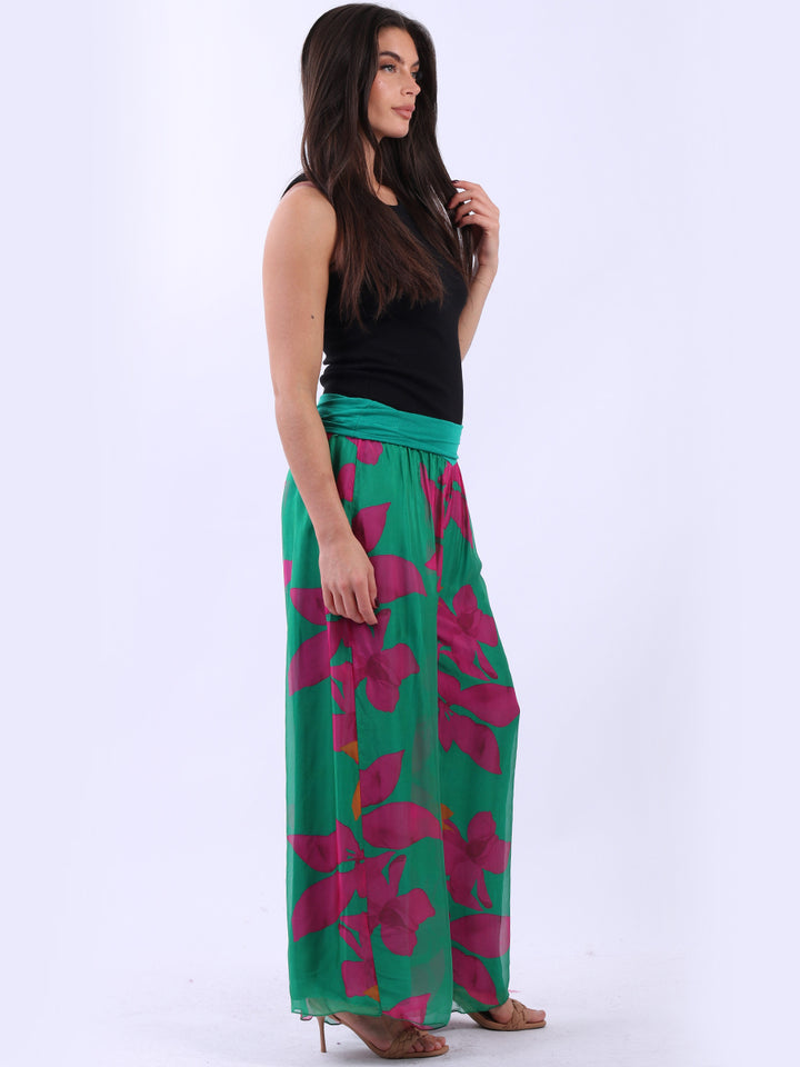 Italian Floral Wide Leg Silk Palazzo