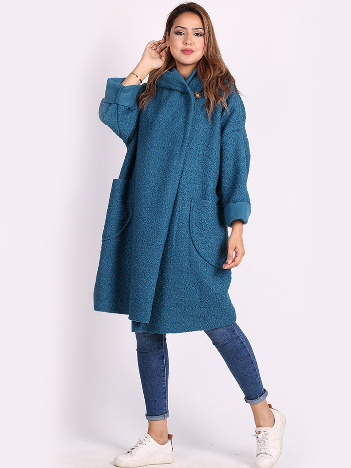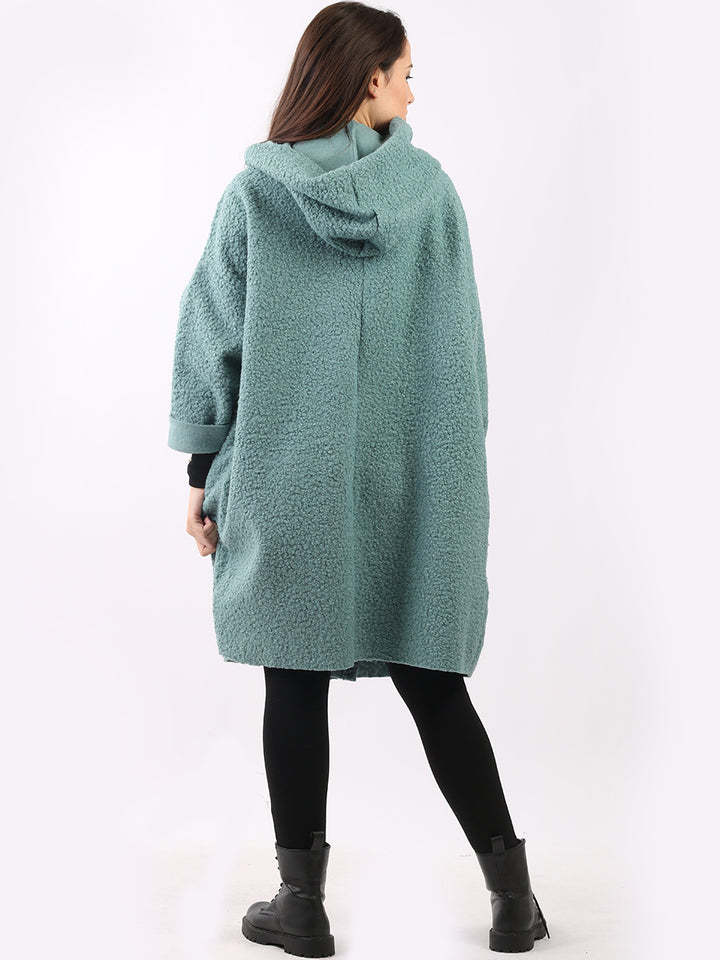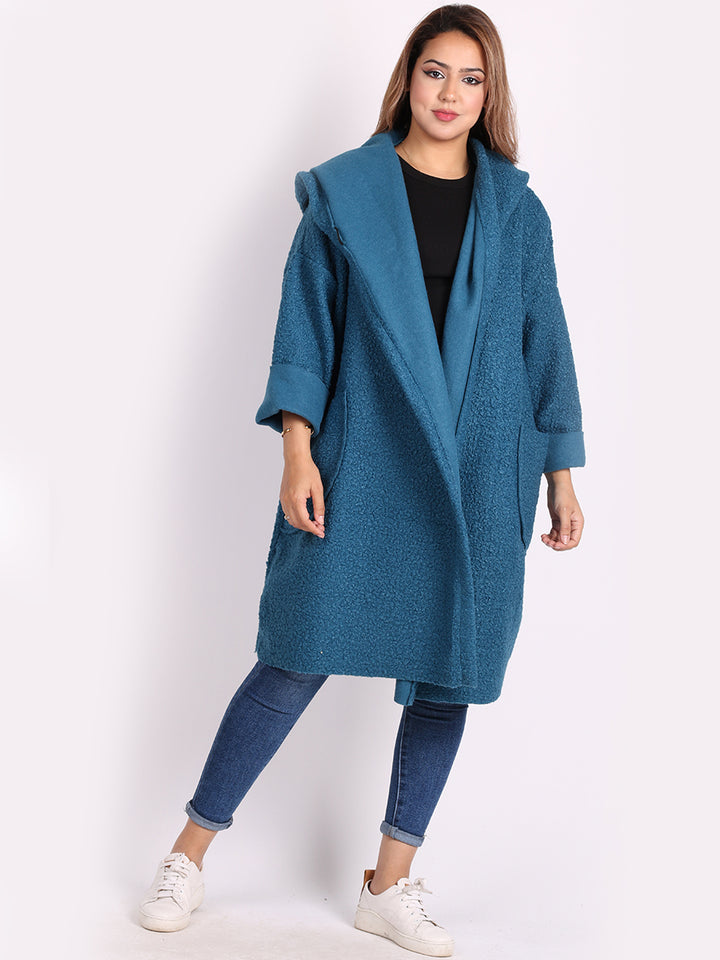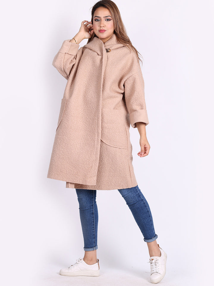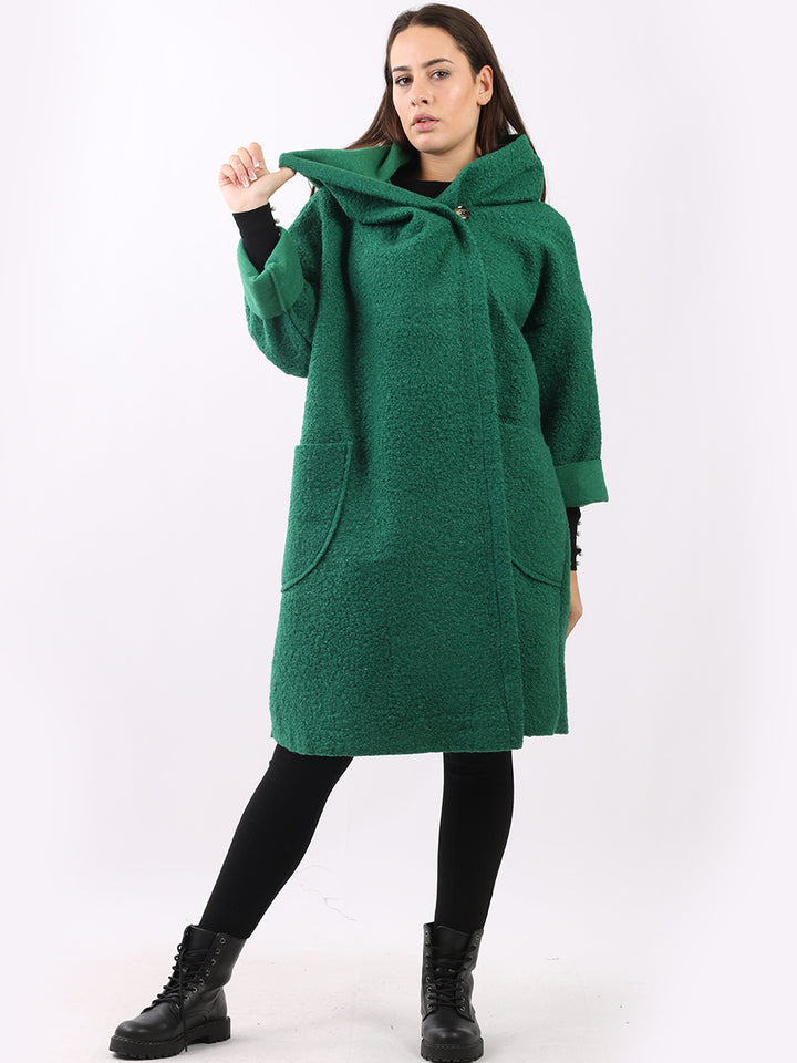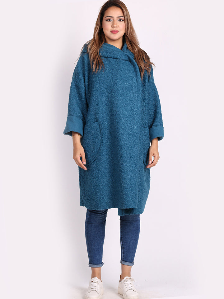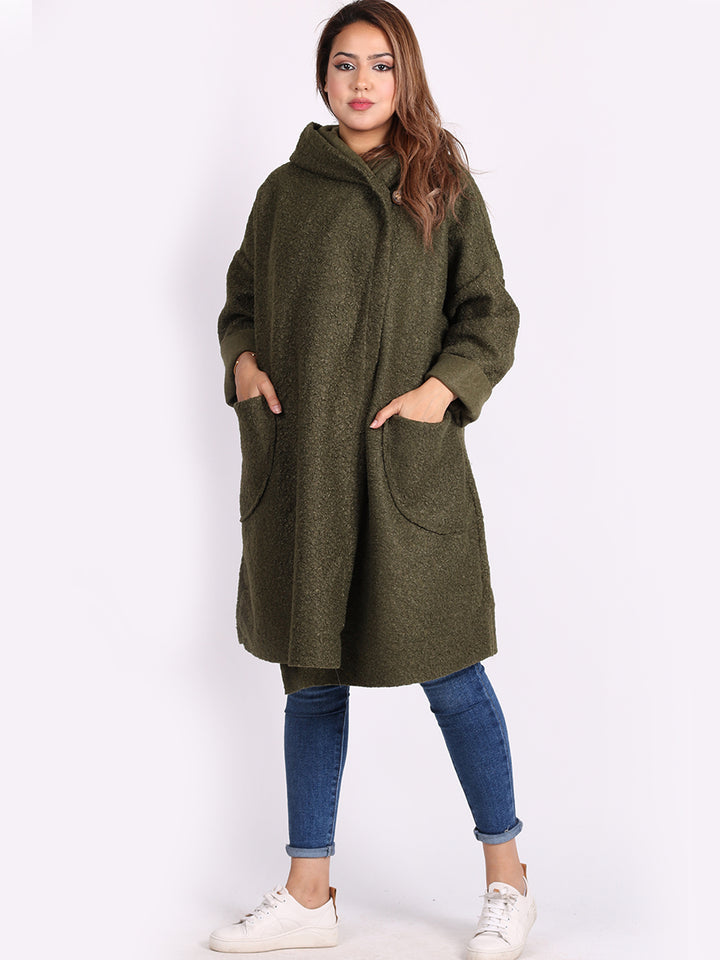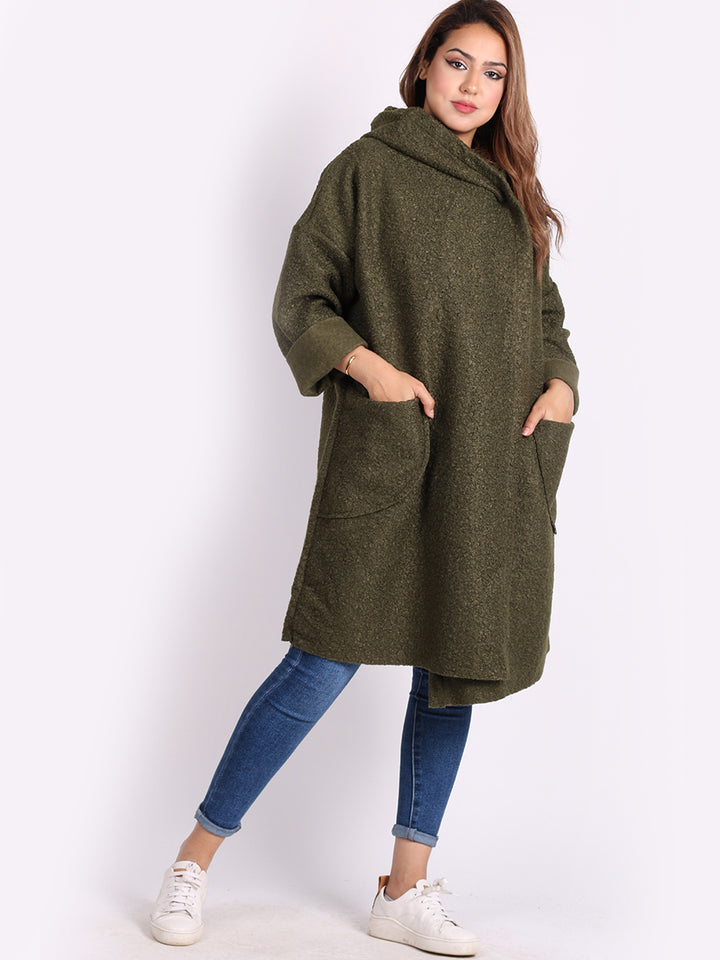 Italian Front Pockets Hooded Woolen Lagenlook Jacket