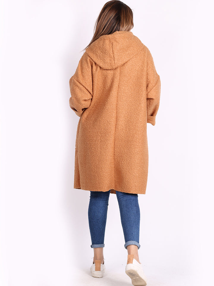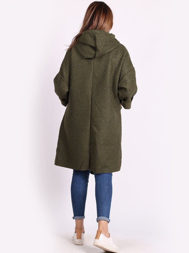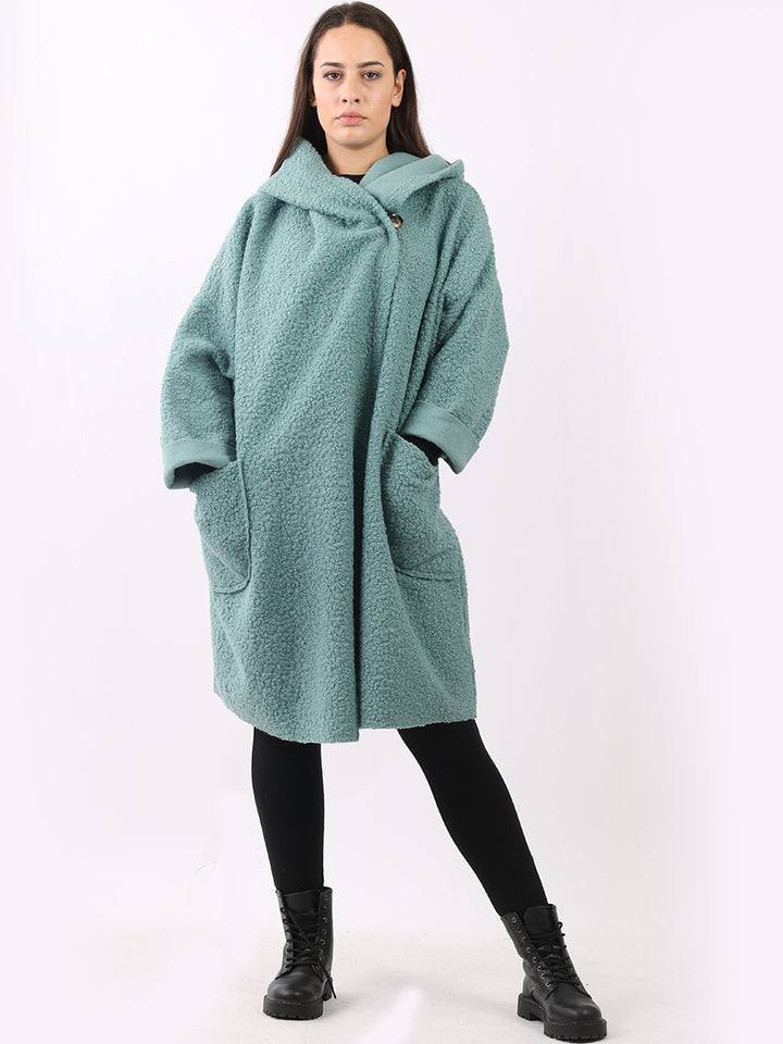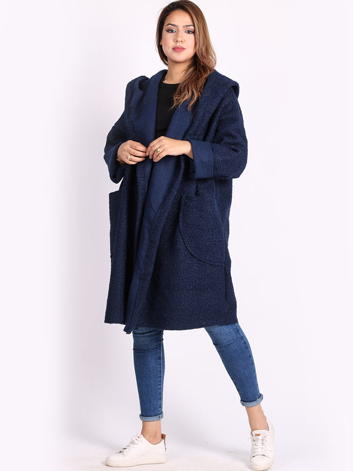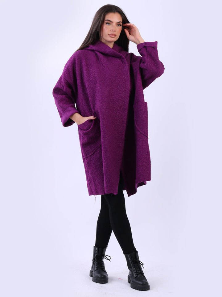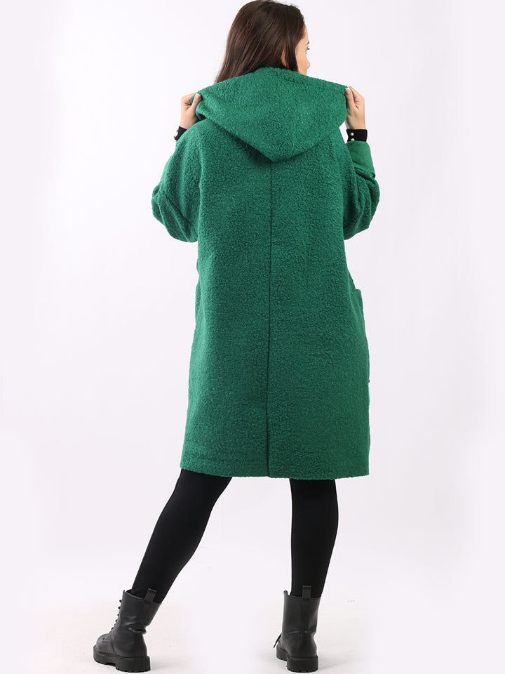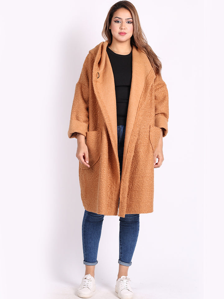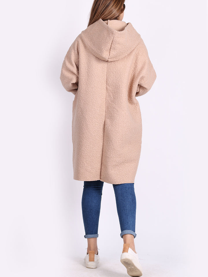 Italian Front Pockets Hooded Woolen Lagenlook Jacket