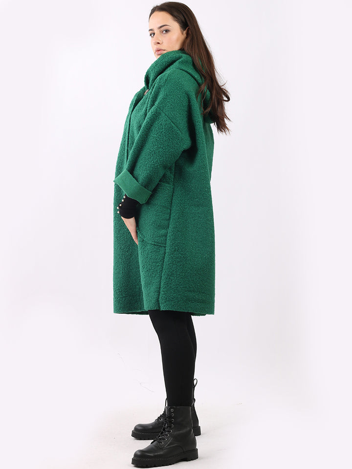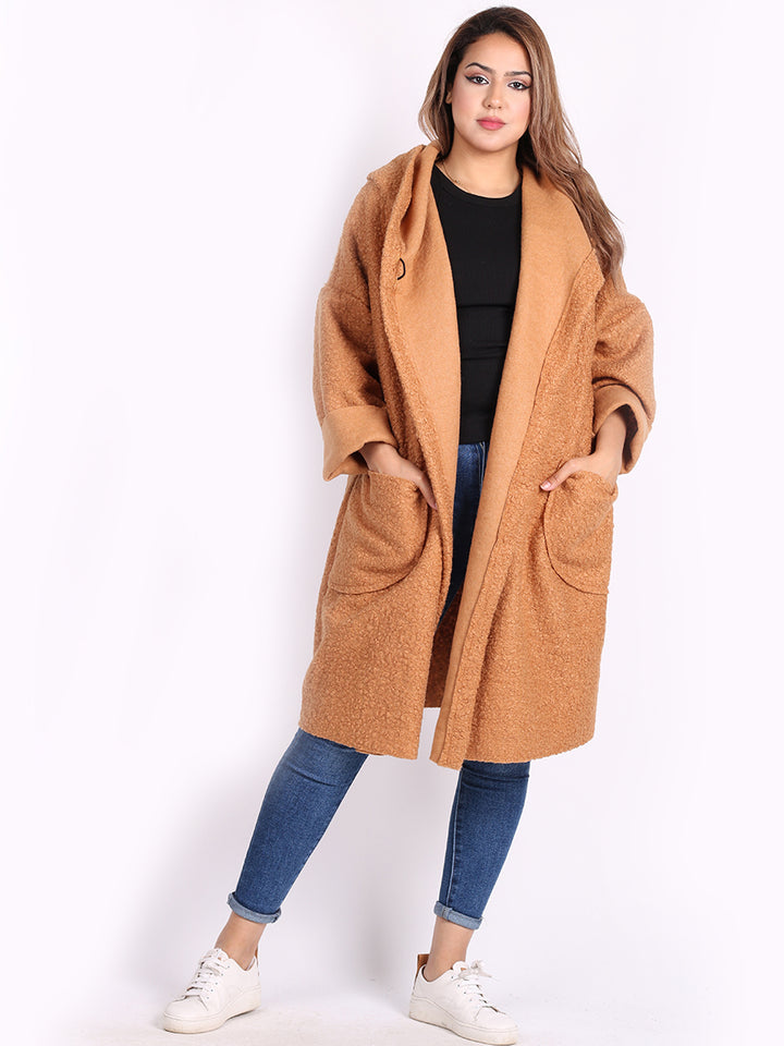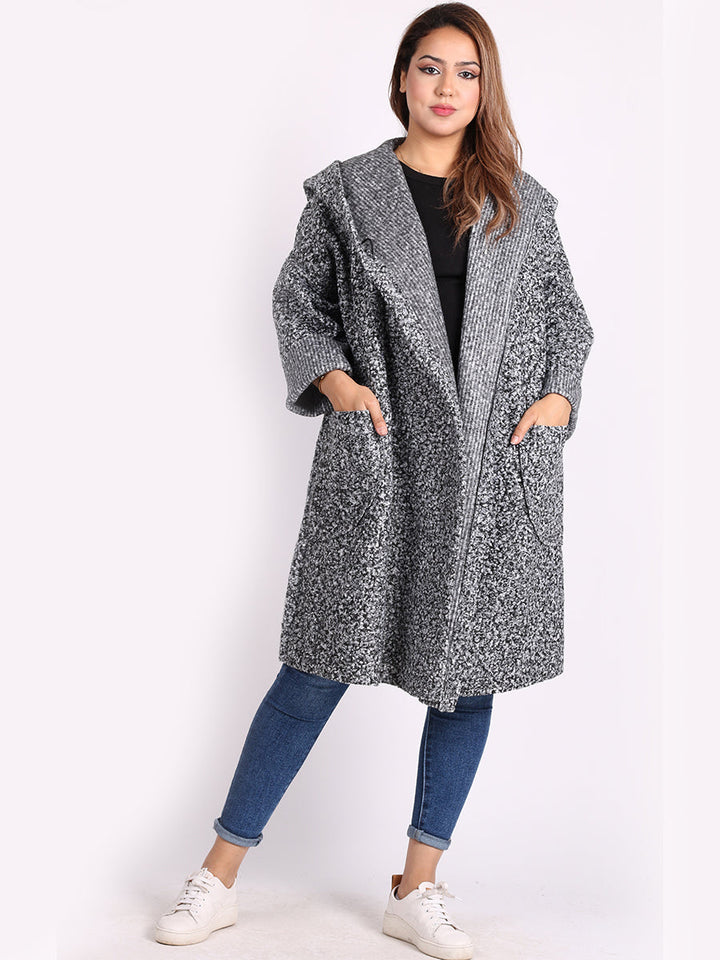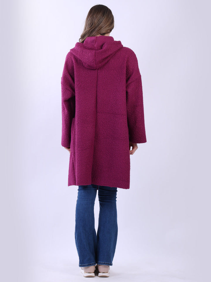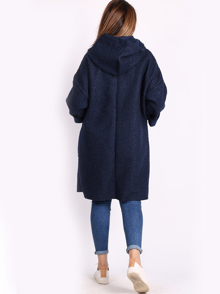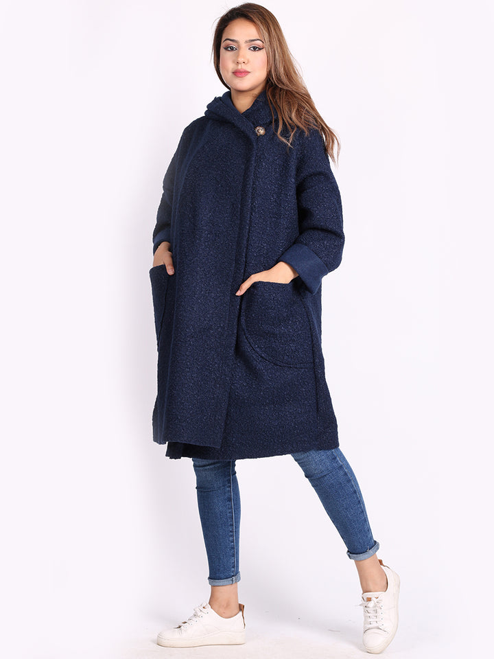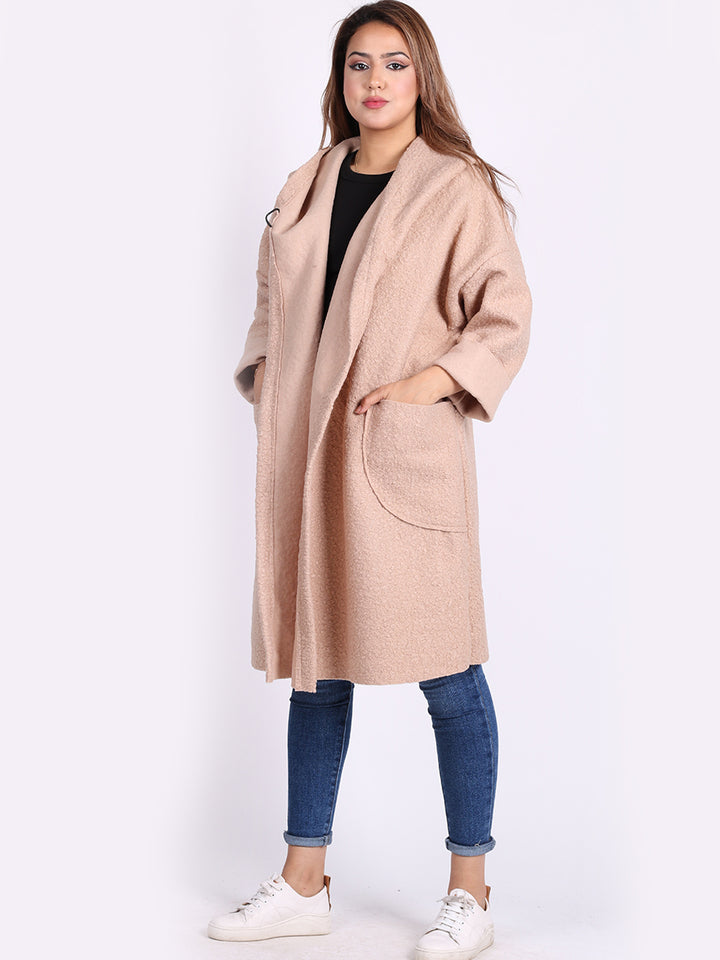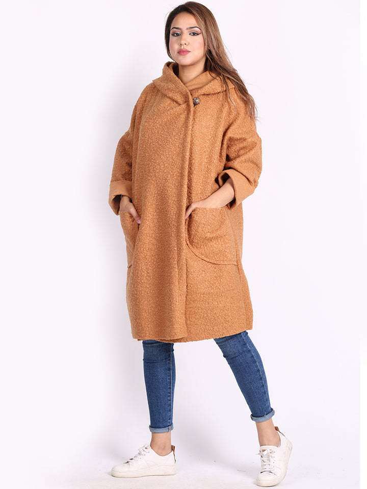 Italian Front Pockets Hooded Woolen Lagenlook Jacket