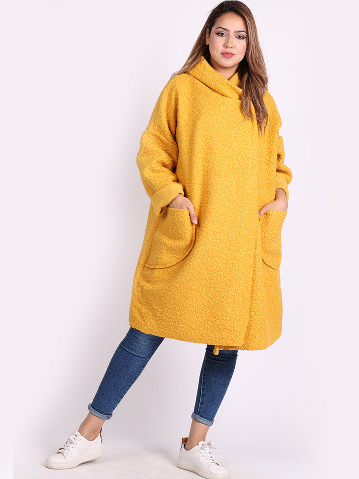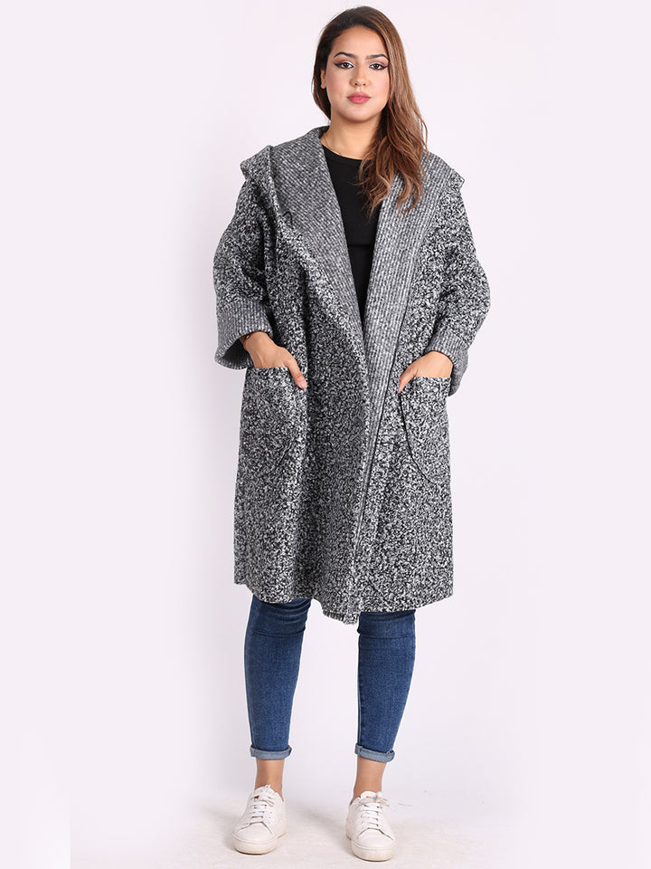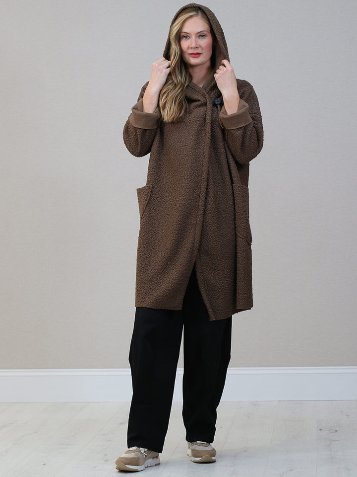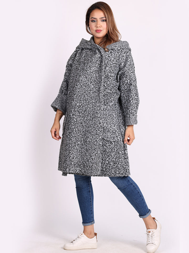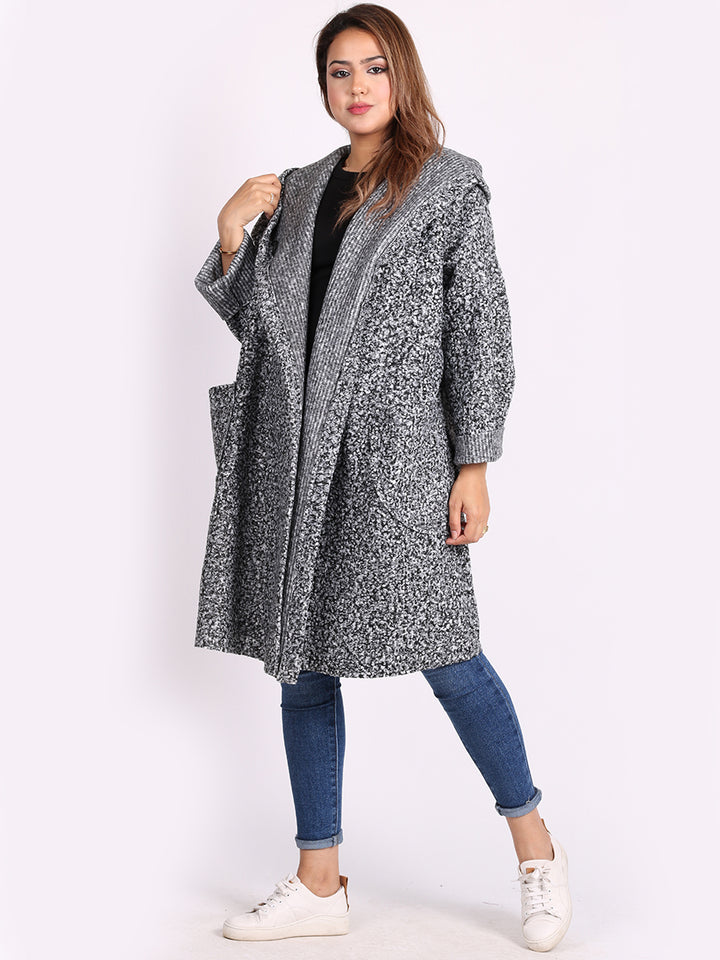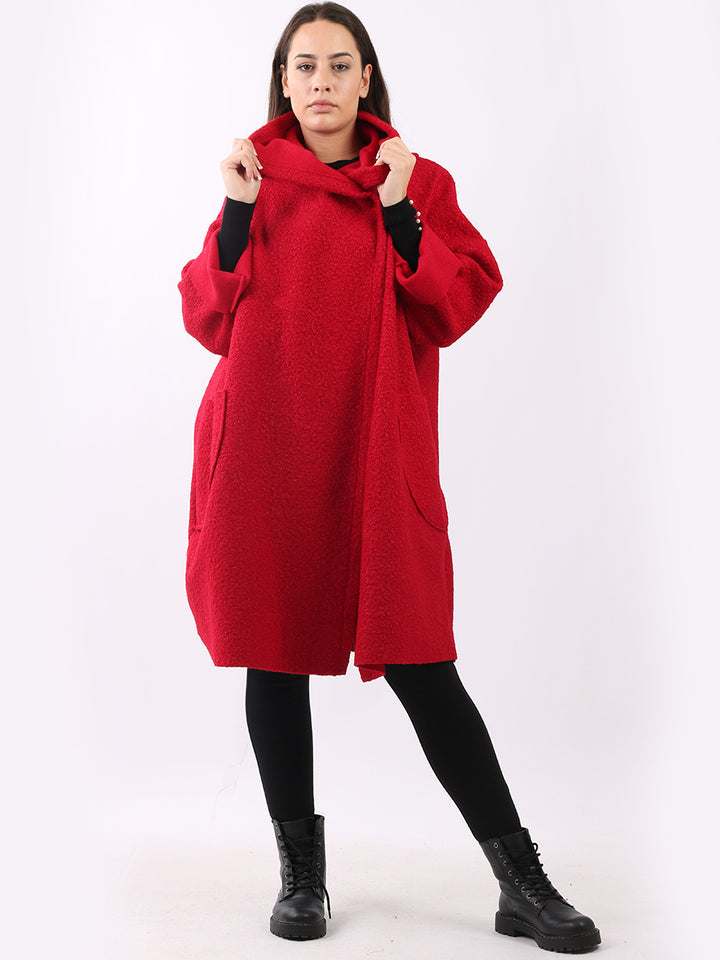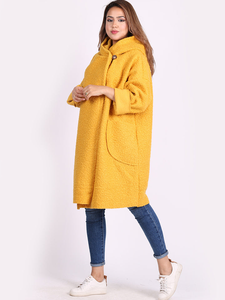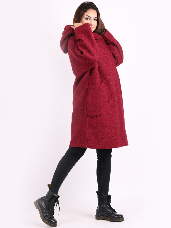 Italian Front Pockets Hooded Woolen Lagenlook Jacket
