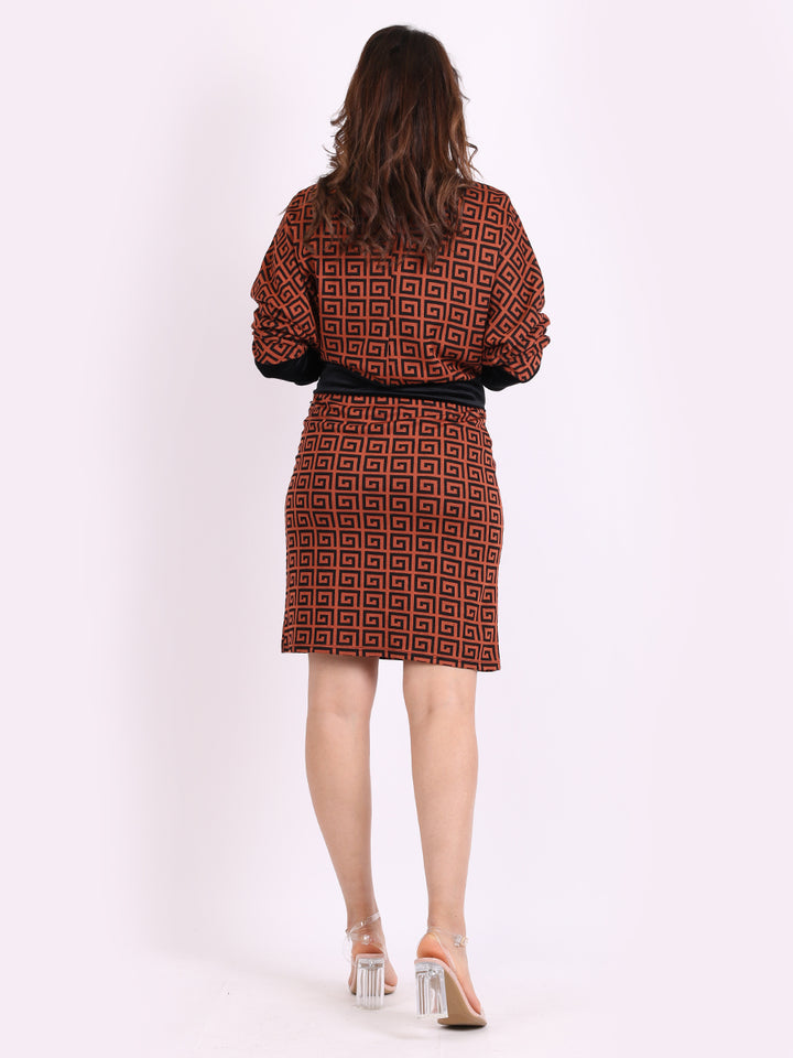Italian Geometric Print Velvet Lagenlook Boho Bodycon Dress