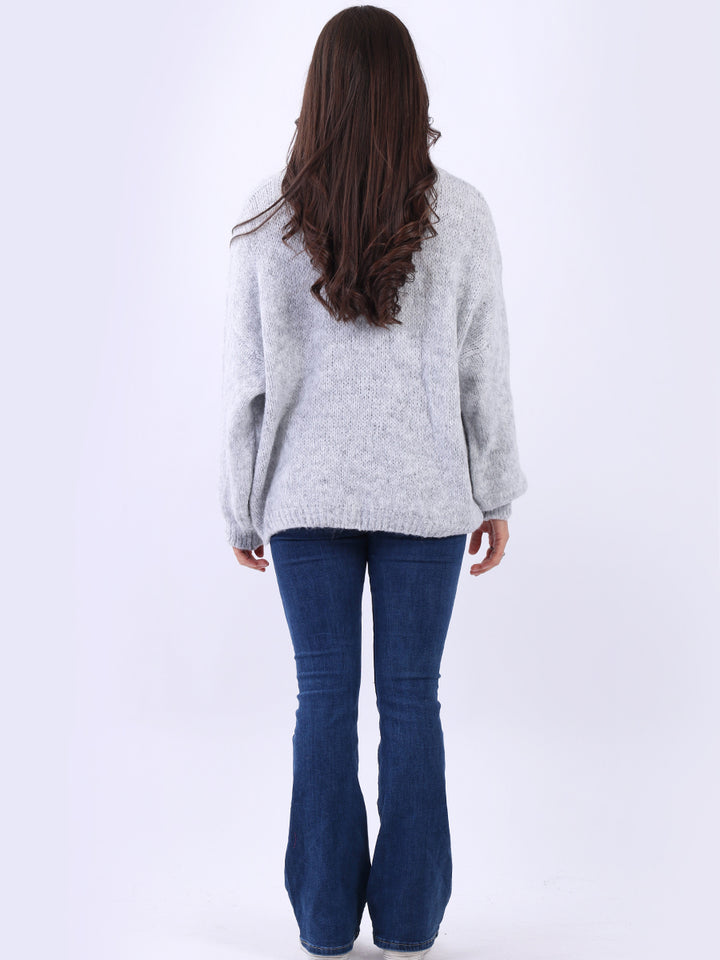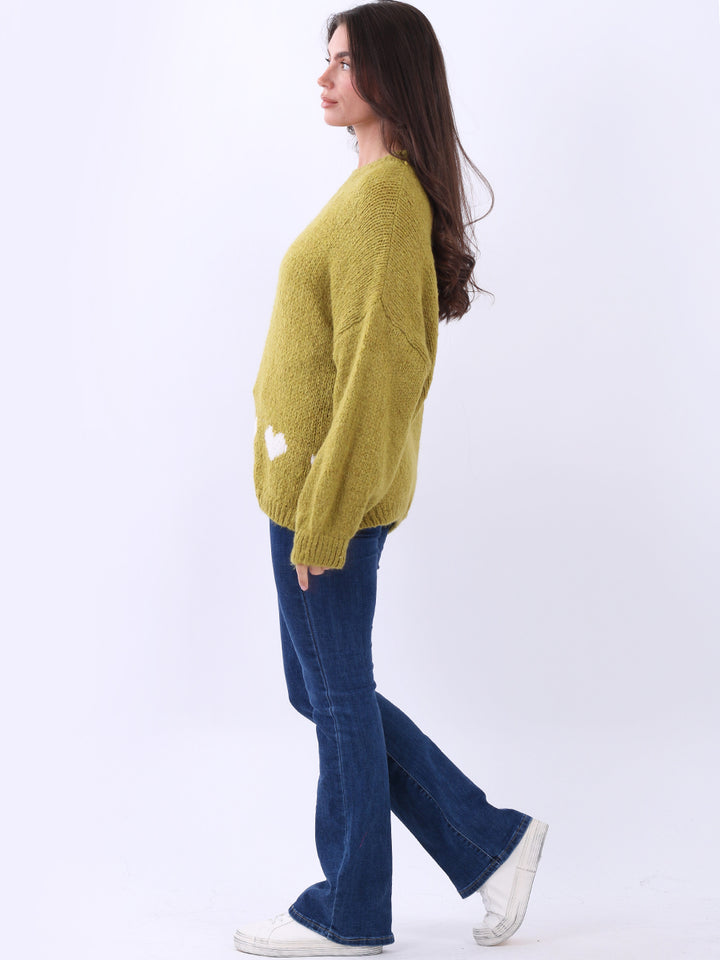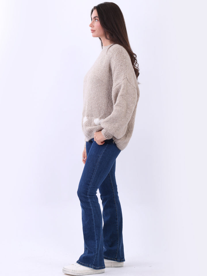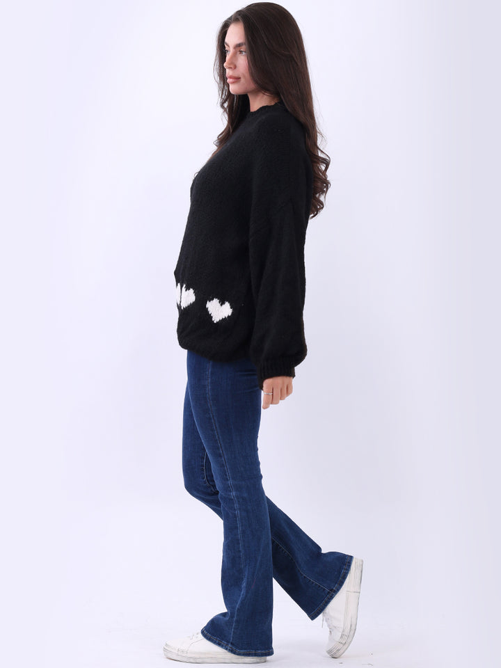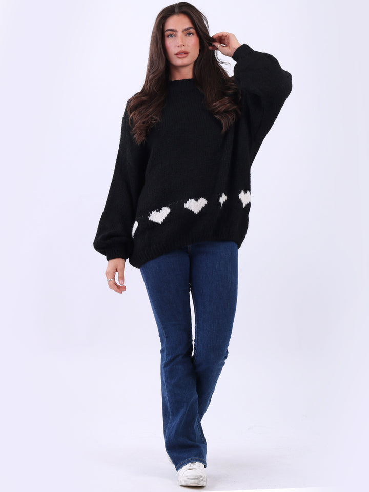 To elevate the ladies' winter fashion collection, this wool jumper with beautiful hearts knitted on hem is a showstopper. Exuding elegance and grace, it features a delicate design with the crew neck, drop shoulders and baggy sleeves. Perfect for days when women wearers want to feel cozy yet stylish.