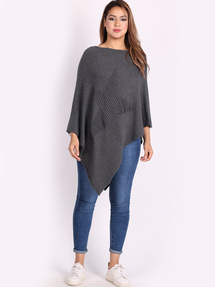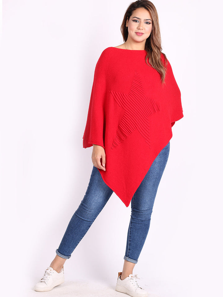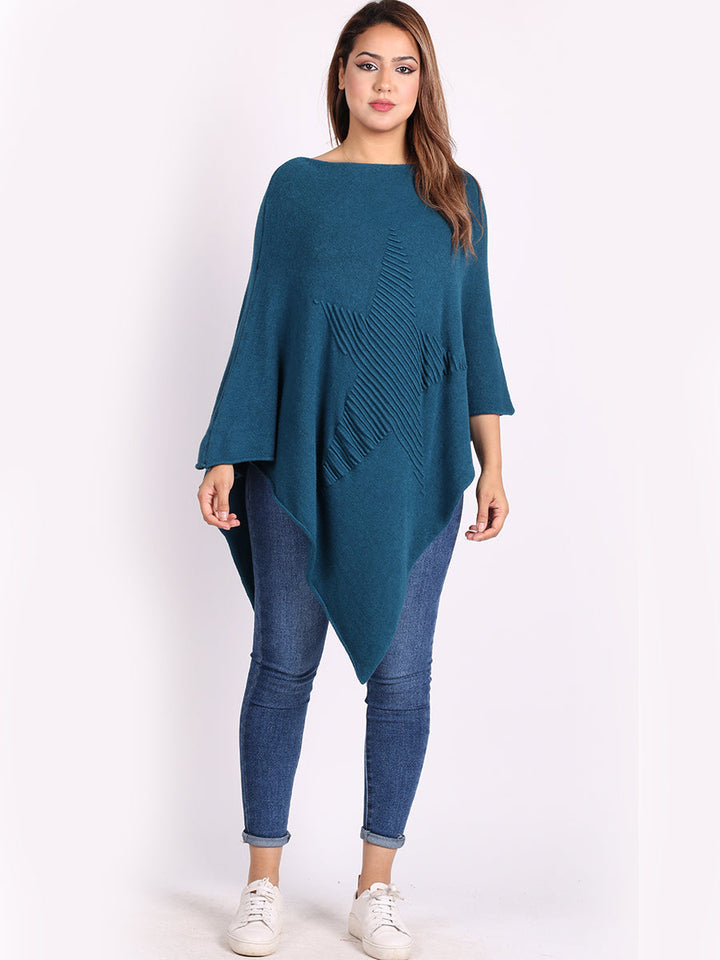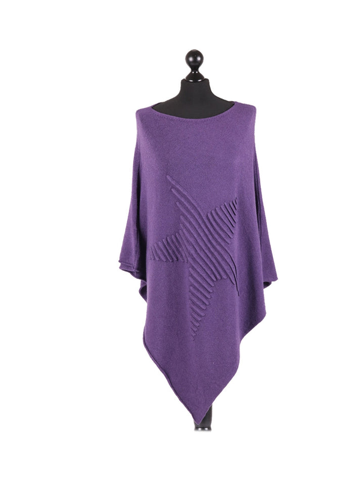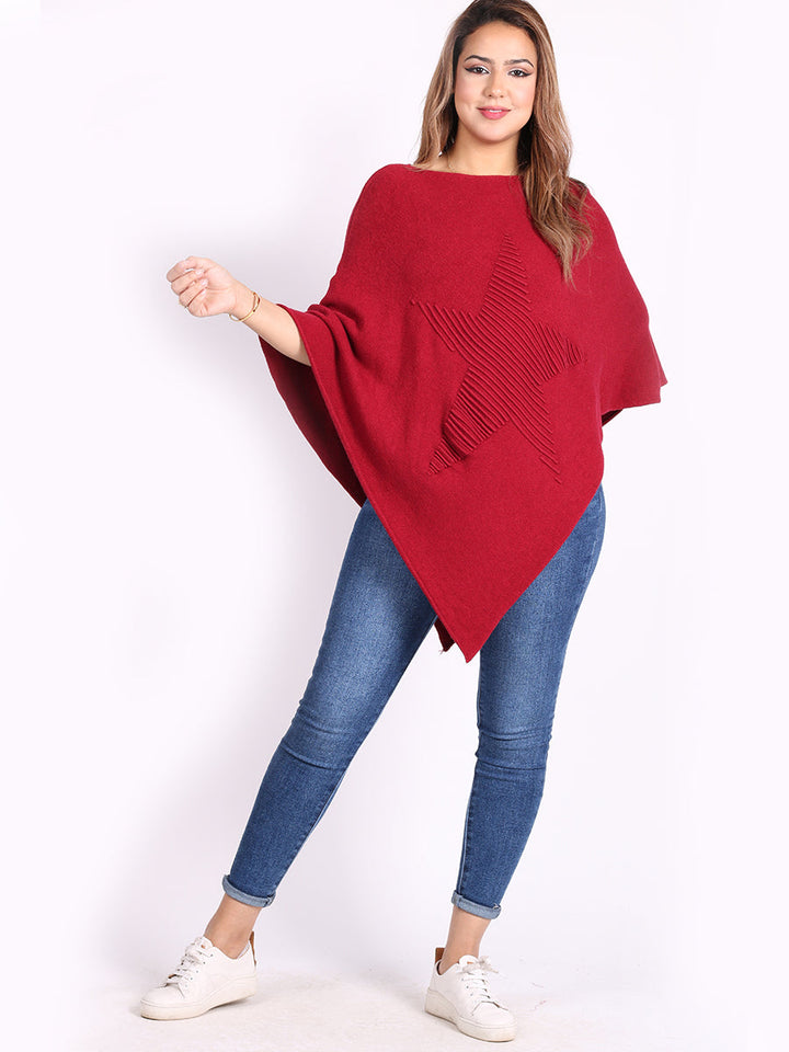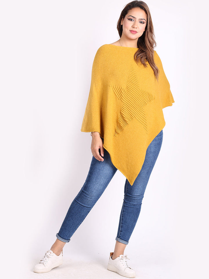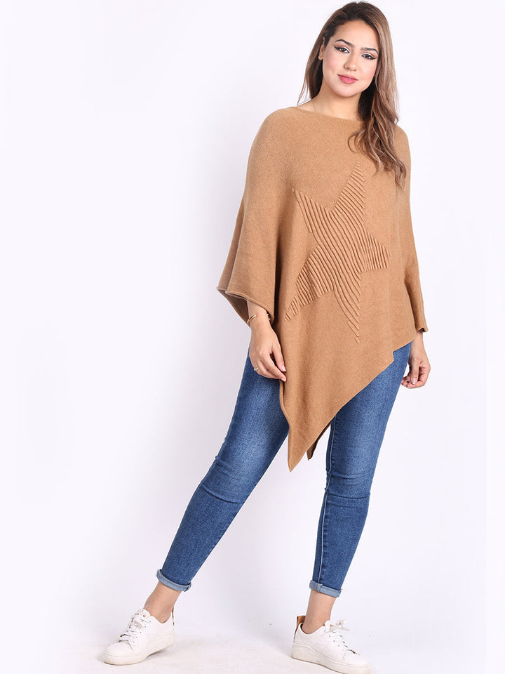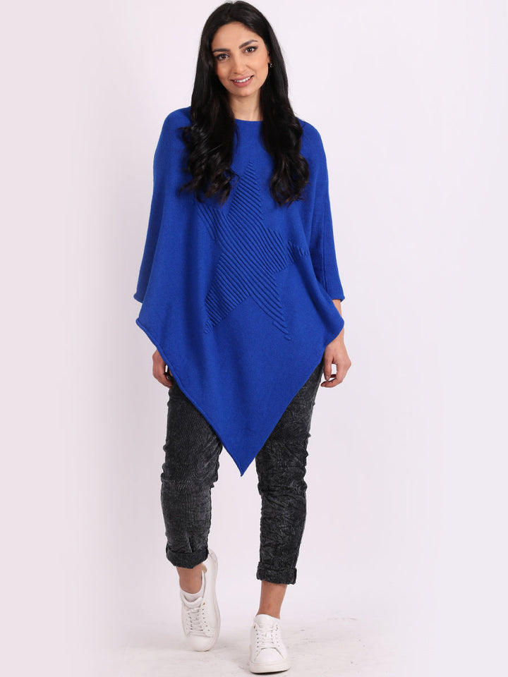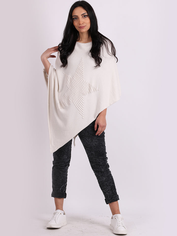 Star of the show worthy wardrobe pick! An Italian made poncho to keep heart, body and style haute by fashion boutique London is just perfect seasonal shifts and mood swings. Featuring an embossed style mega star with diagonal lines giving more character to the emblem, super comfy boat neck for pull on style and asymmetric hem to give every step lasting modish stride elegance this is a must have. Team it up with acid dyed jeans and cross body bag for adventurous look.