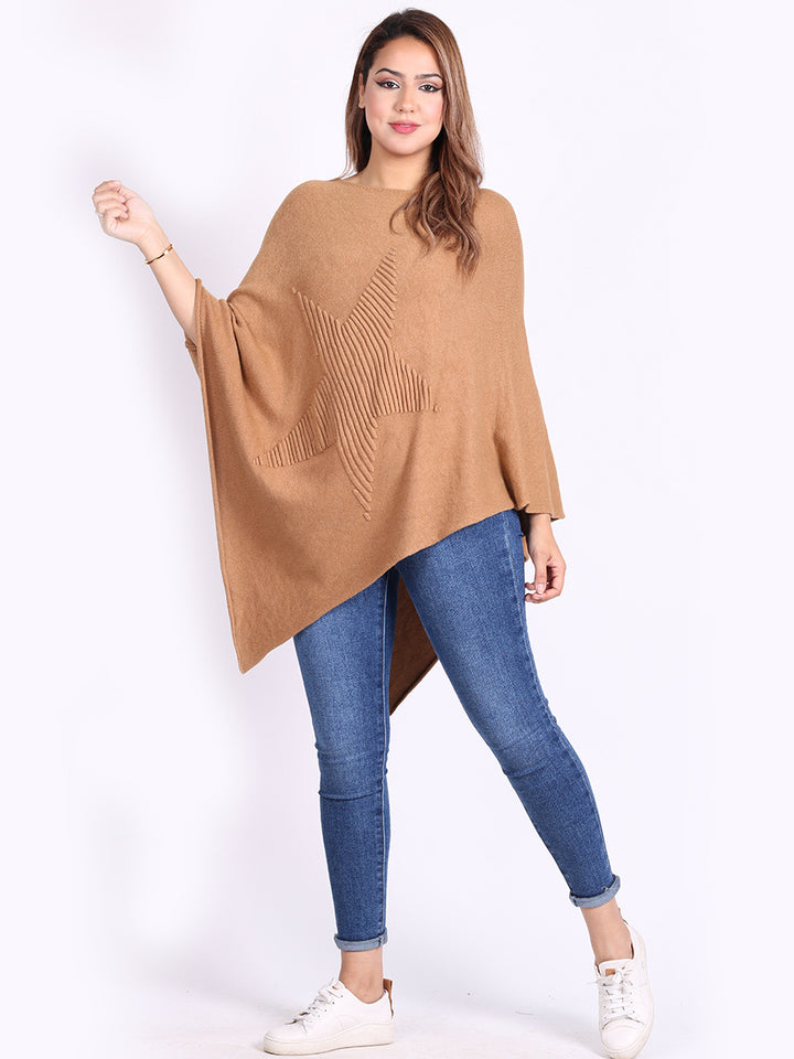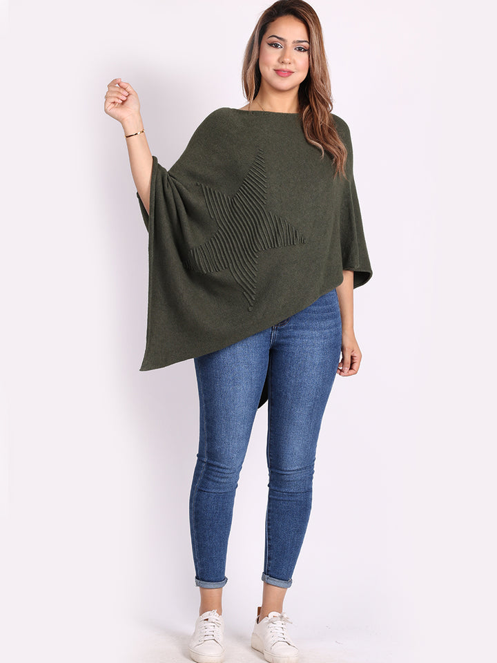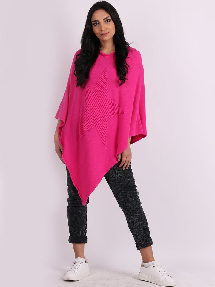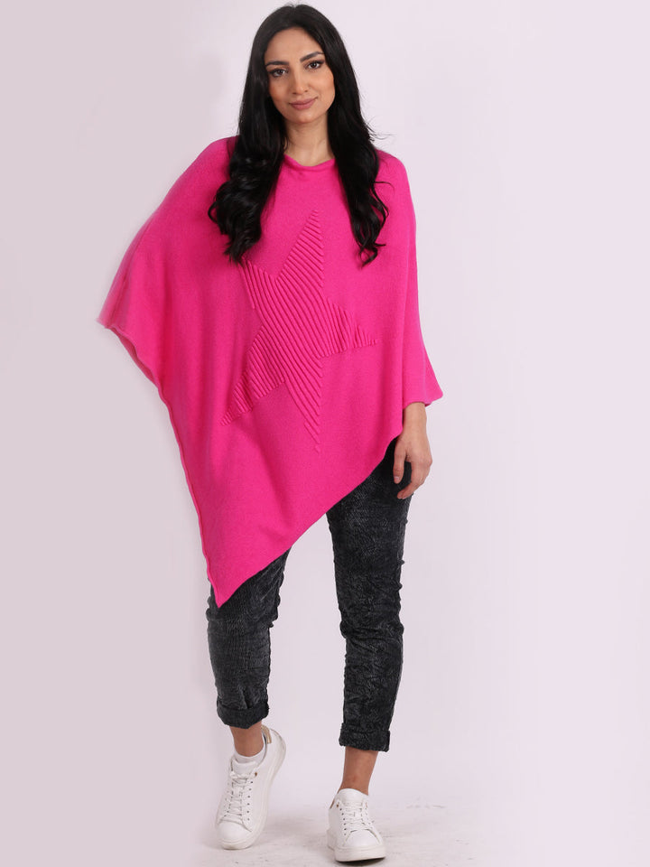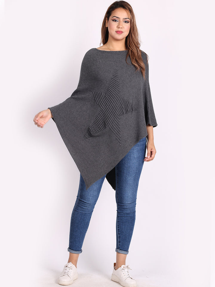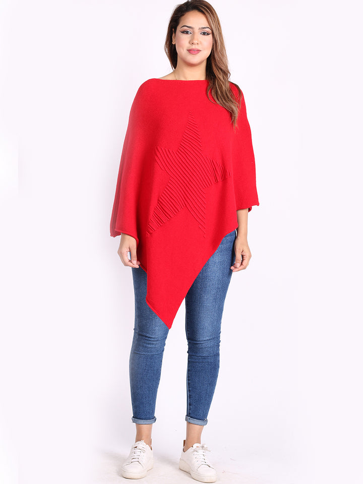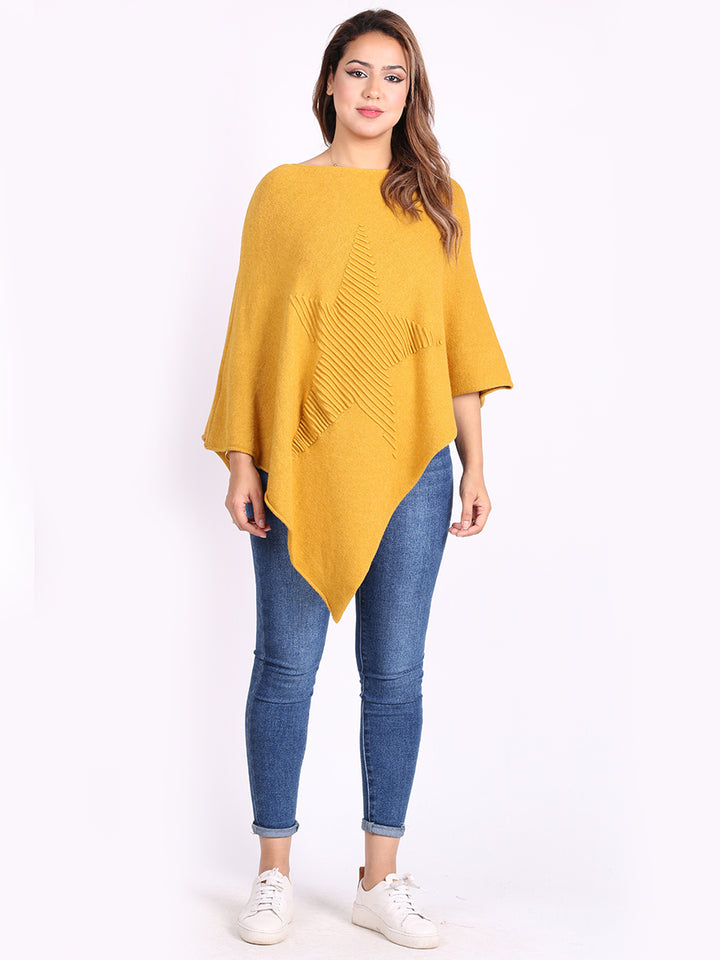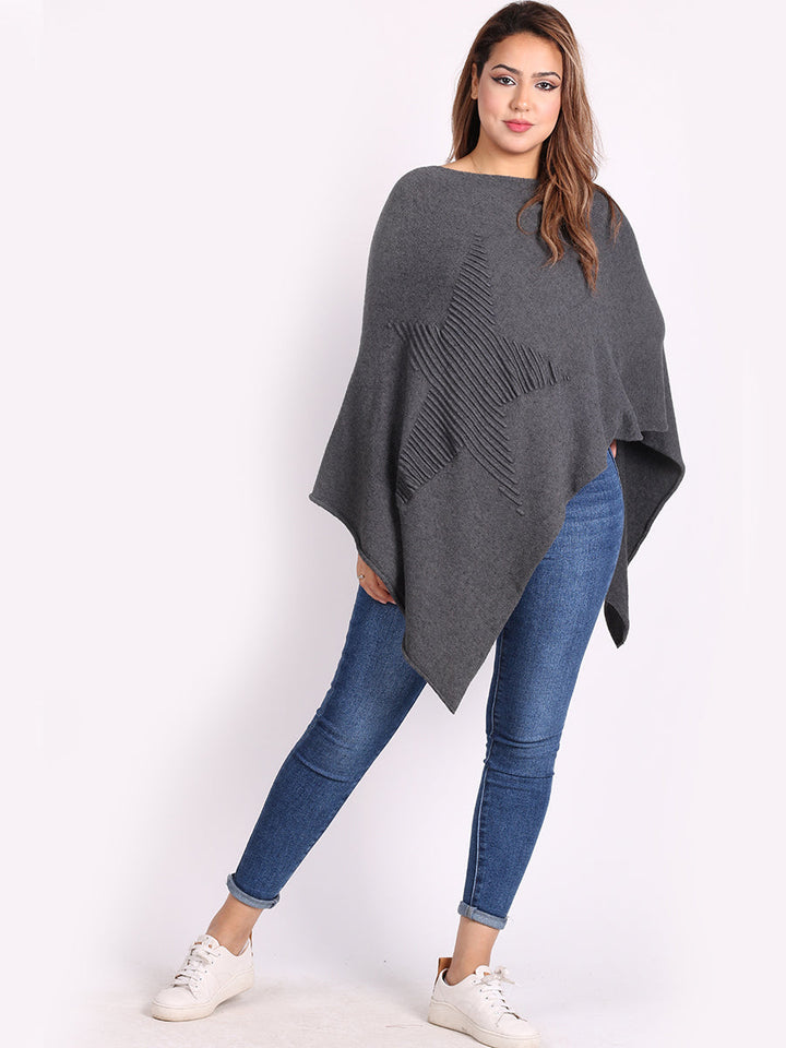 Star of the show worthy wardrobe pick! An Italian made poncho to keep heart, body and style haute by fashion boutique London is just perfect seasonal shifts and mood swings. Featuring an embossed style mega star with diagonal lines giving more character to the emblem, super comfy boat neck for pull on style and asymmetric hem to give every step lasting modish stride elegance this is a must have. Team it up with acid dyed jeans and cross body bag for adventurous look.