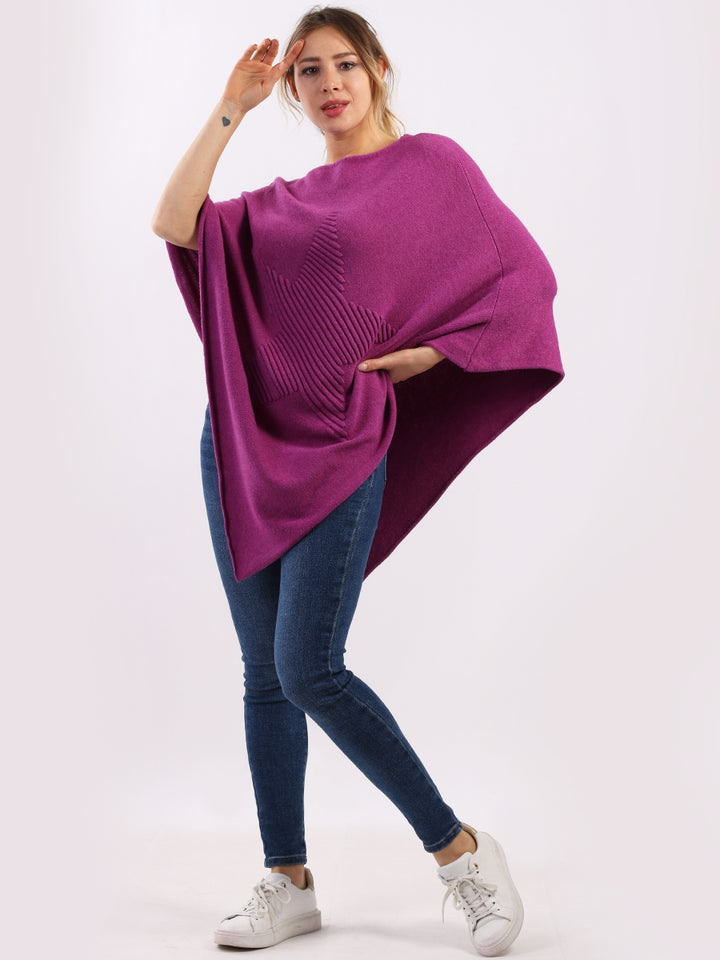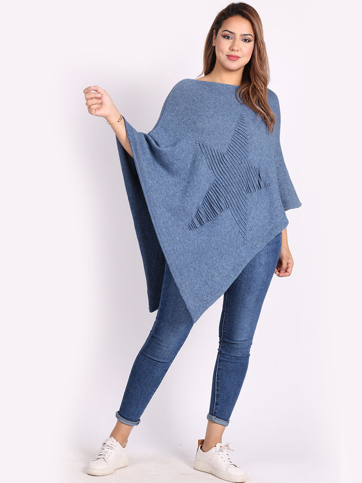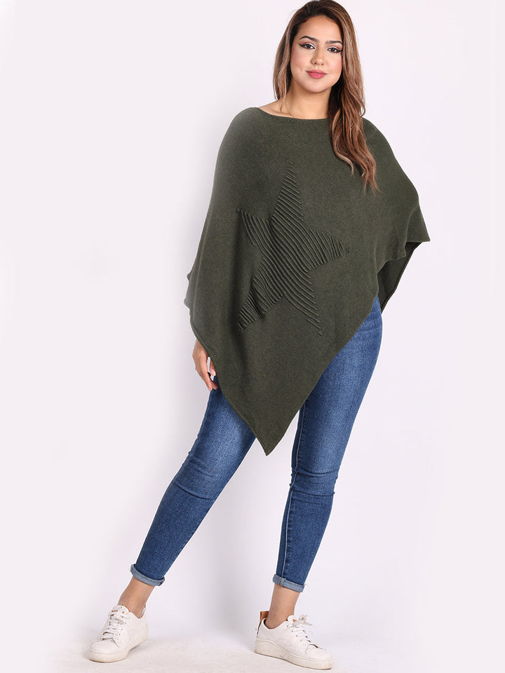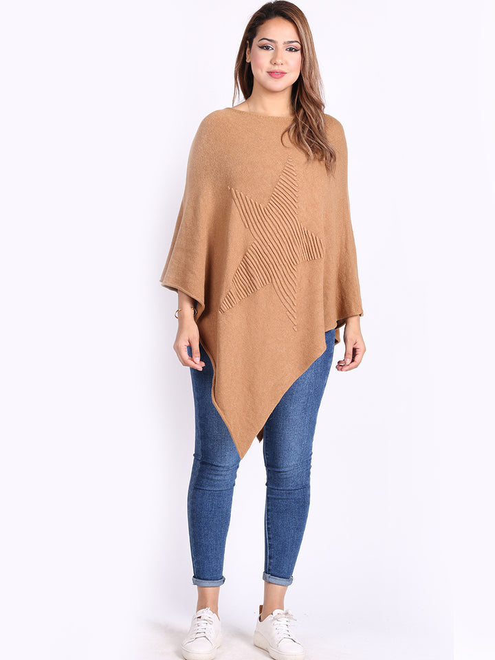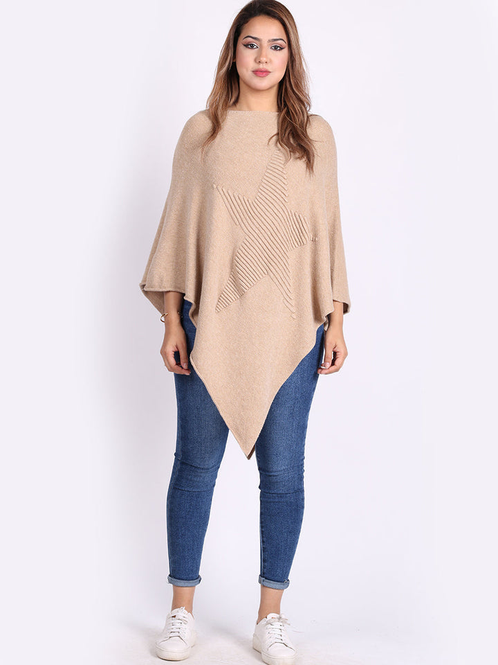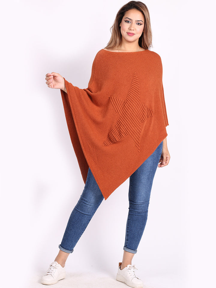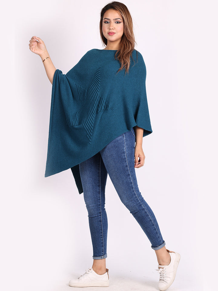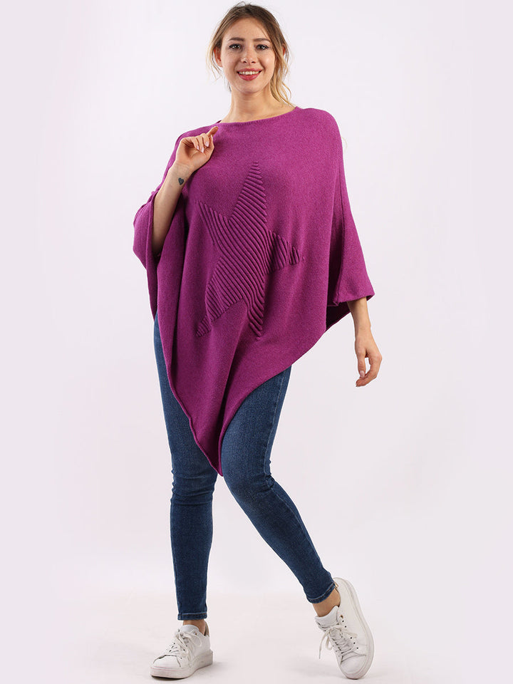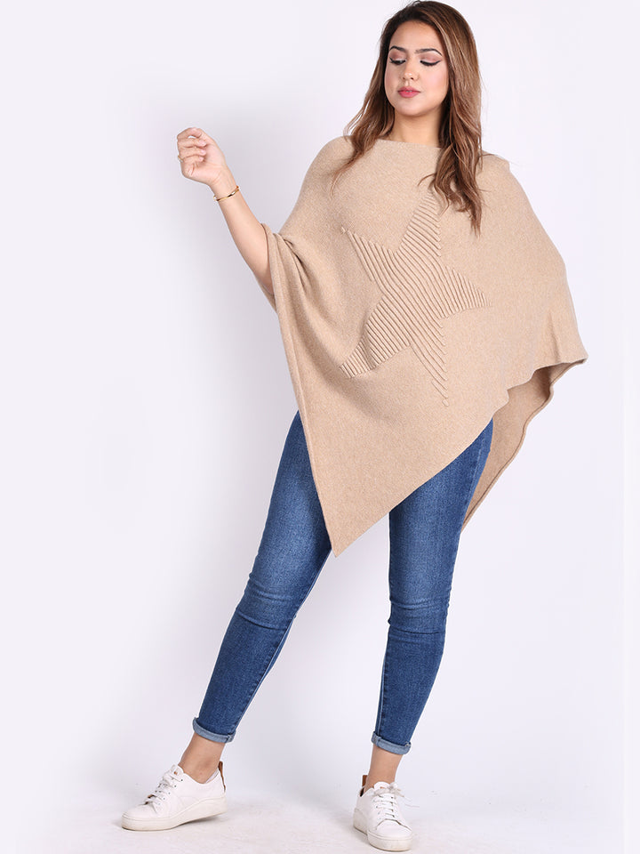 Star of the show worthy wardrobe pick! An Italian made poncho to keep heart, body and style haute by fashion boutique London is just perfect seasonal shifts and mood swings. Featuring an embossed style mega star with diagonal lines giving more character to the emblem, super comfy boat neck for pull on style and asymmetric hem to give every step lasting modish stride elegance this is a must have. Team it up with acid dyed jeans and cross body bag for adventurous look.