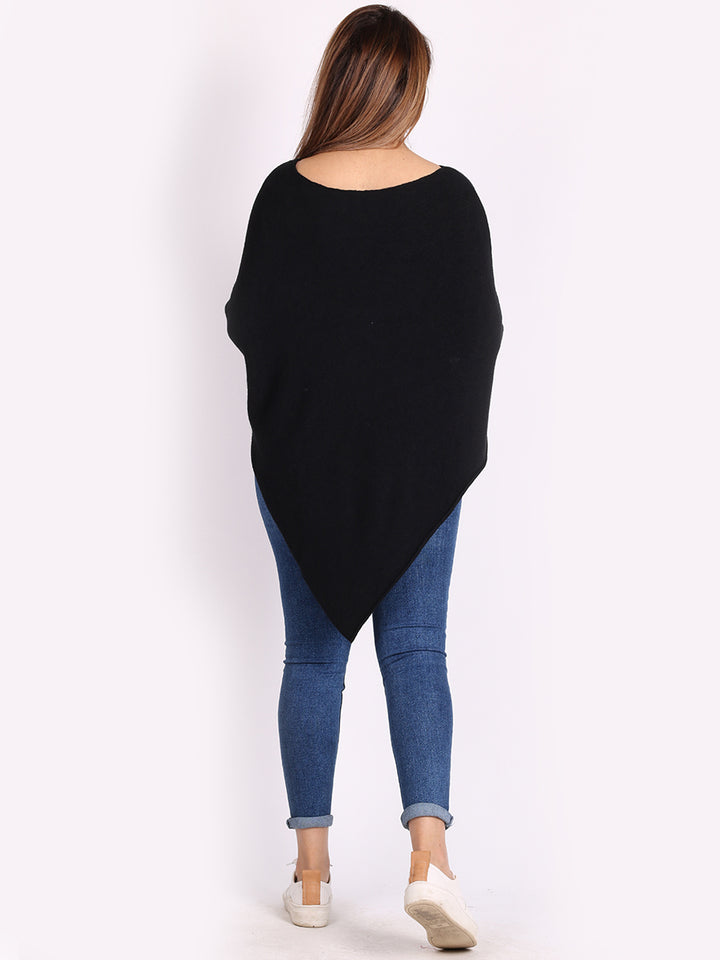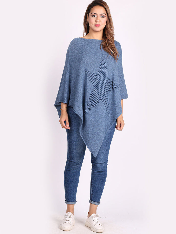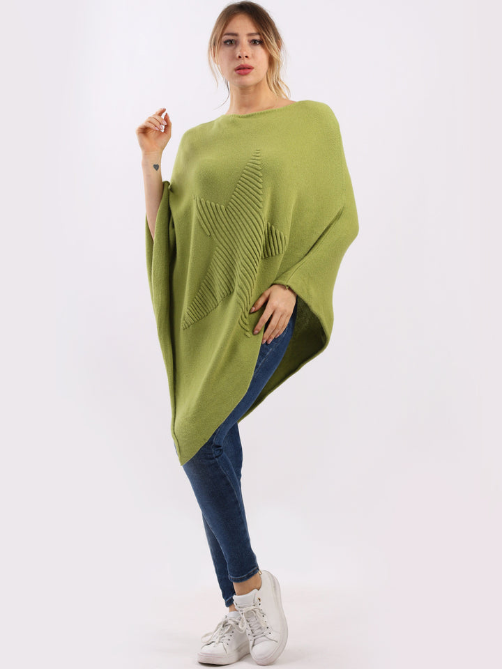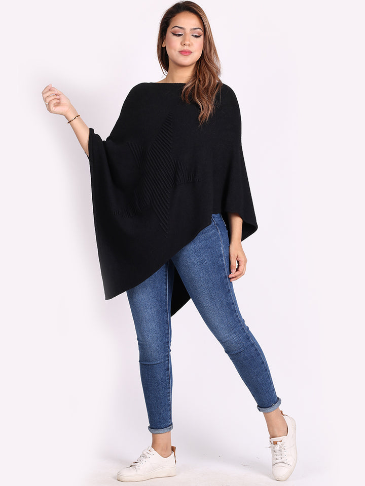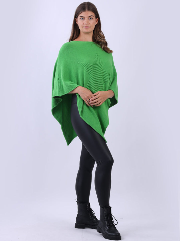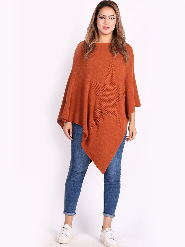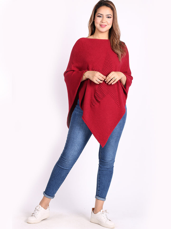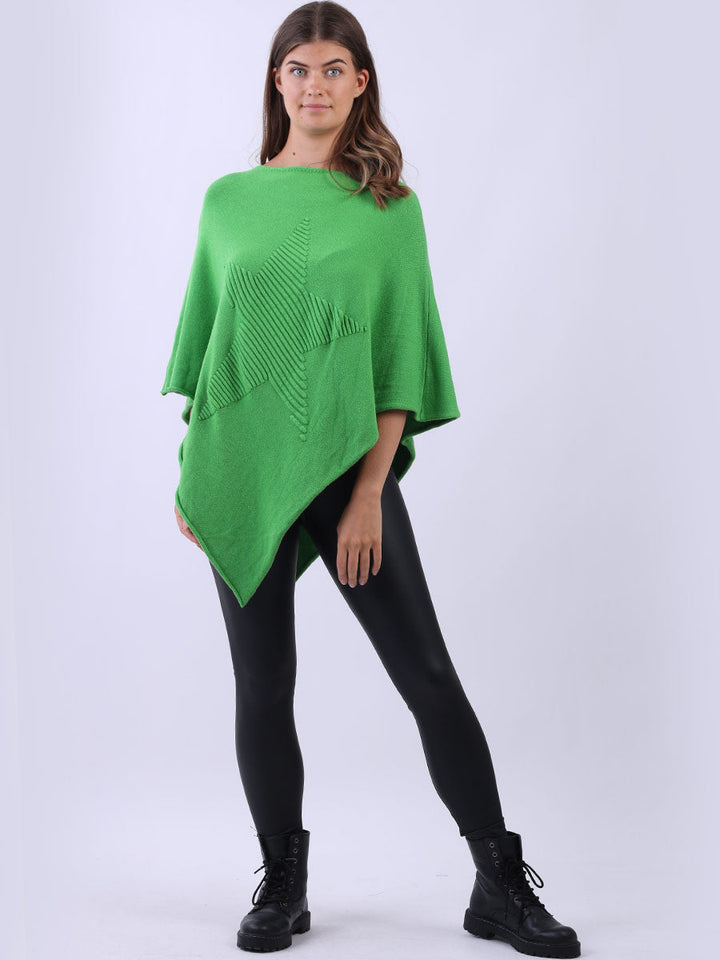 Star of the show worthy wardrobe pick! An Italian made poncho to keep heart, body and style haute by fashion boutique London is just perfect seasonal shifts and mood swings. Featuring an embossed style mega star with diagonal lines giving more character to the emblem, super comfy boat neck for pull on style and asymmetric hem to give every step lasting modish stride elegance this is a must have. Team it up with acid dyed jeans and cross body bag for adventurous look.