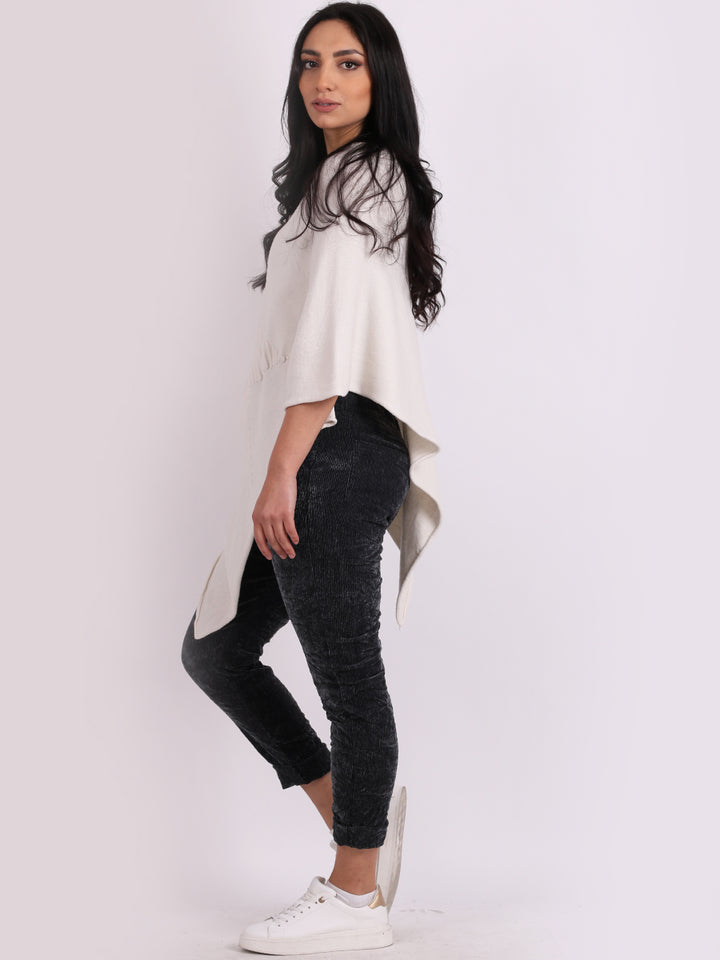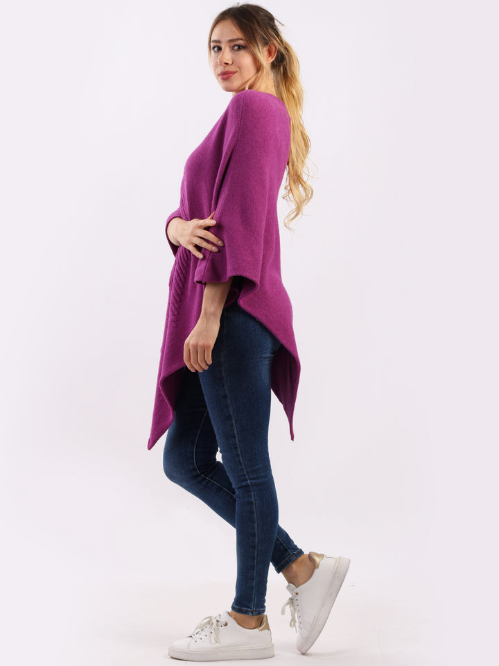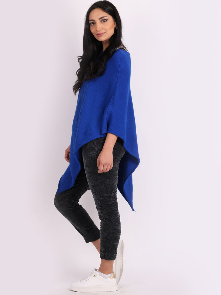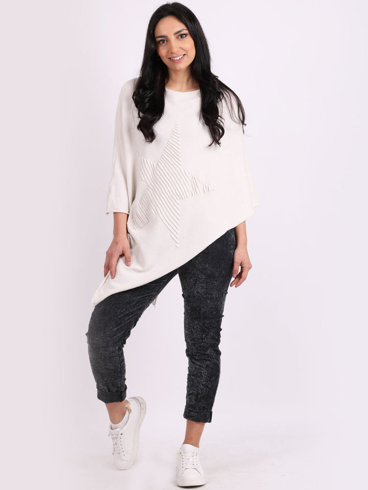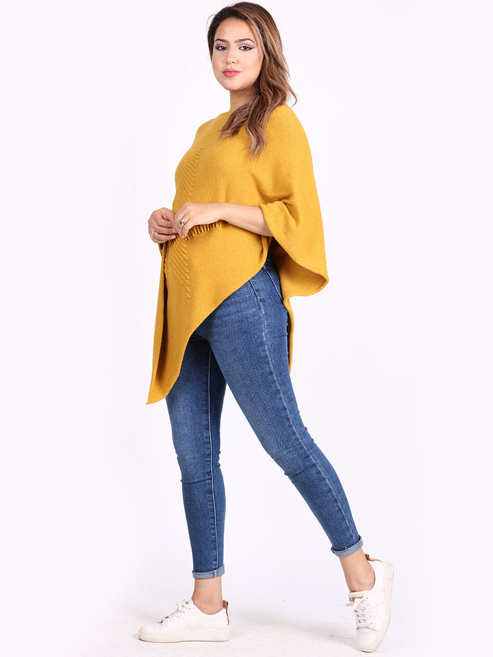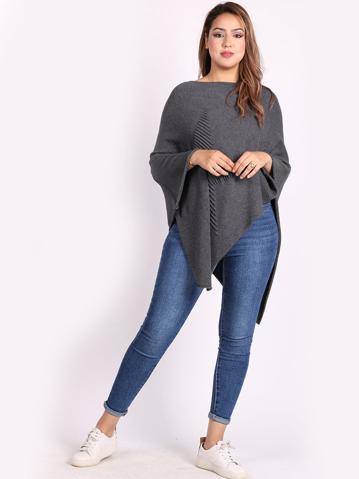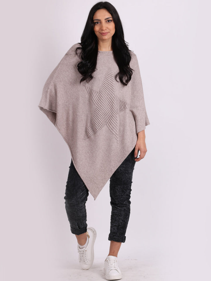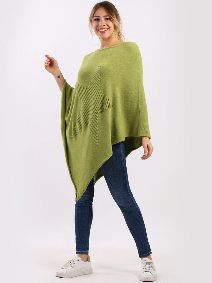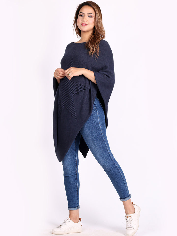 Star of the show worthy wardrobe pick! An Italian made poncho to keep heart, body and style haute by fashion boutique London is just perfect seasonal shifts and mood swings. Featuring an embossed style mega star with diagonal lines giving more character to the emblem, super comfy boat neck for pull on style and asymmetric hem to give every step lasting modish stride elegance this is a must have. Team it up with acid dyed jeans and cross body bag for adventurous look.