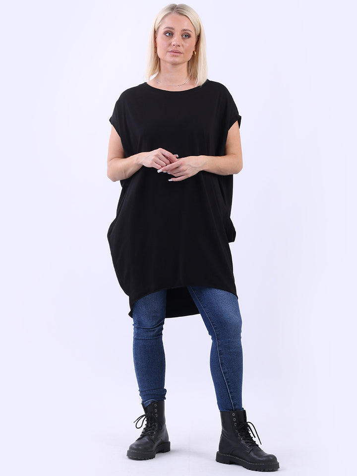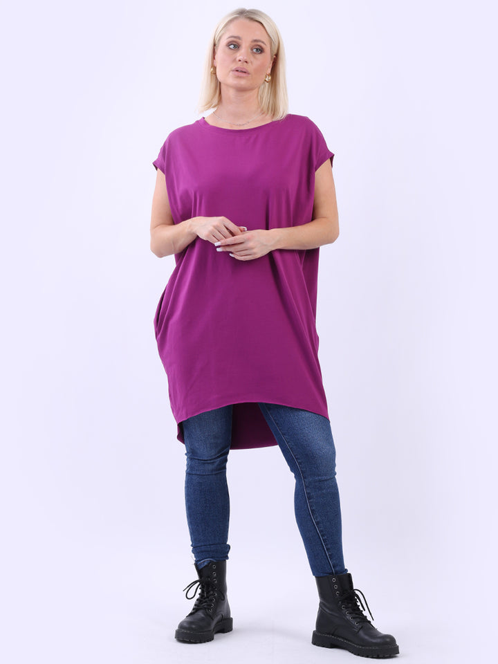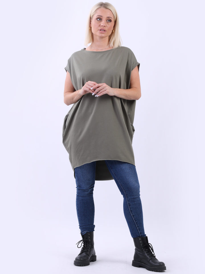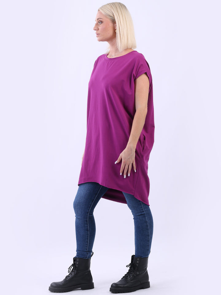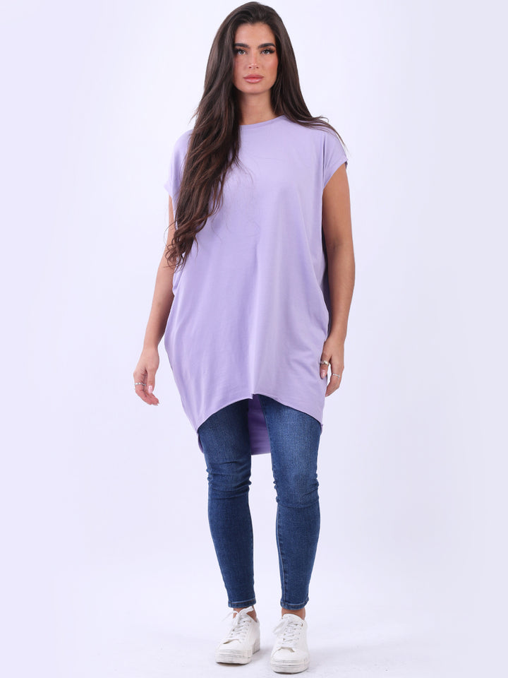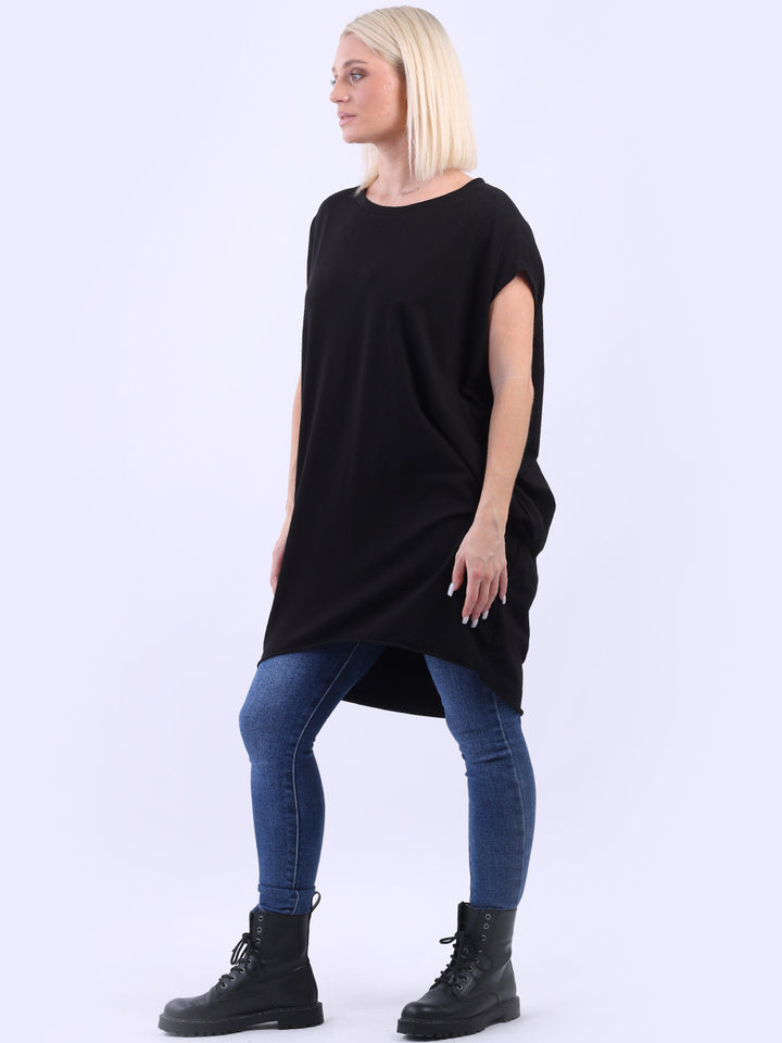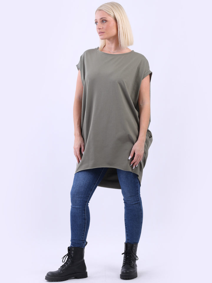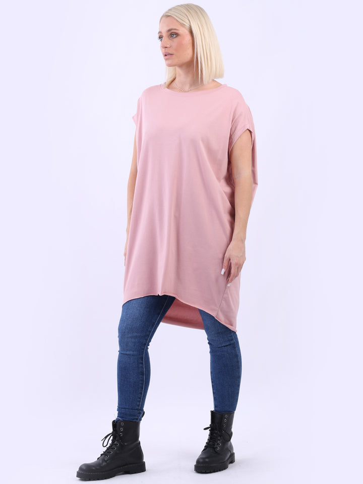 Italian Ladies Dipped Hem Lagenlook Solid Cotton Dress