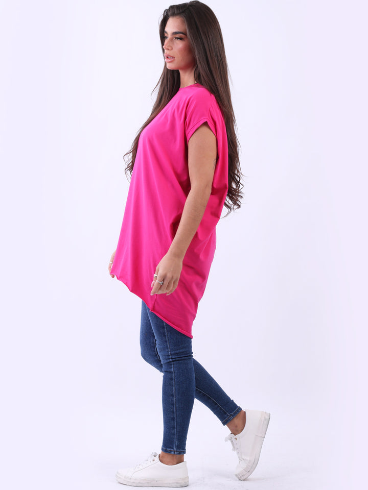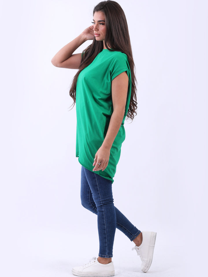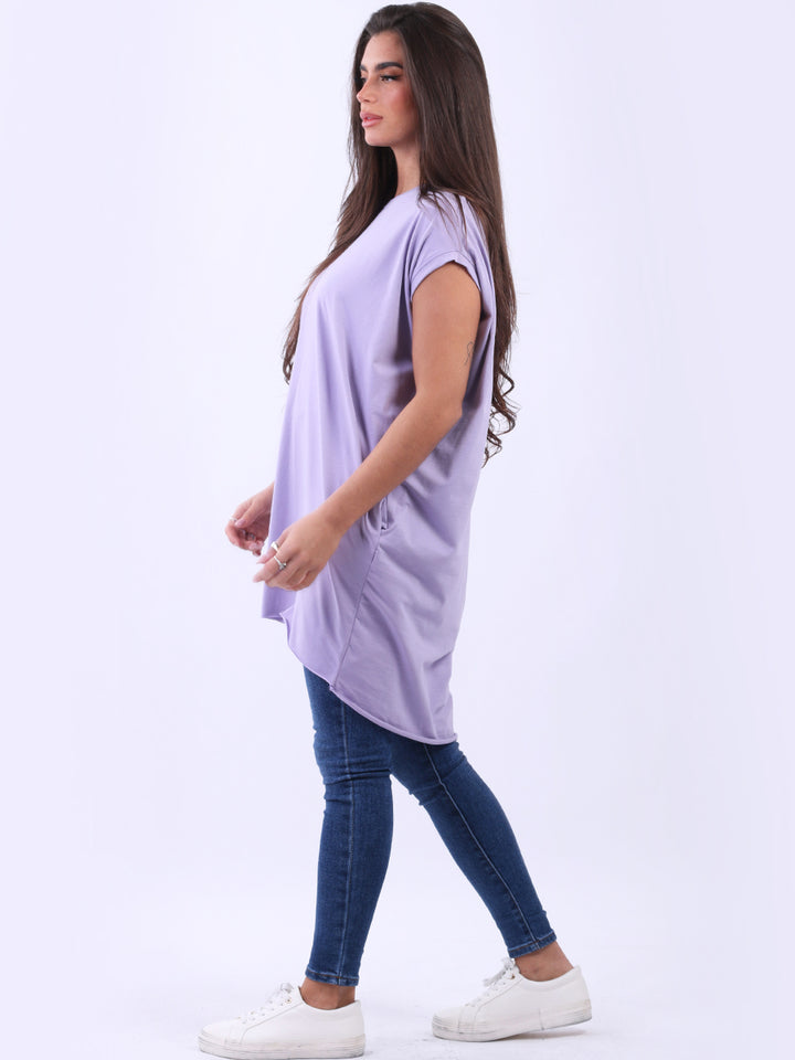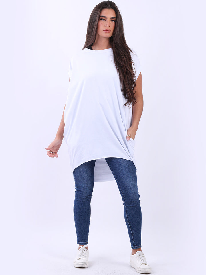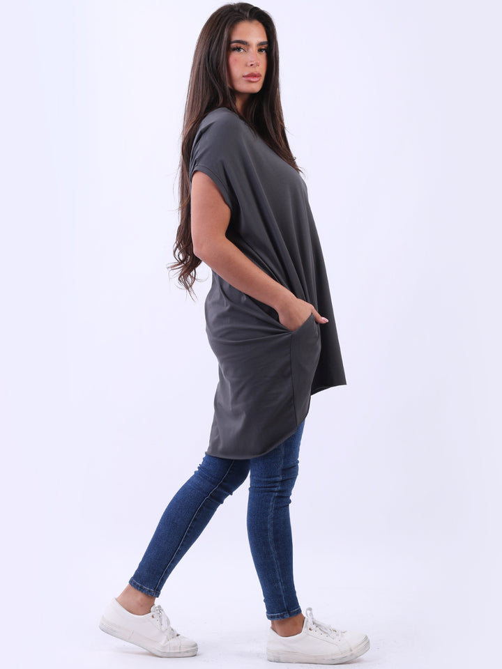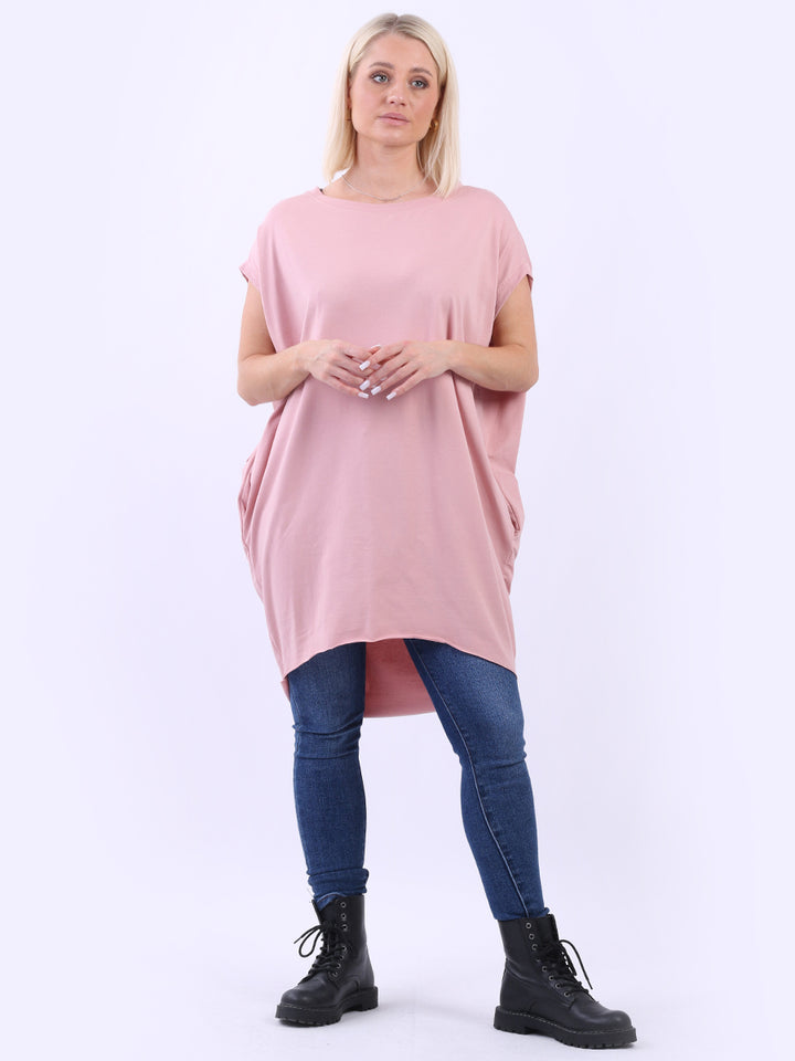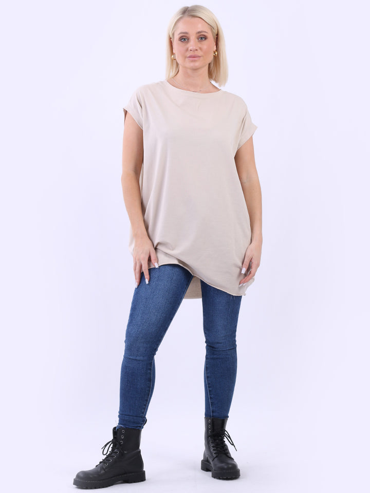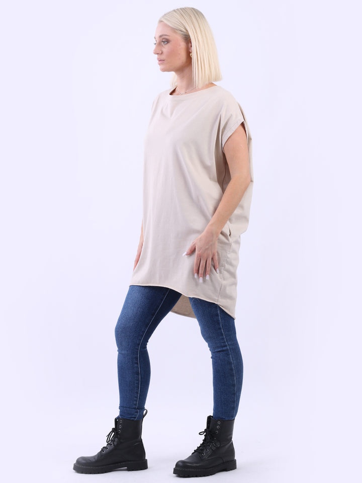 Italian Ladies Dipped Hem Lagenlook Solid Cotton Dress