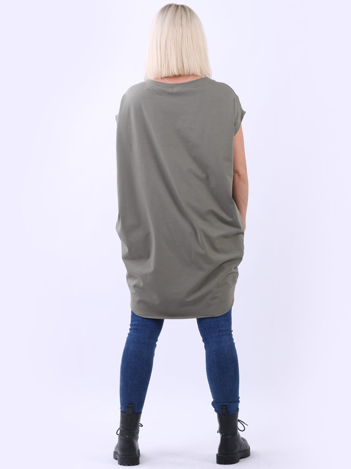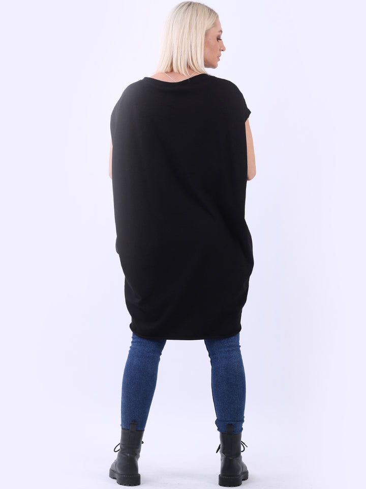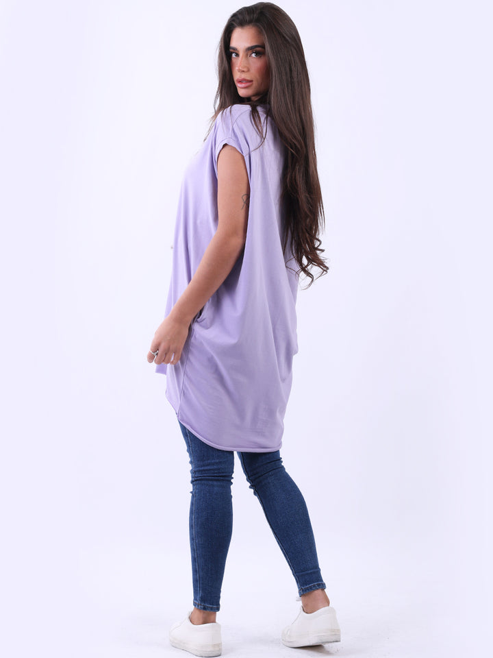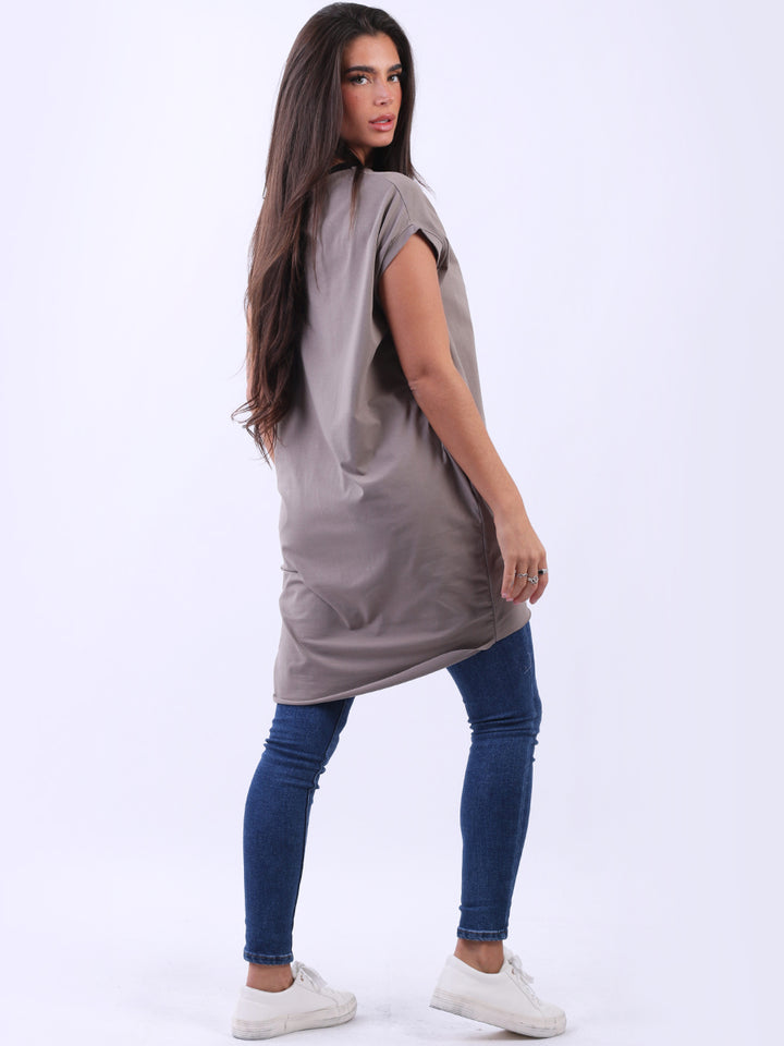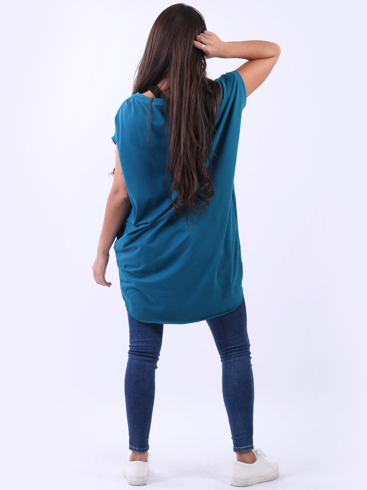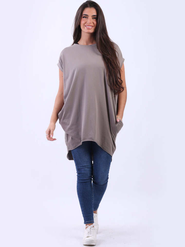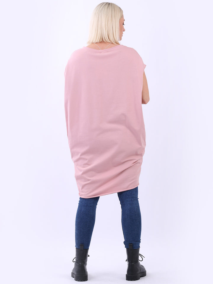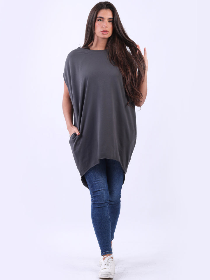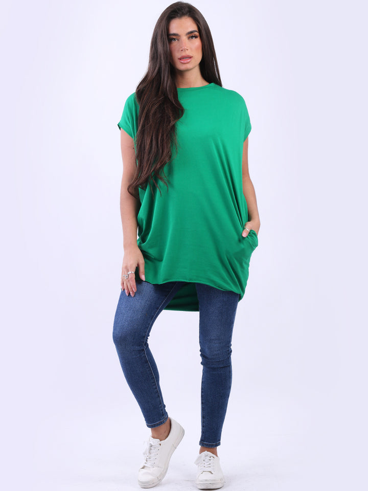 Italian Ladies Dipped Hem Lagenlook Solid Cotton Dress