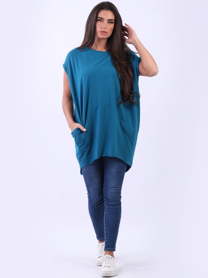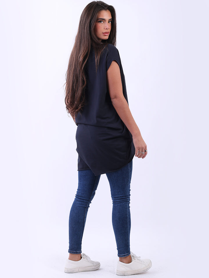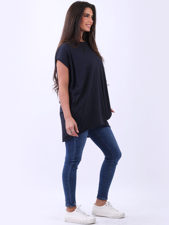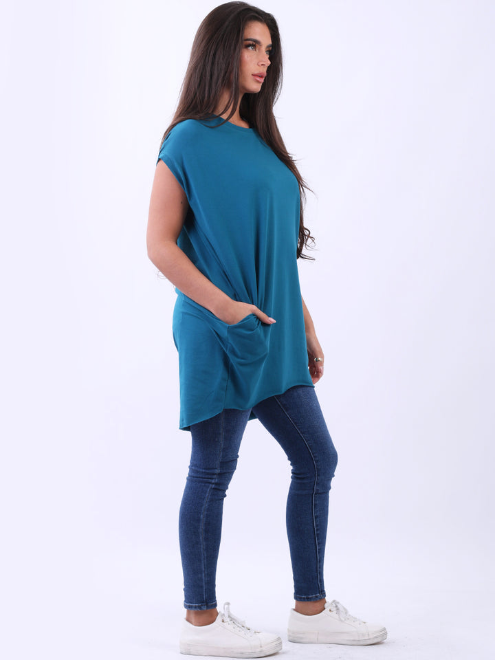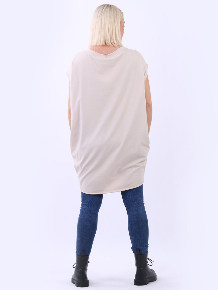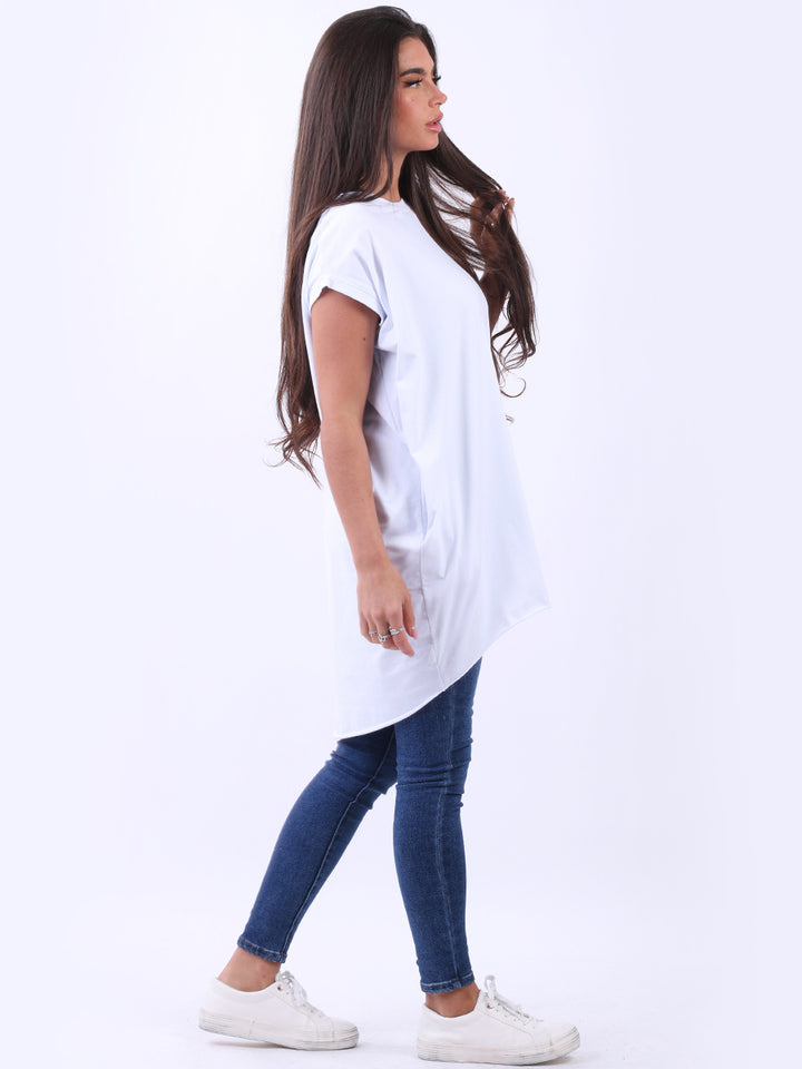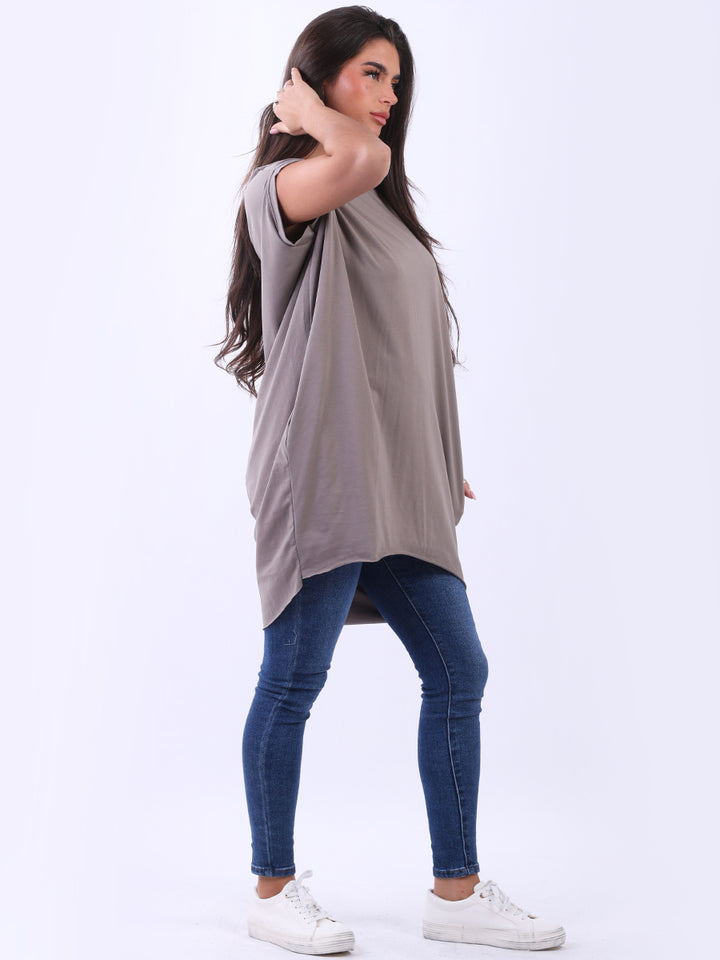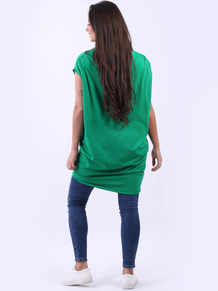 Italian Ladies Dipped Hem Lagenlook Solid Cotton Dress