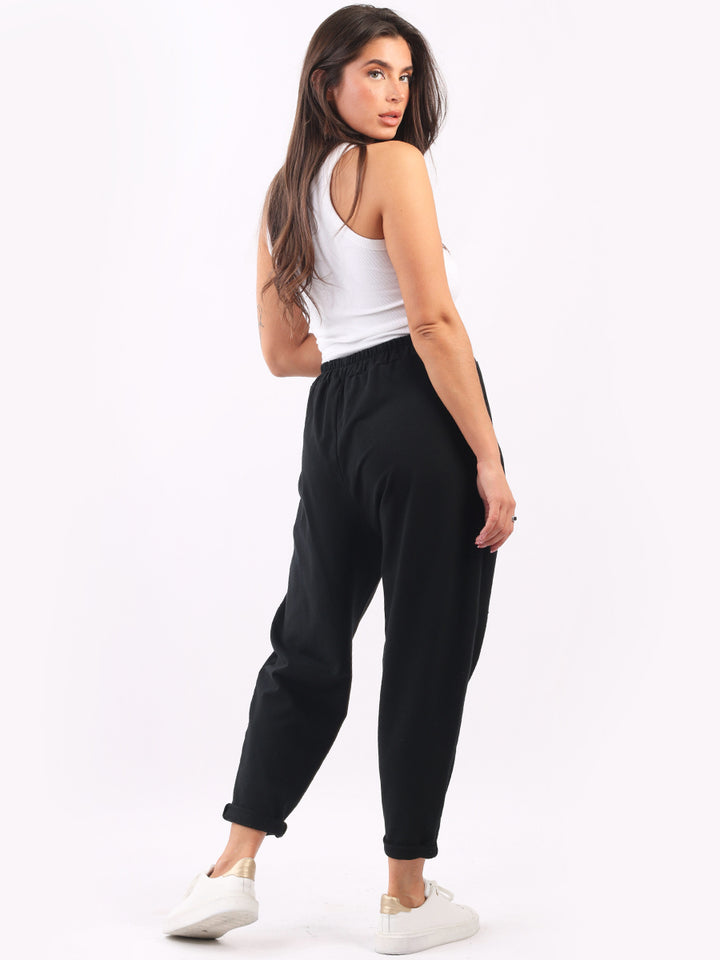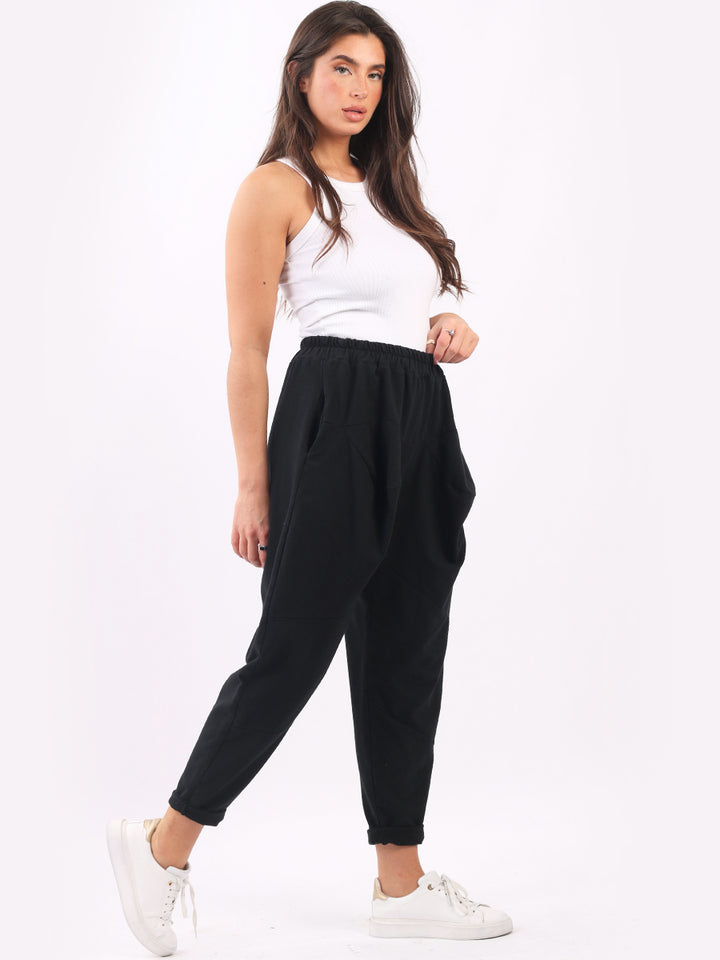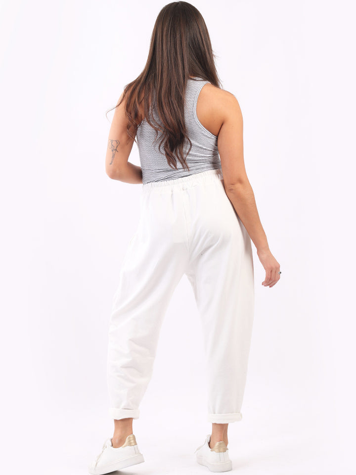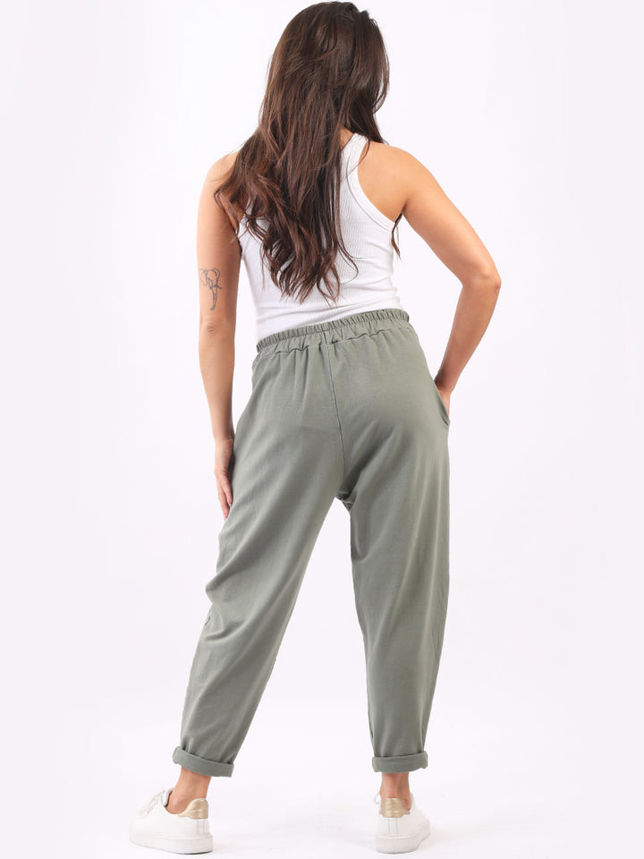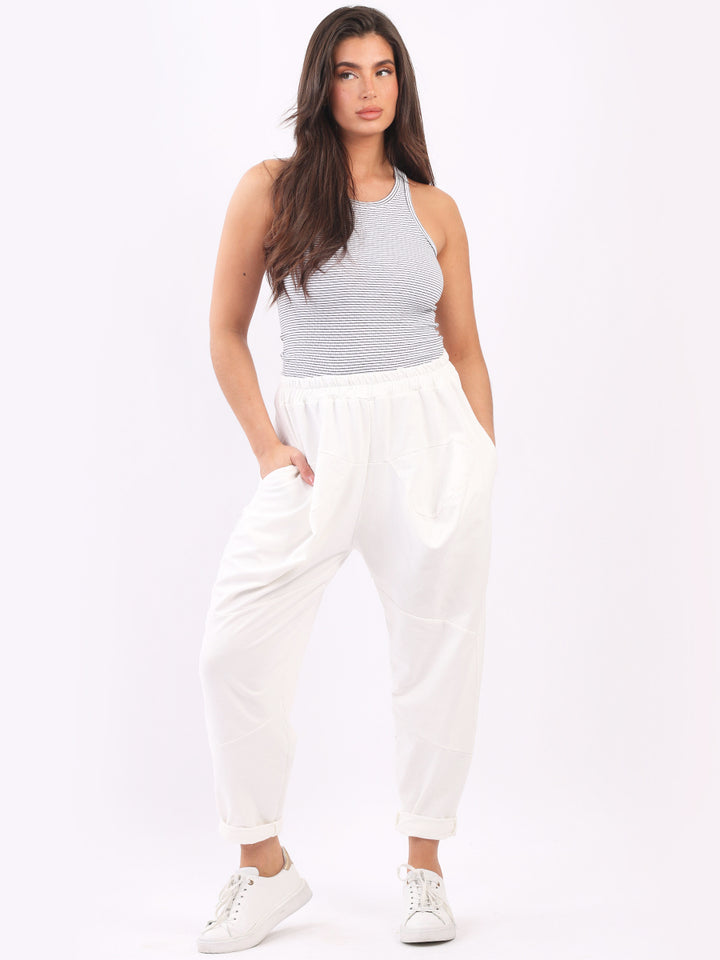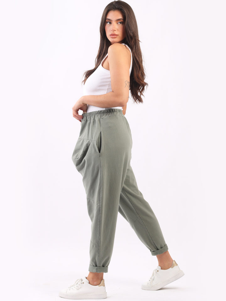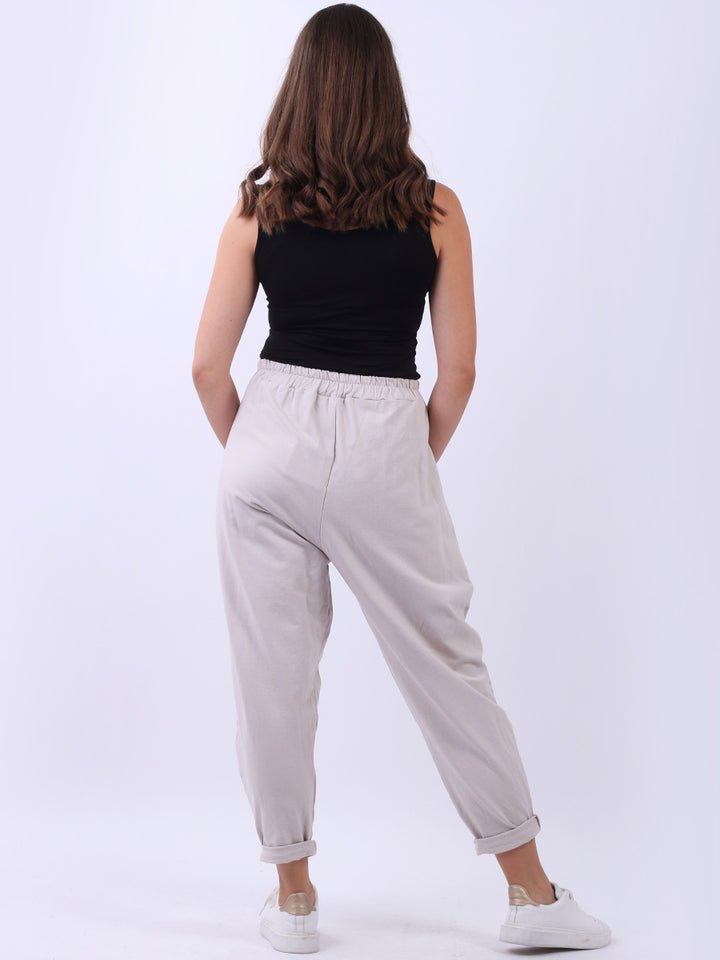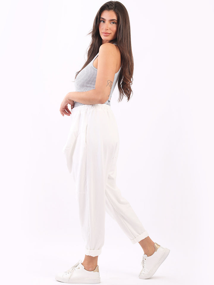 Casual and comfortable the features that are most sought after in the new world. Made in Italy with finest and skin friendly cotton with easy pull on style elastic waist, functional side pockets and basic classy colors with rolled up hem. Mix and match with floral top and sneakers.