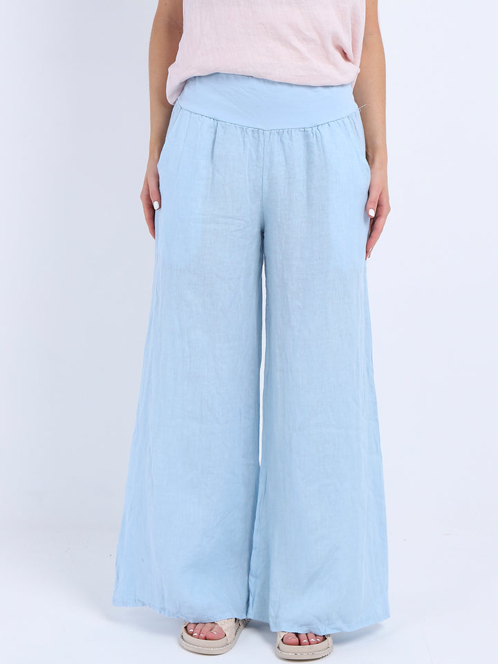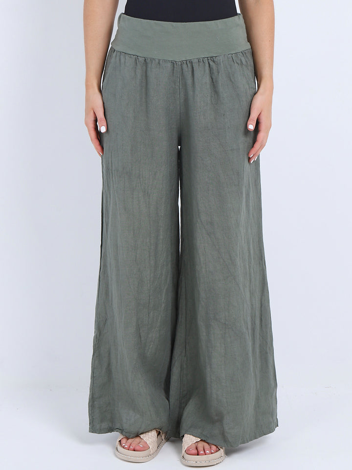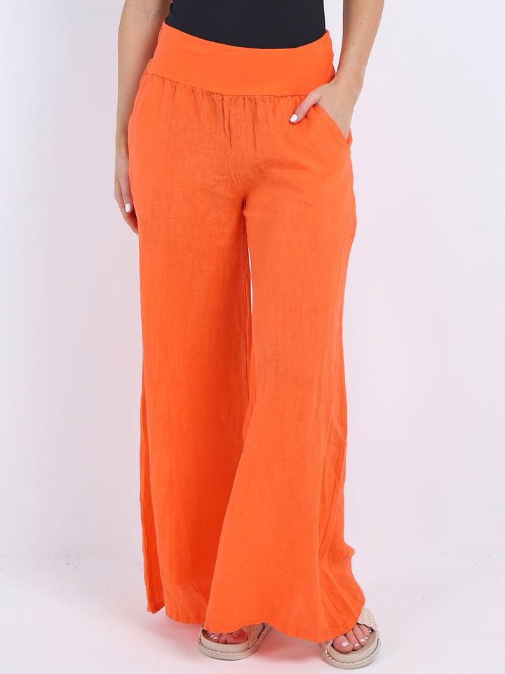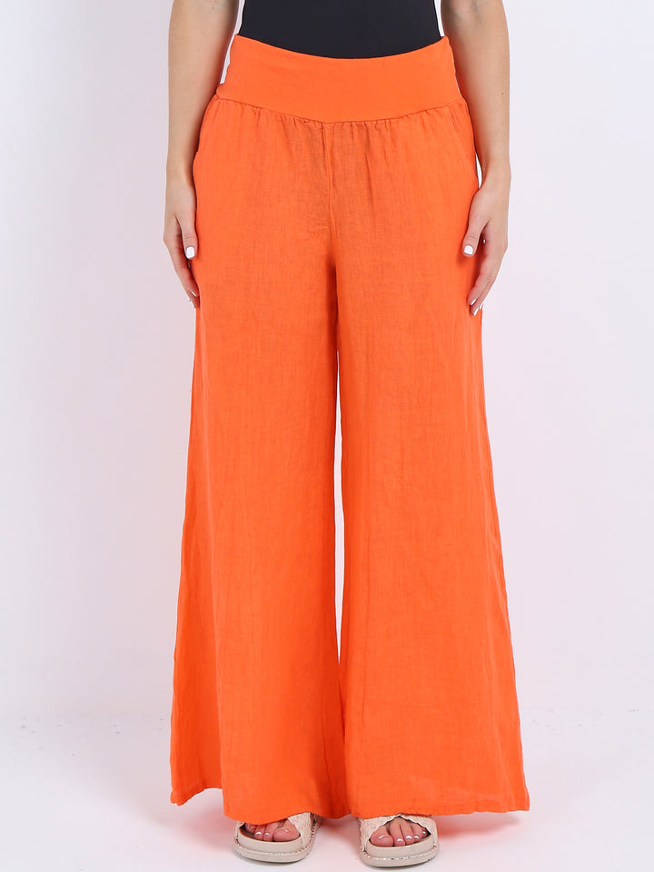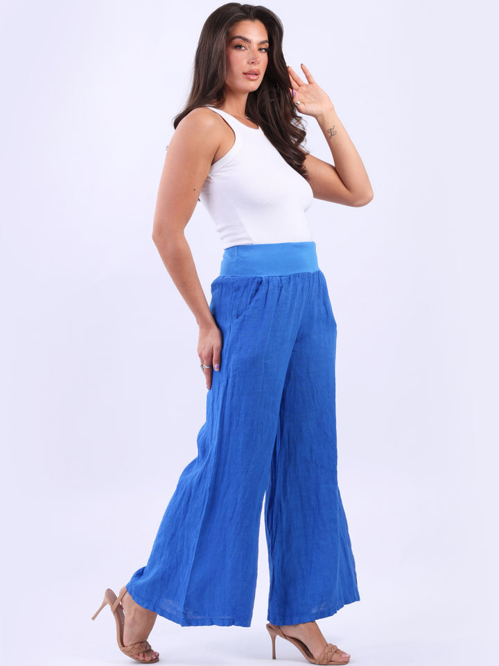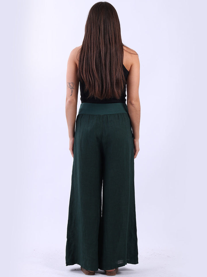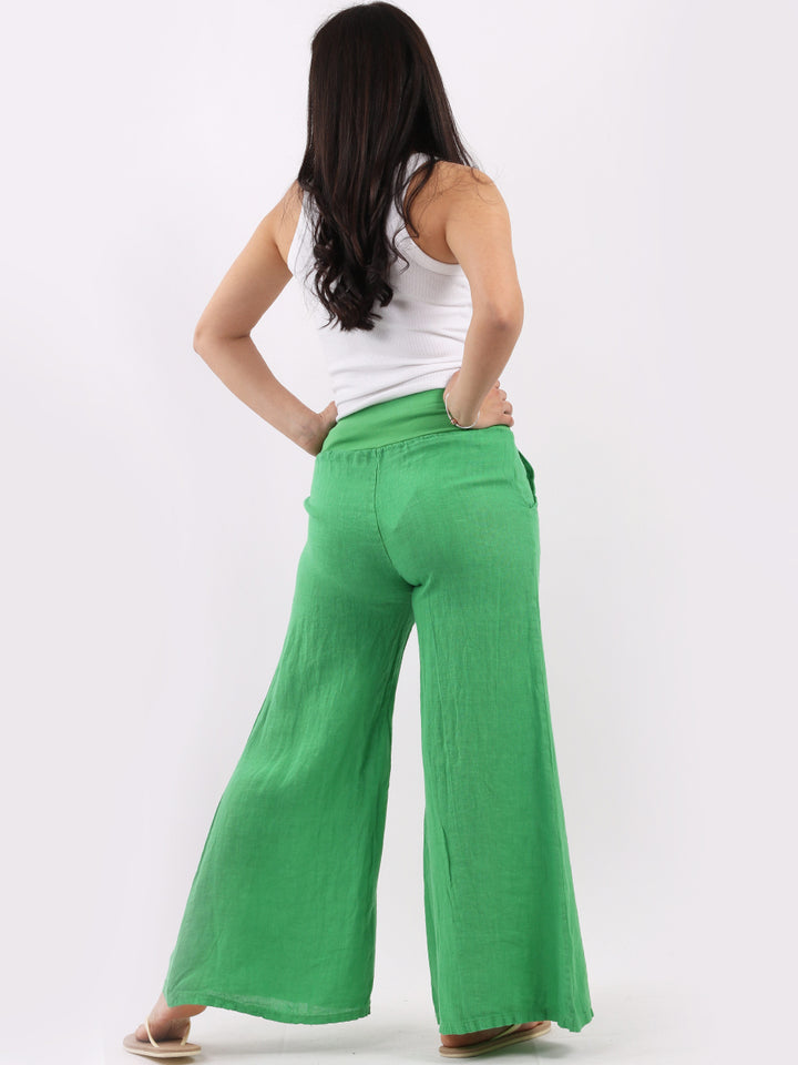 Italian Ladies Plain Linen Wide Leg Palazzo Trouser