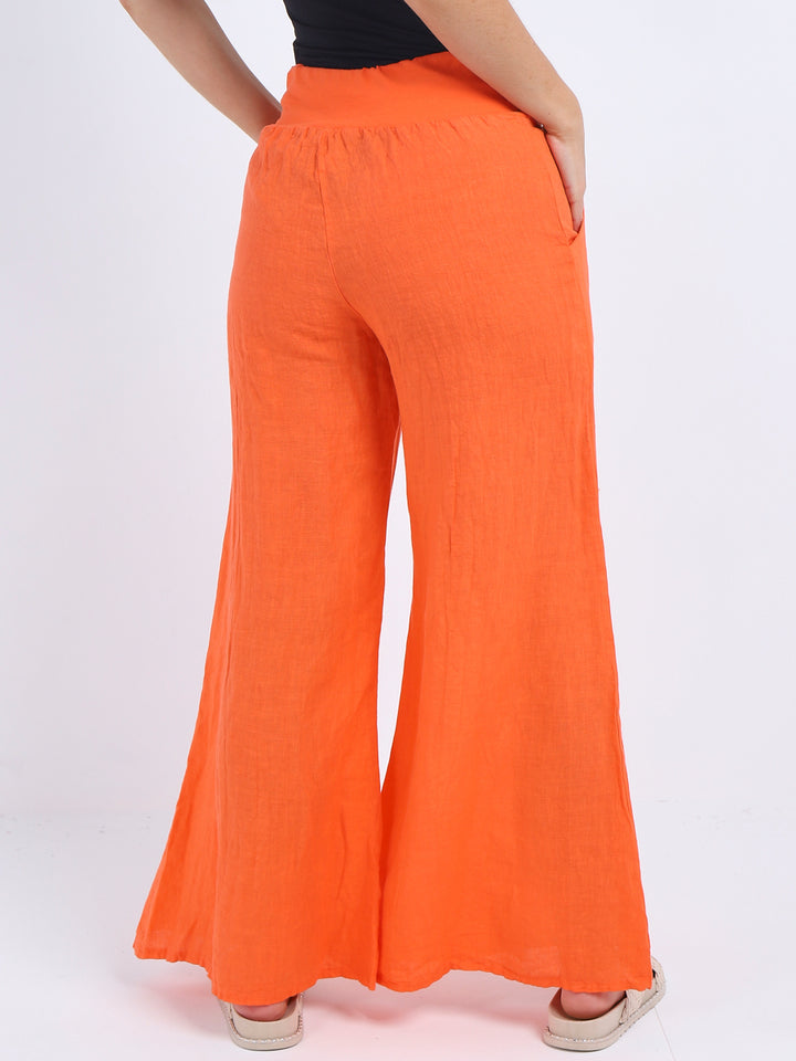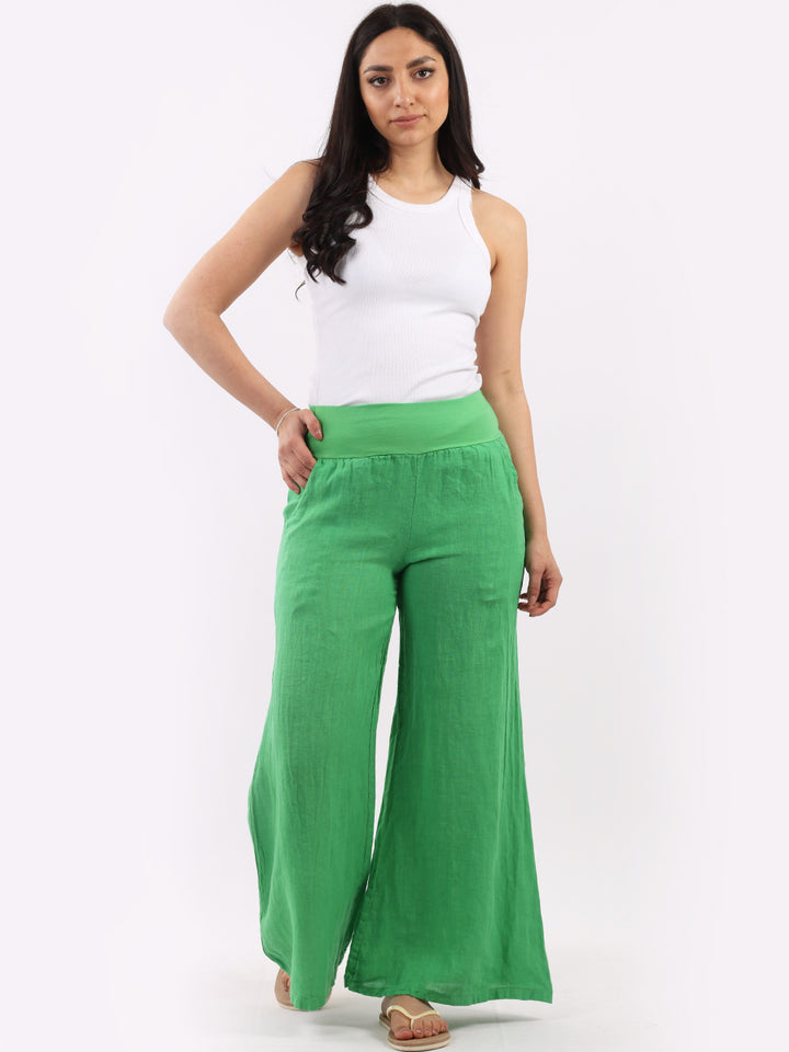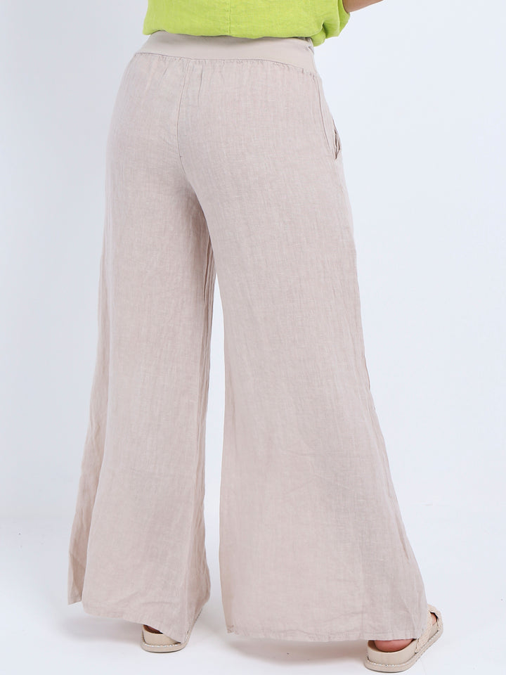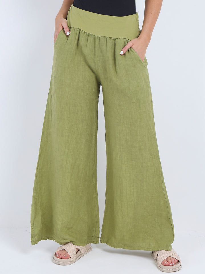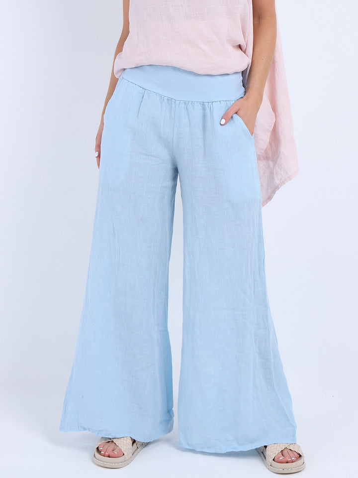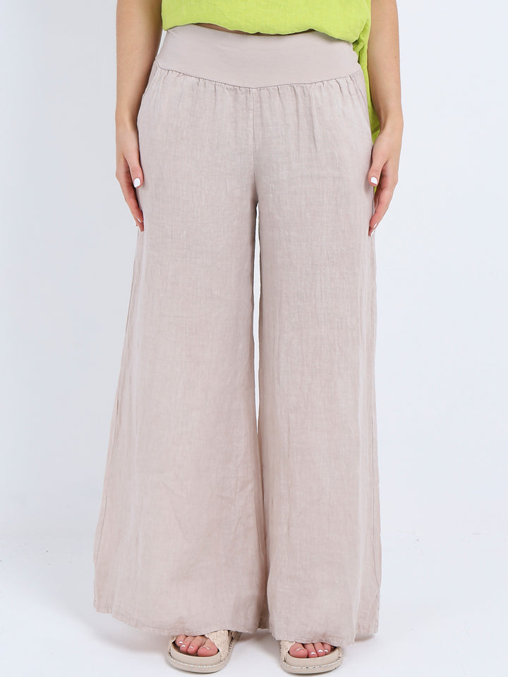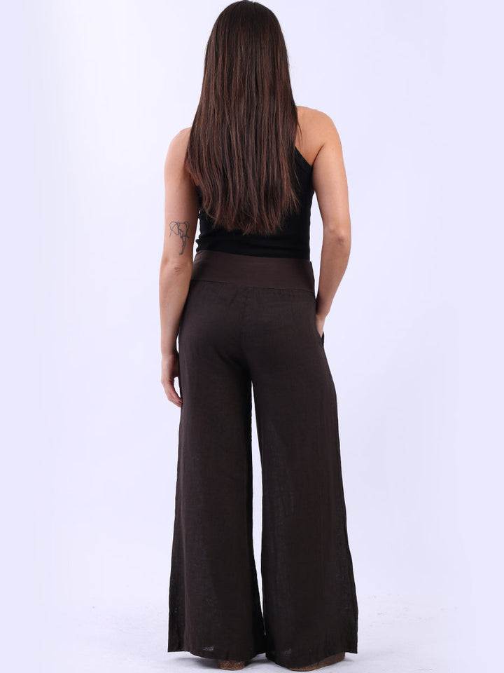 Italian Ladies Plain Linen Wide Leg Palazzo Trouser