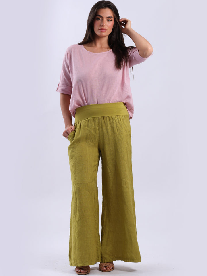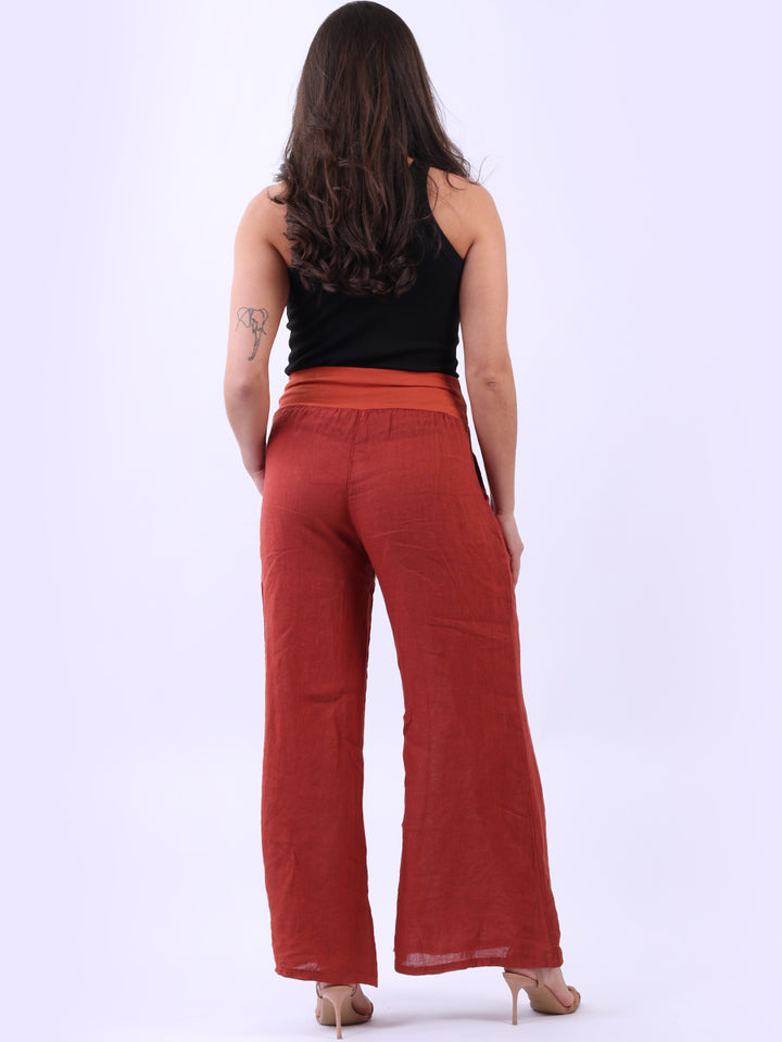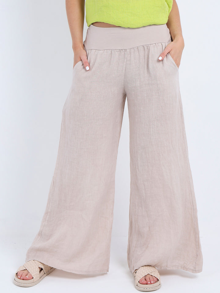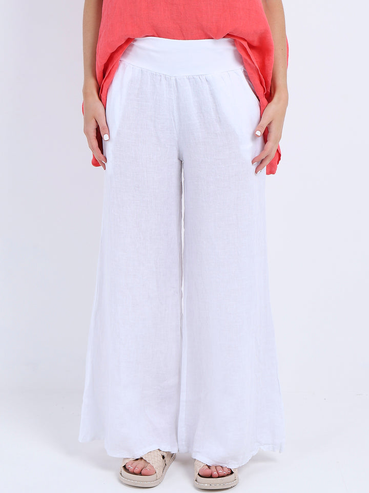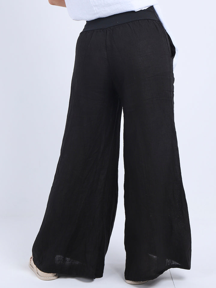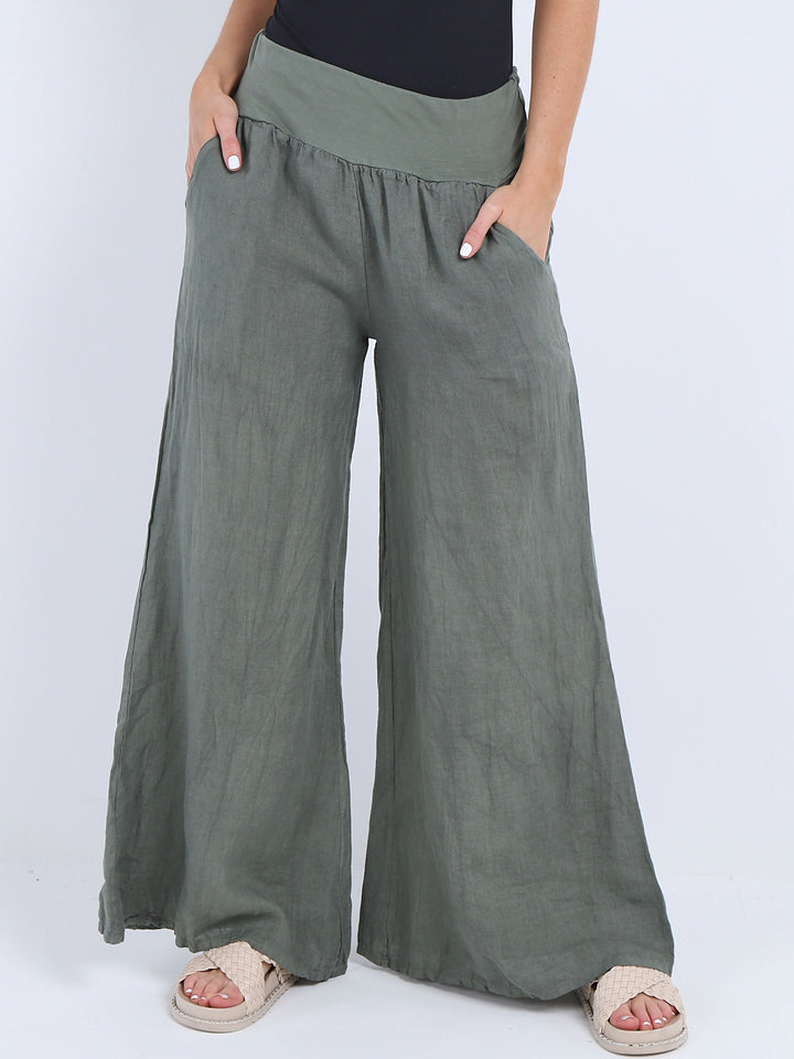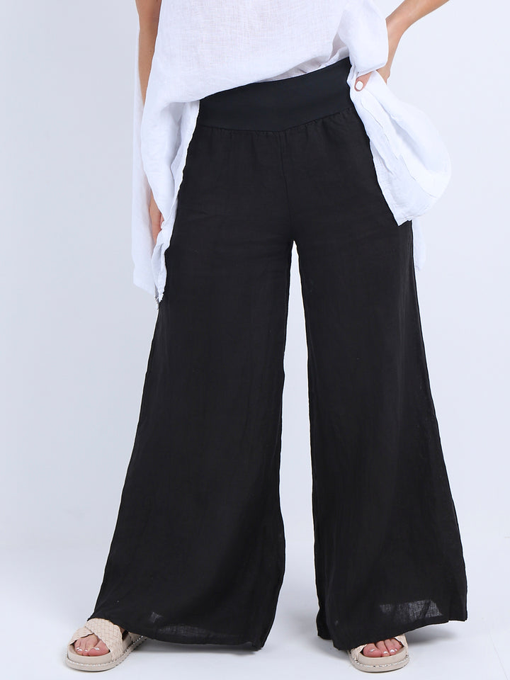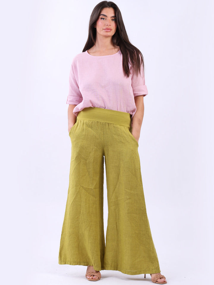 Italian Ladies Plain Linen Wide Leg Palazzo Trouser