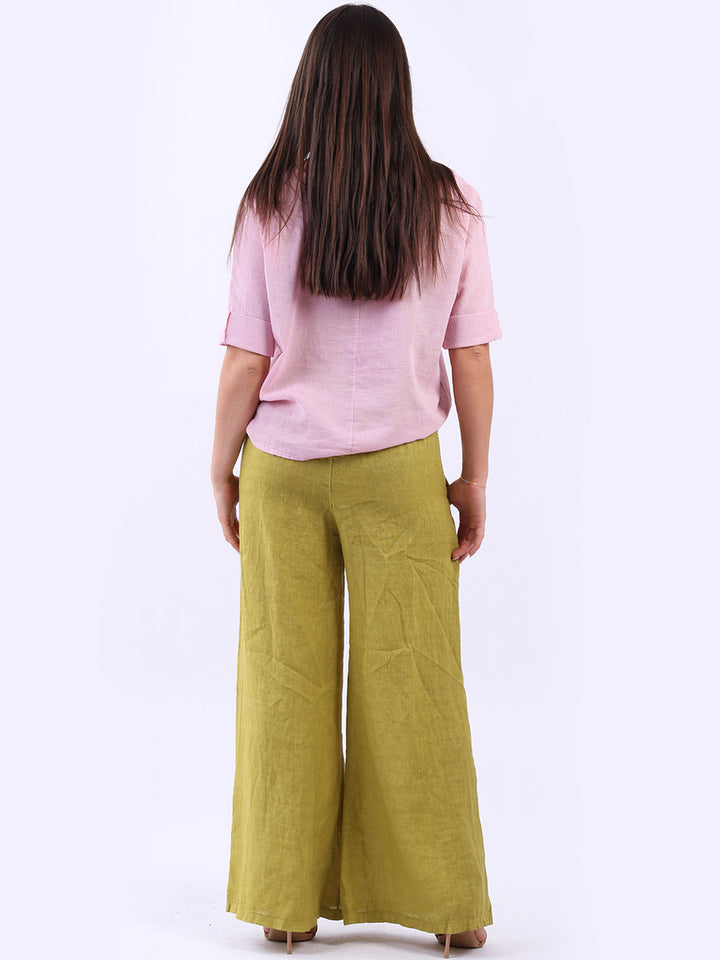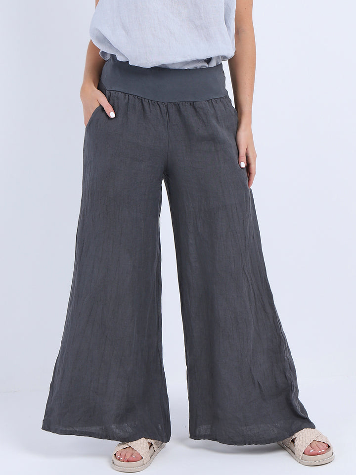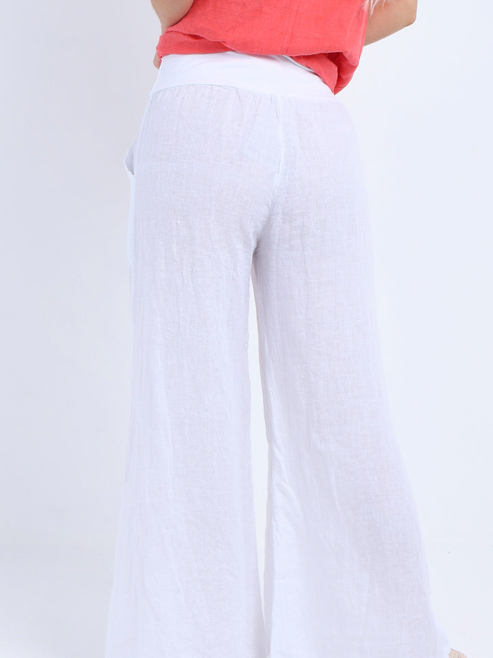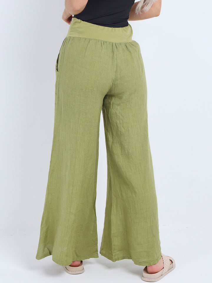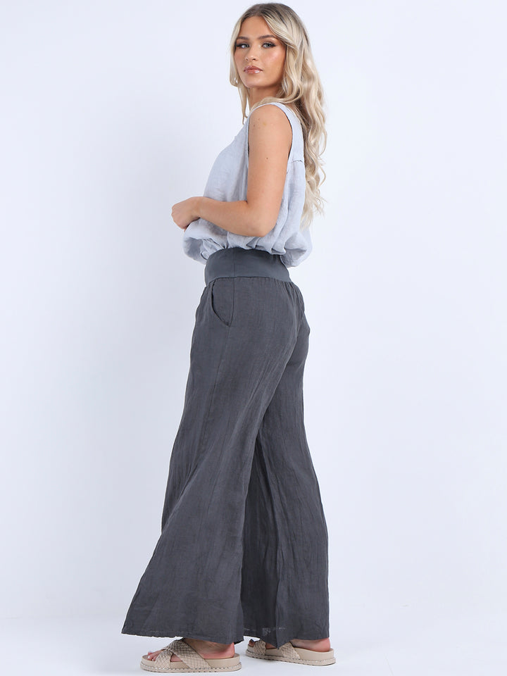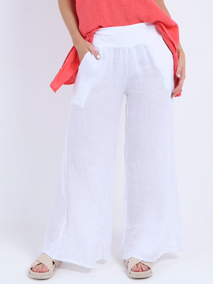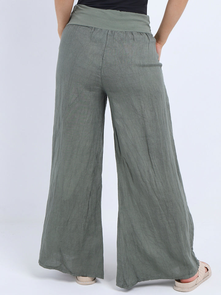 Italian Ladies Plain Linen Wide Leg Palazzo Trouser