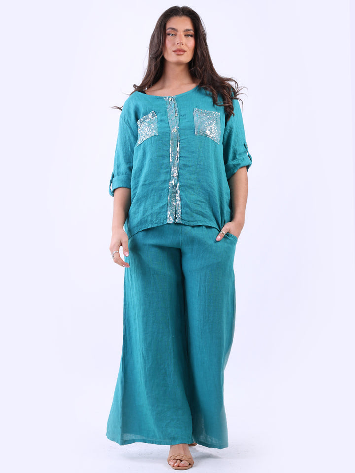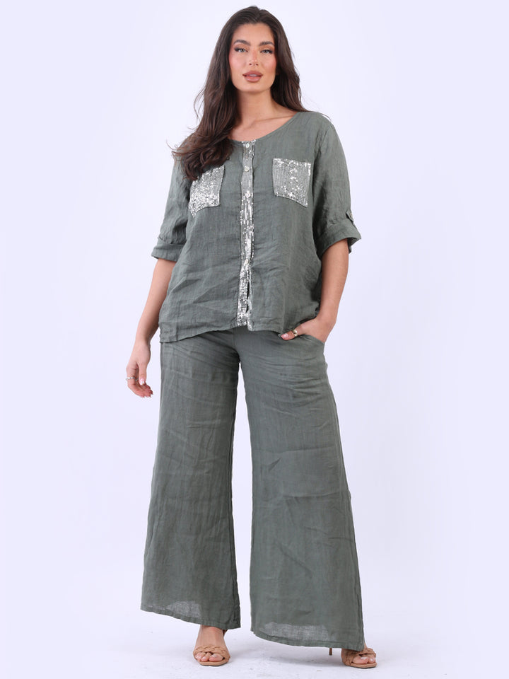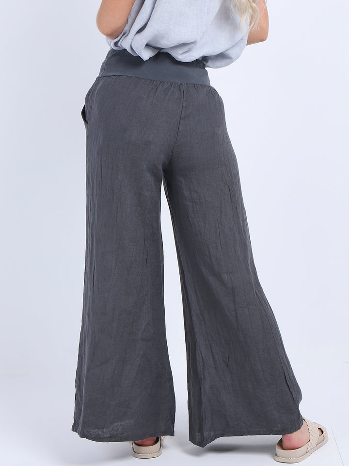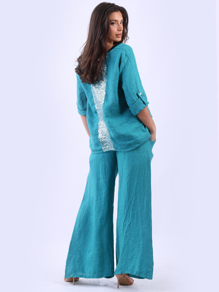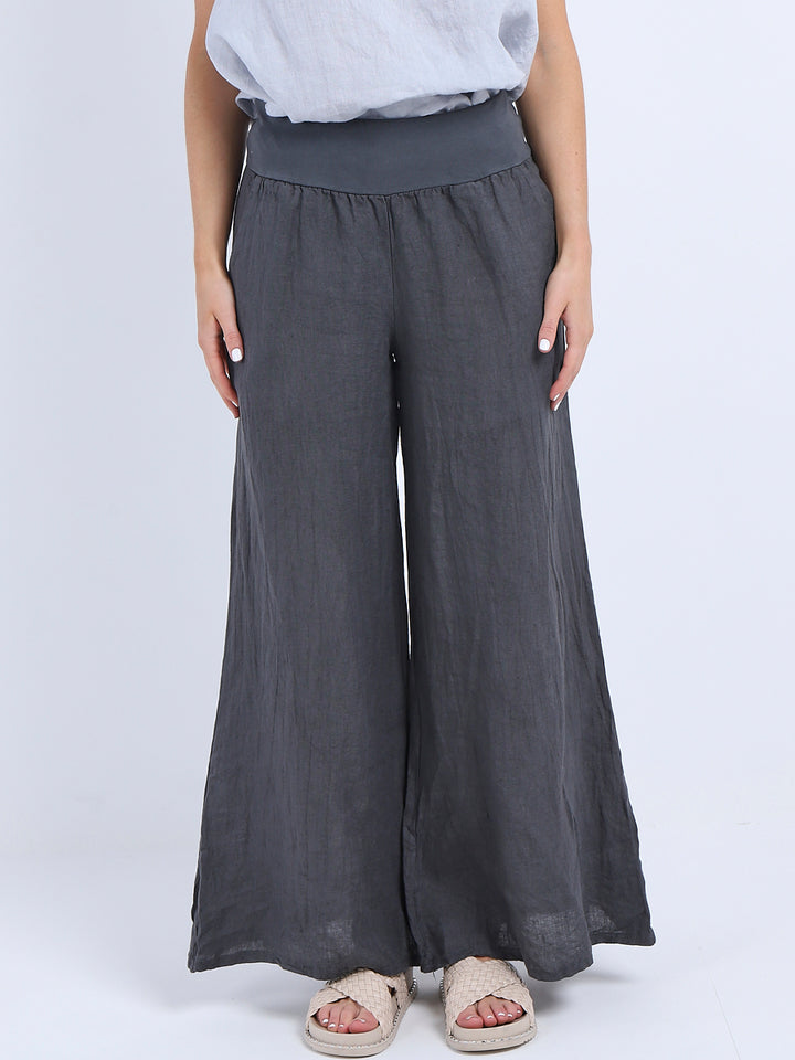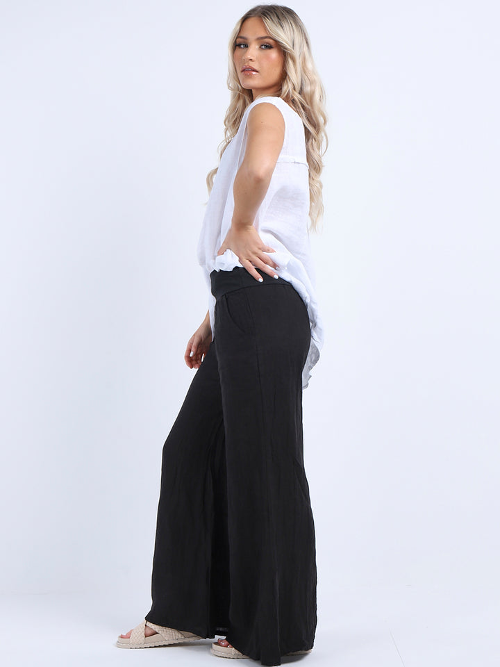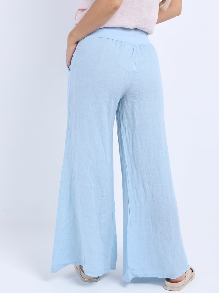 Italian Ladies Plain Linen Wide Leg Palazzo Trouser