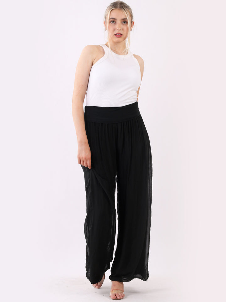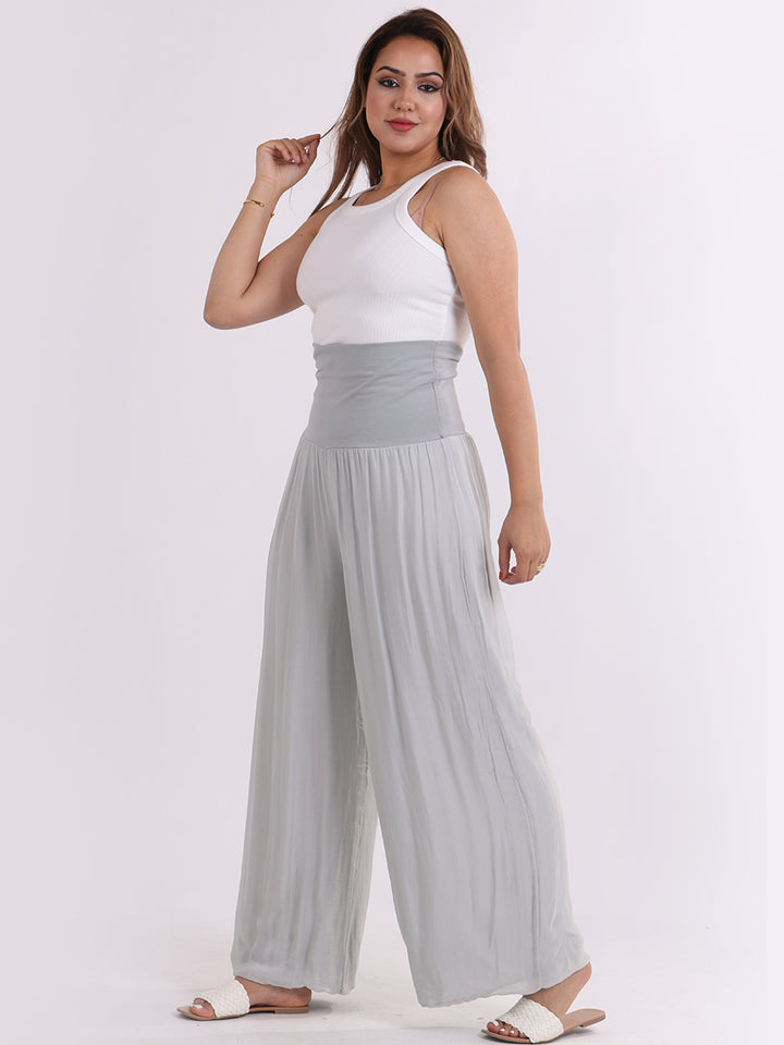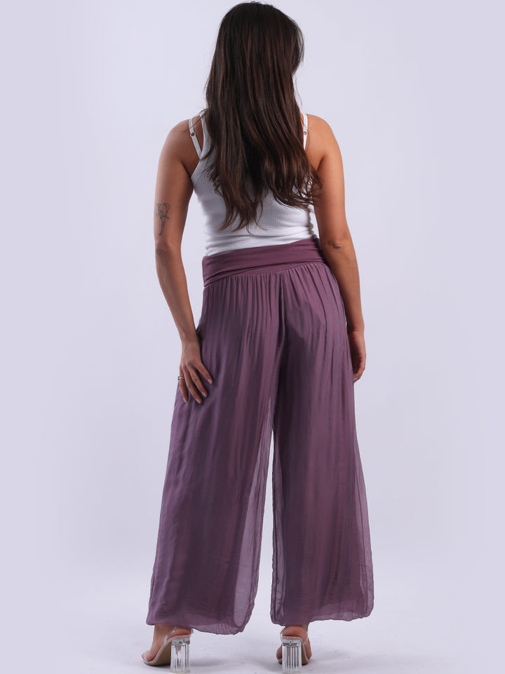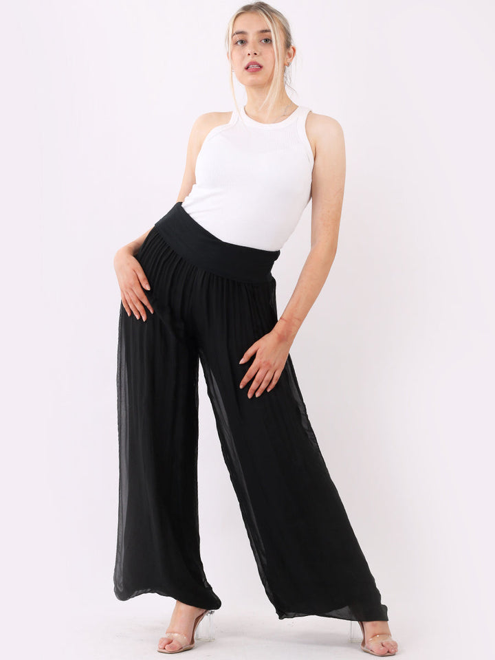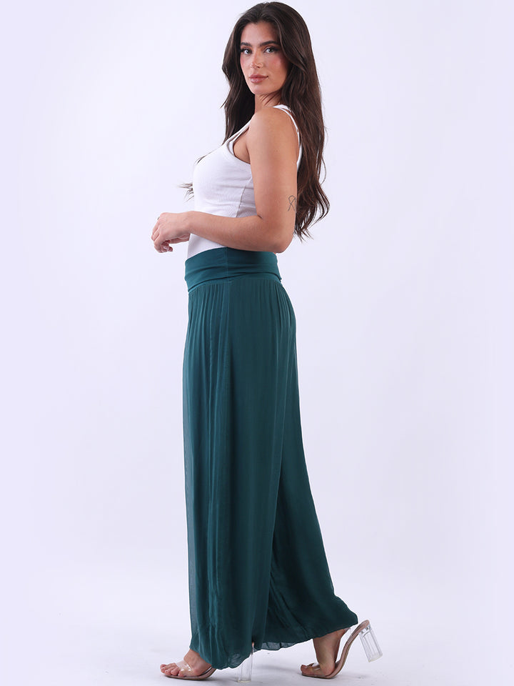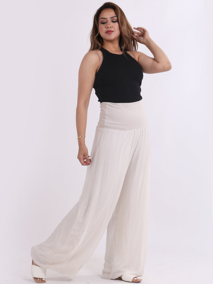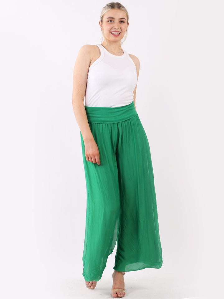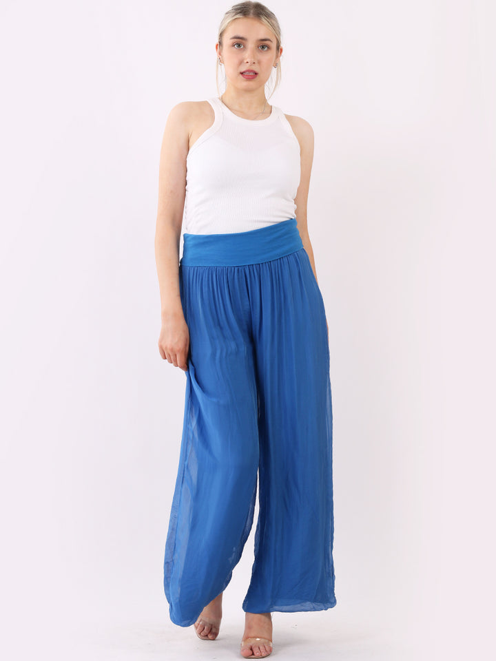 Italian Ladies Plain Wide Leg Silk Palazzo Trouser