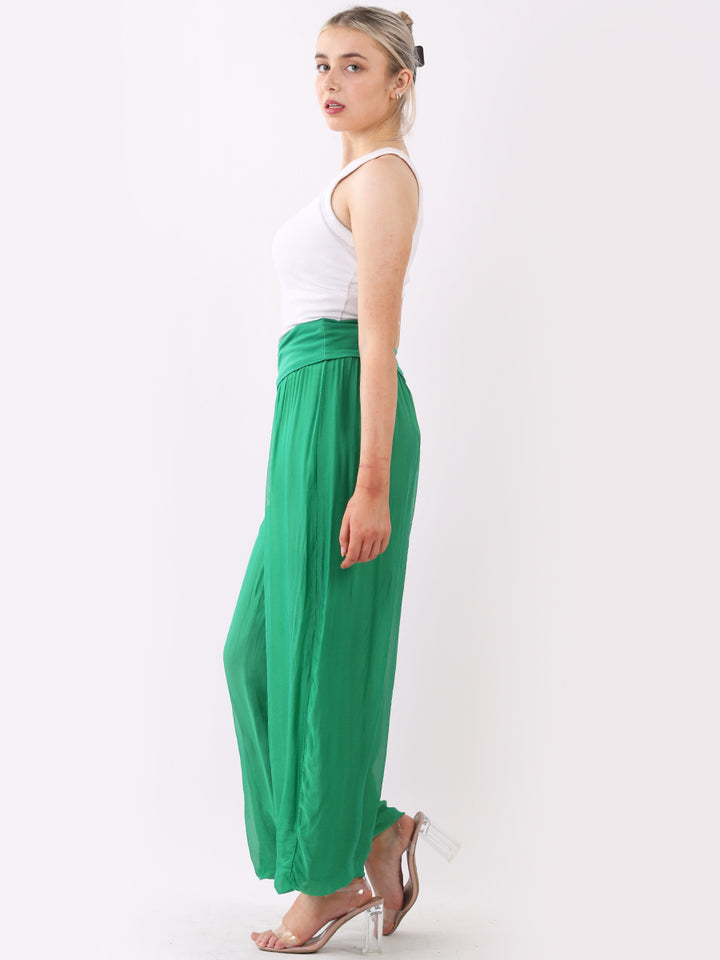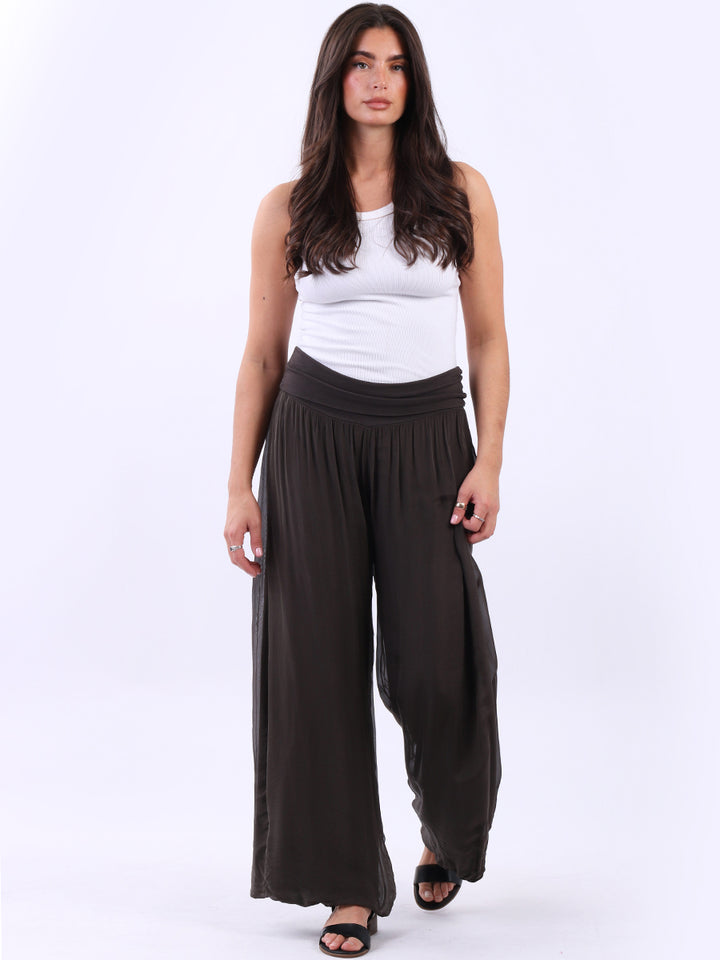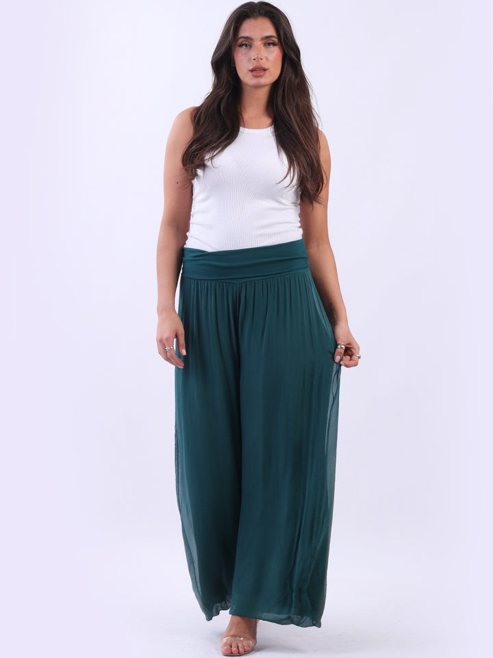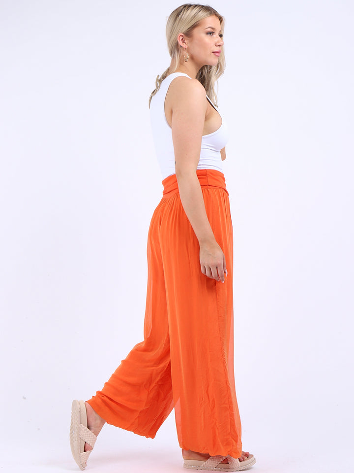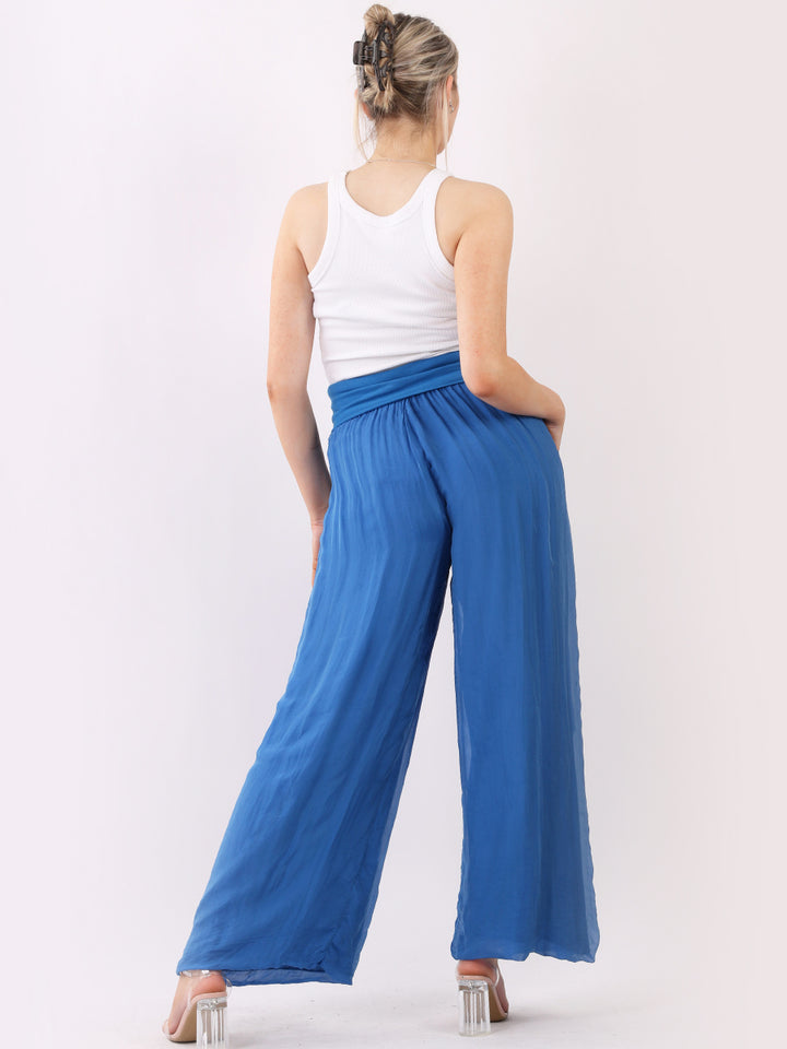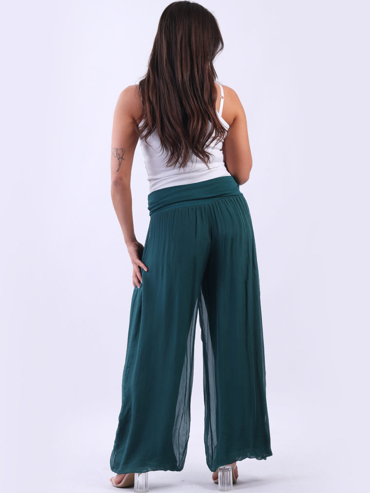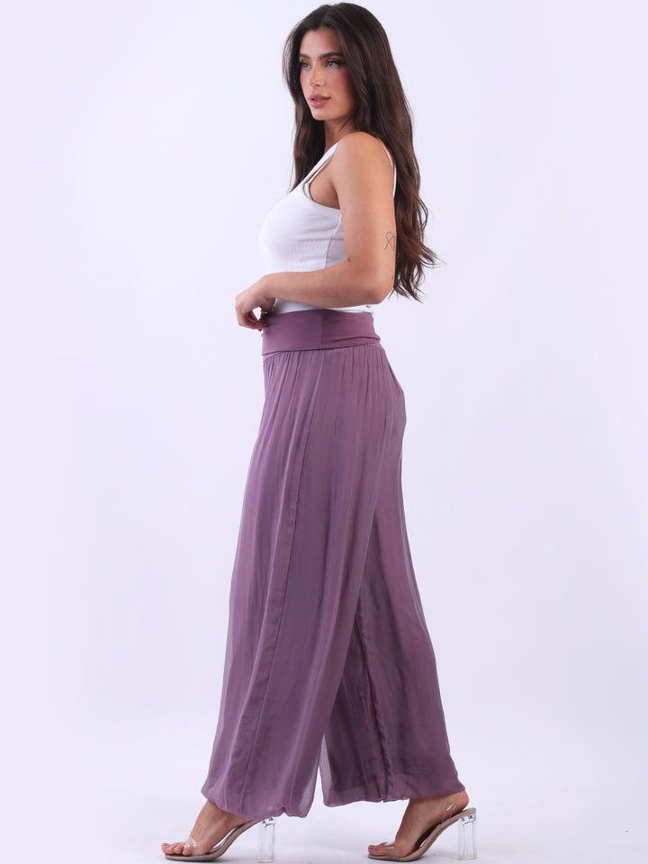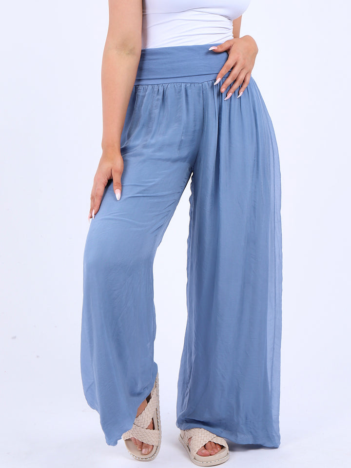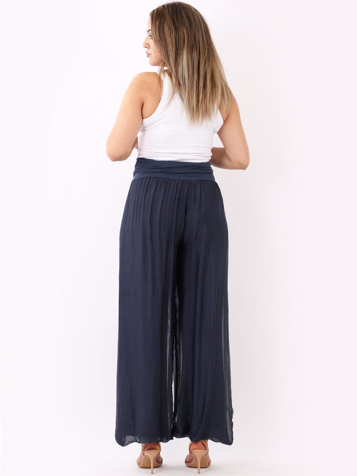 Italian Ladies Plain Wide Leg Silk Palazzo Trouser