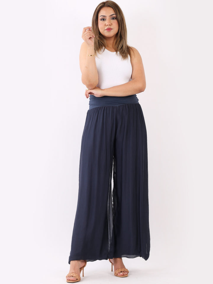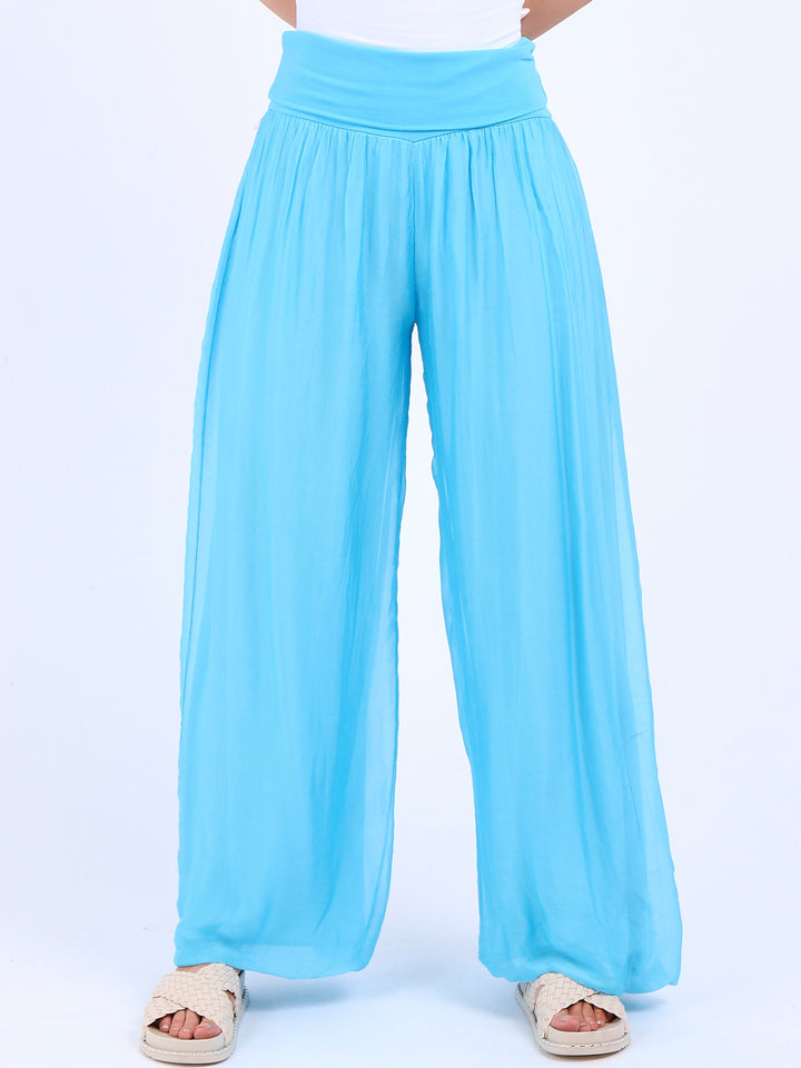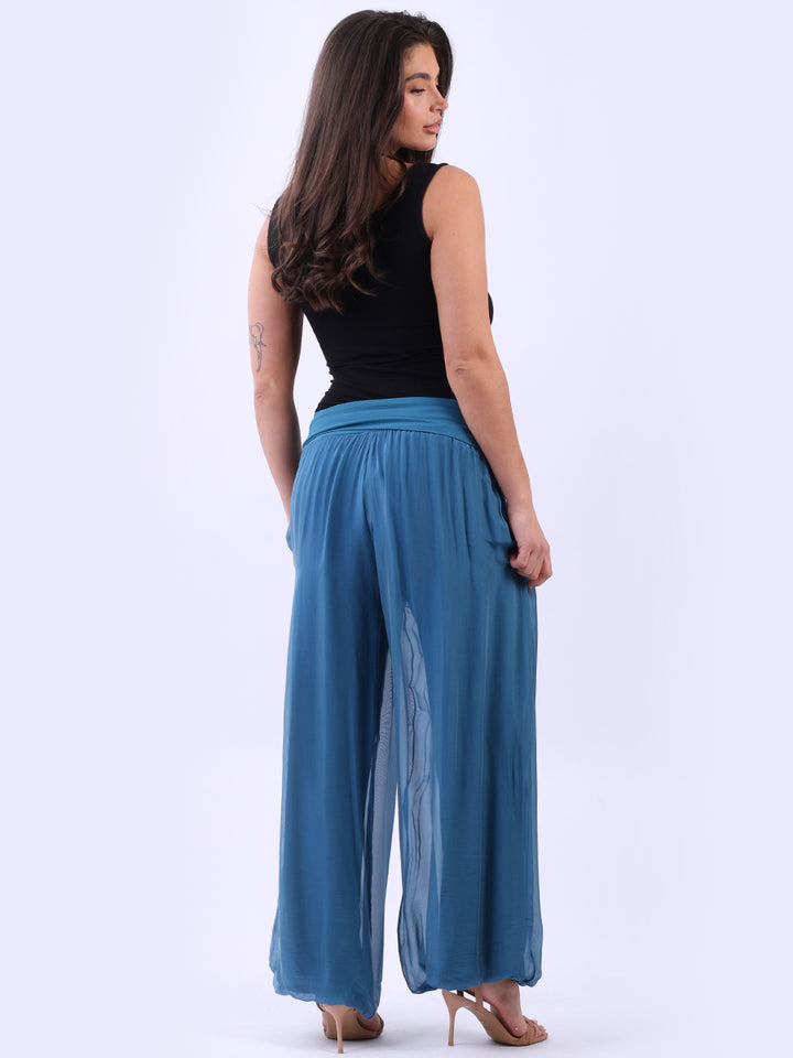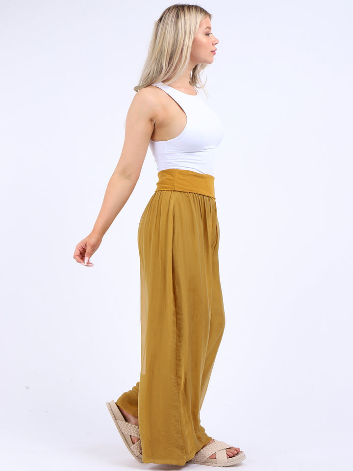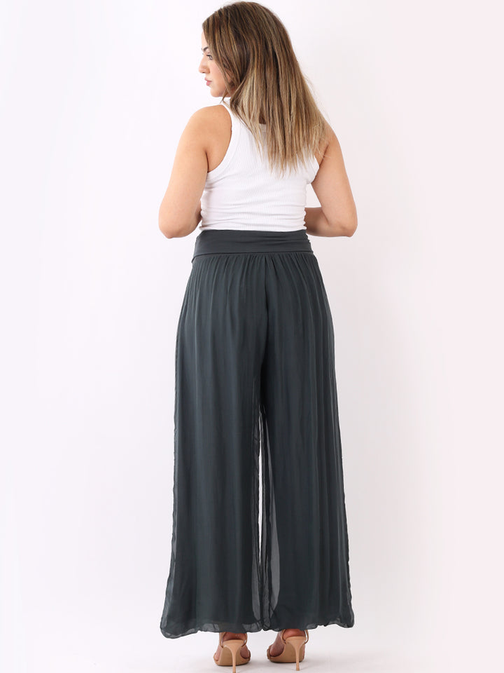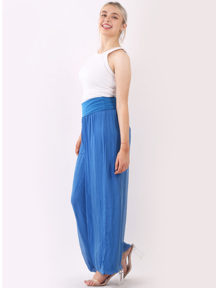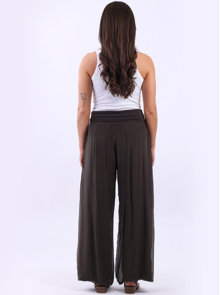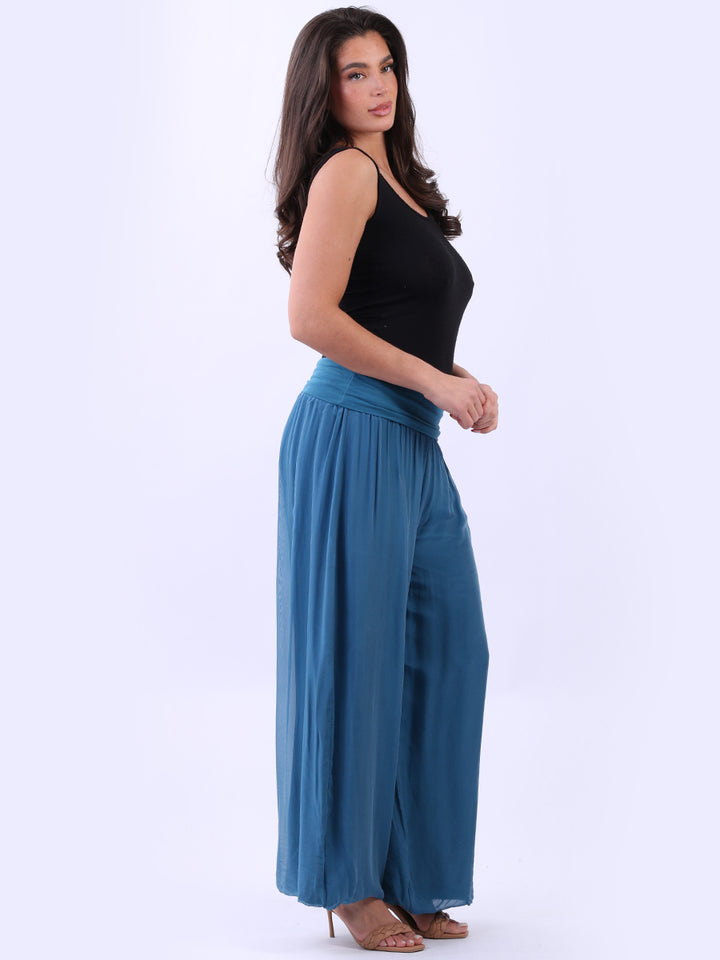 Italian Ladies Plain Wide Leg Silk Palazzo Trouser