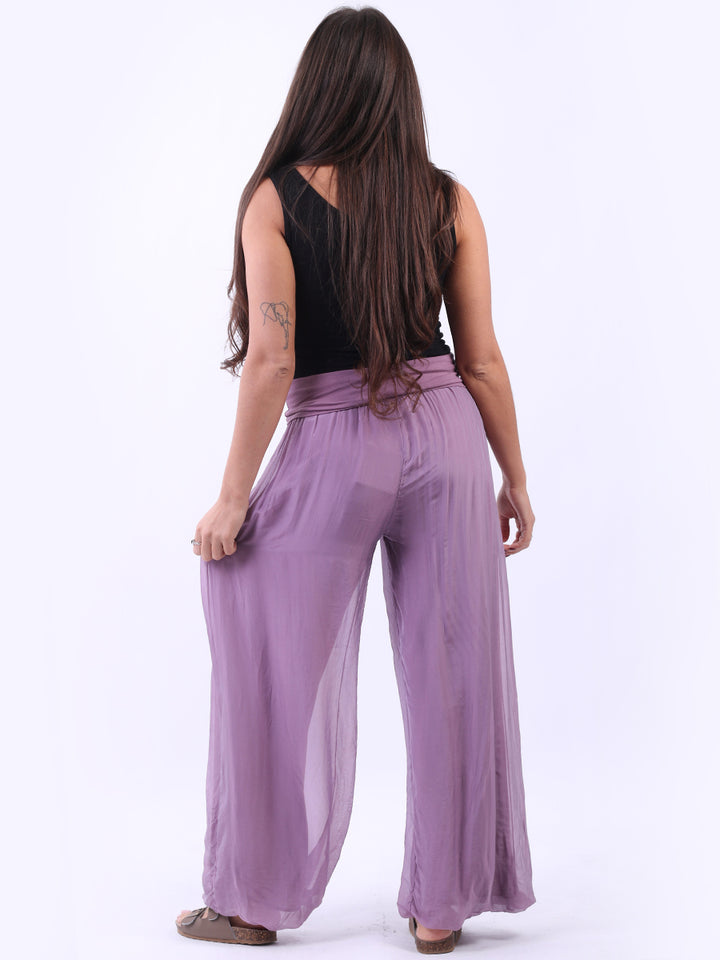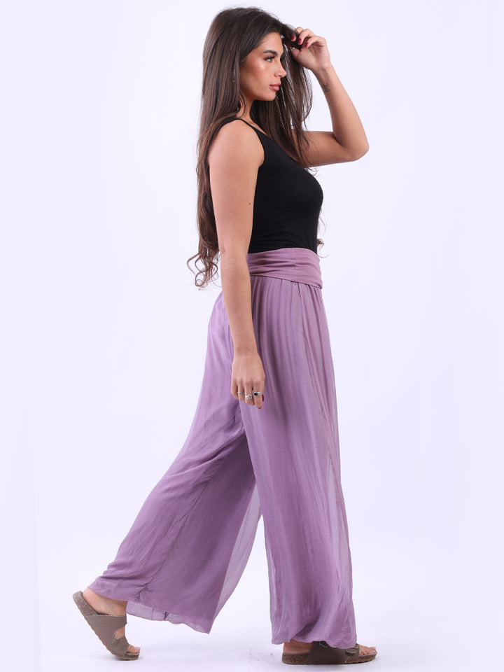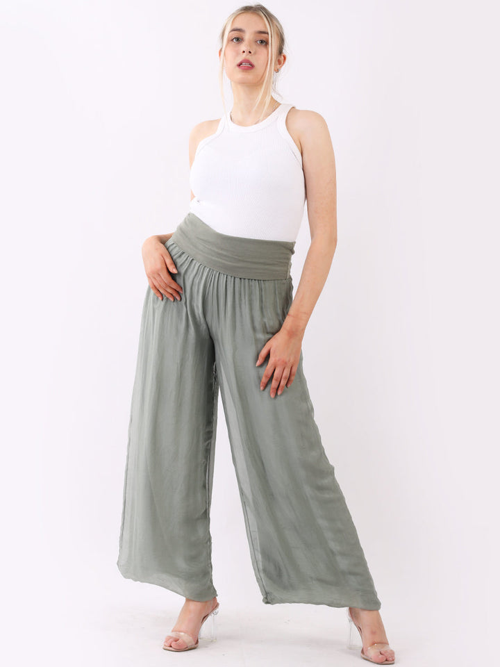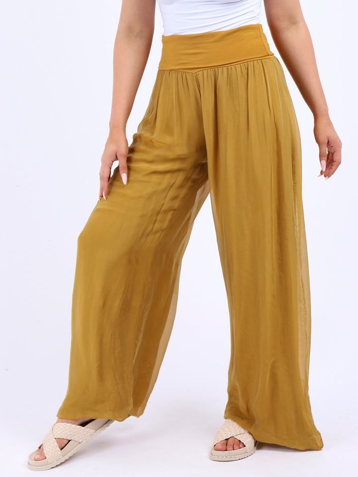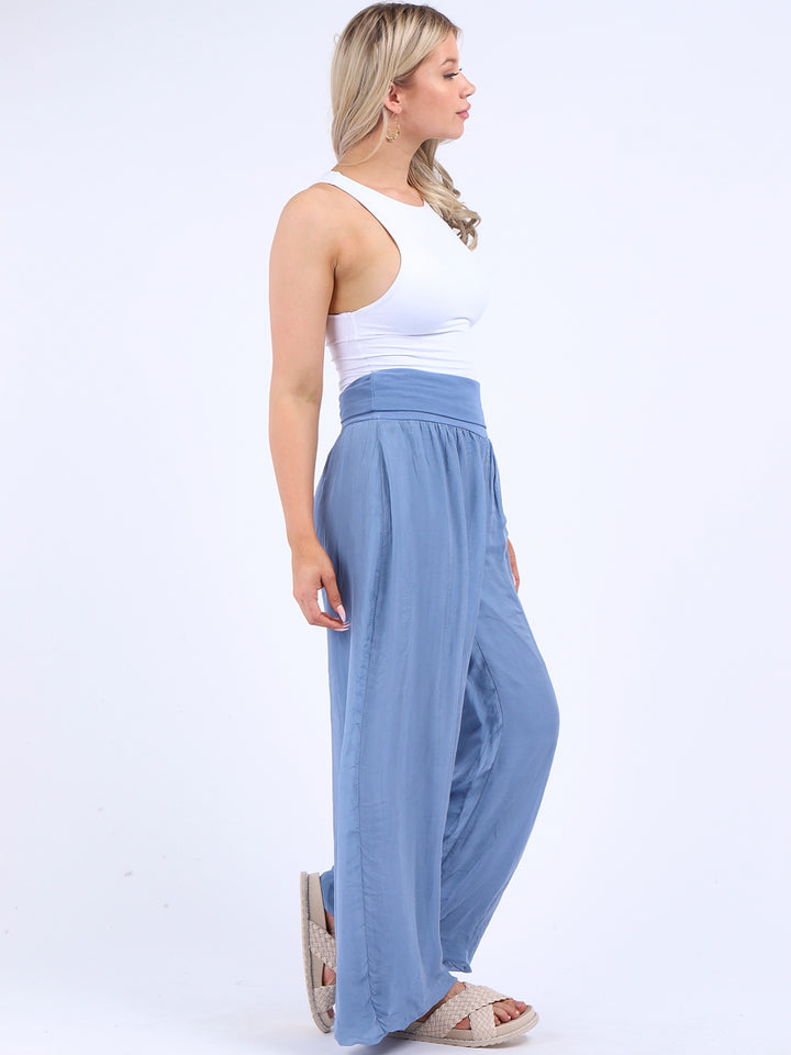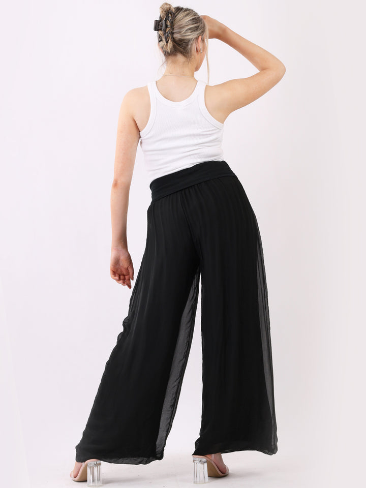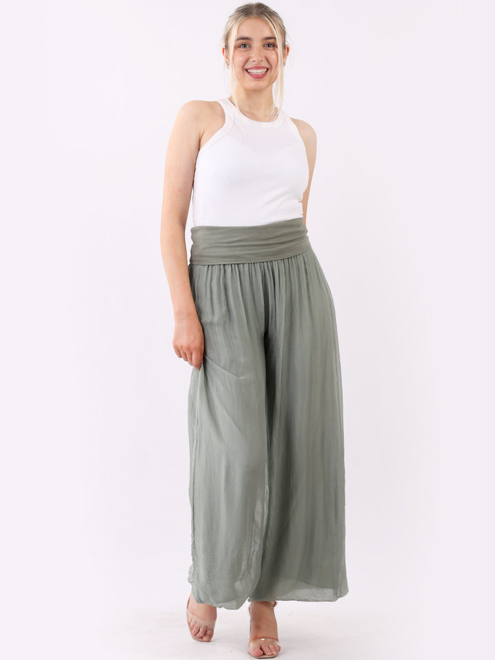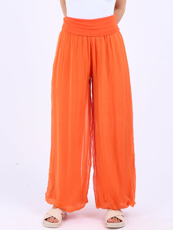 Italian Ladies Plain Wide Leg Silk Palazzo Trouser