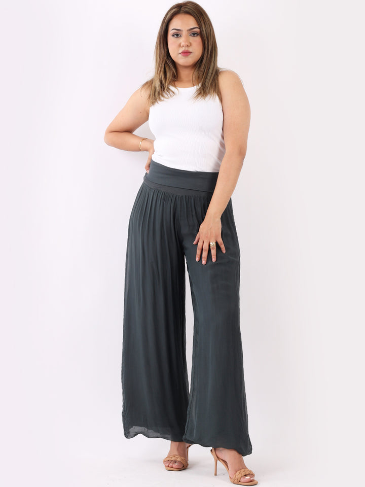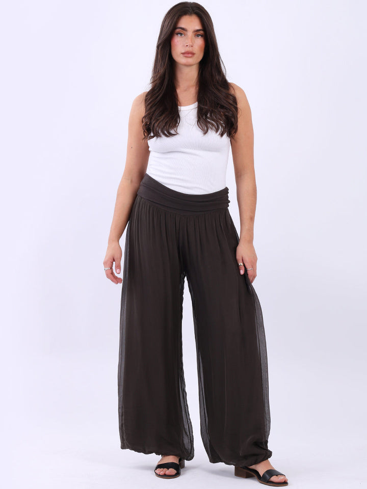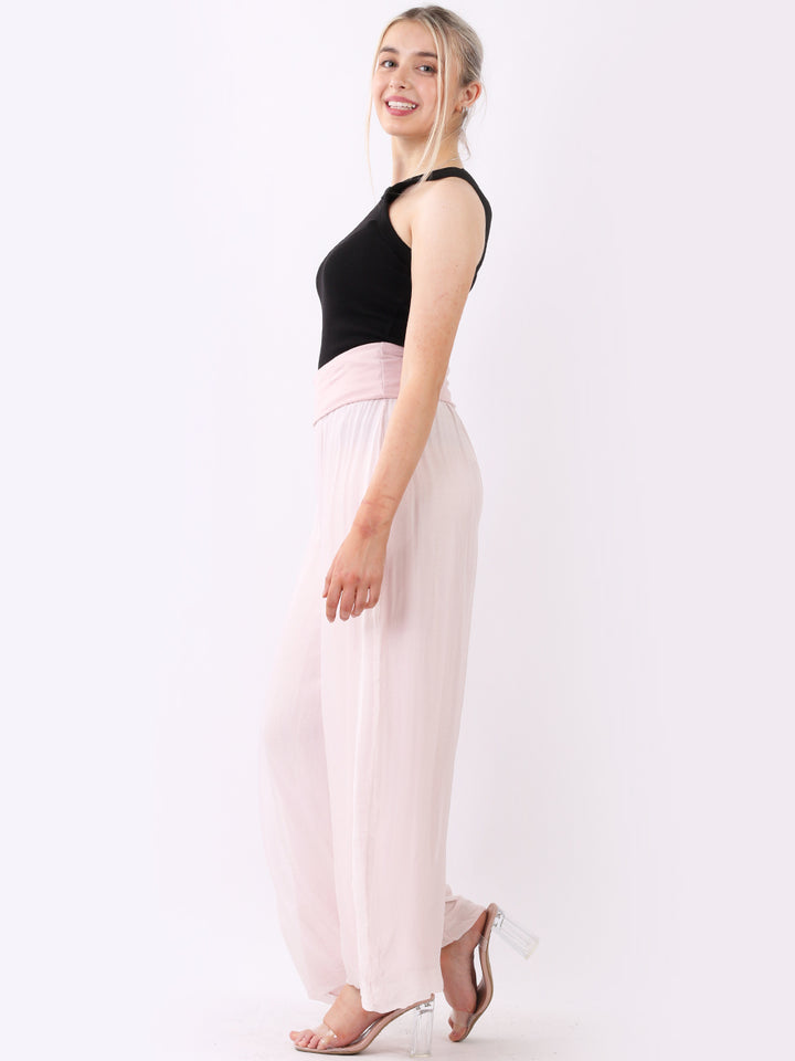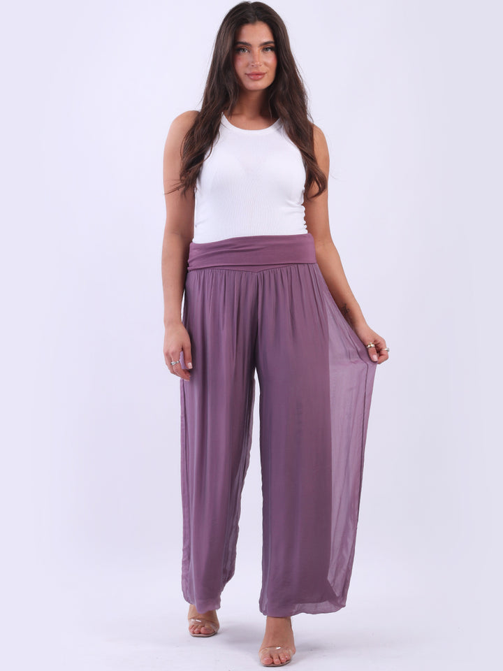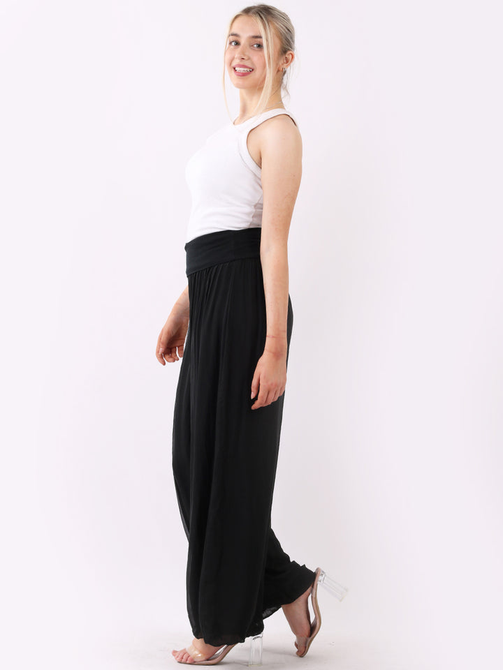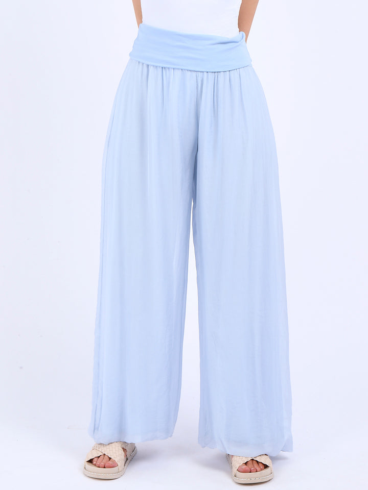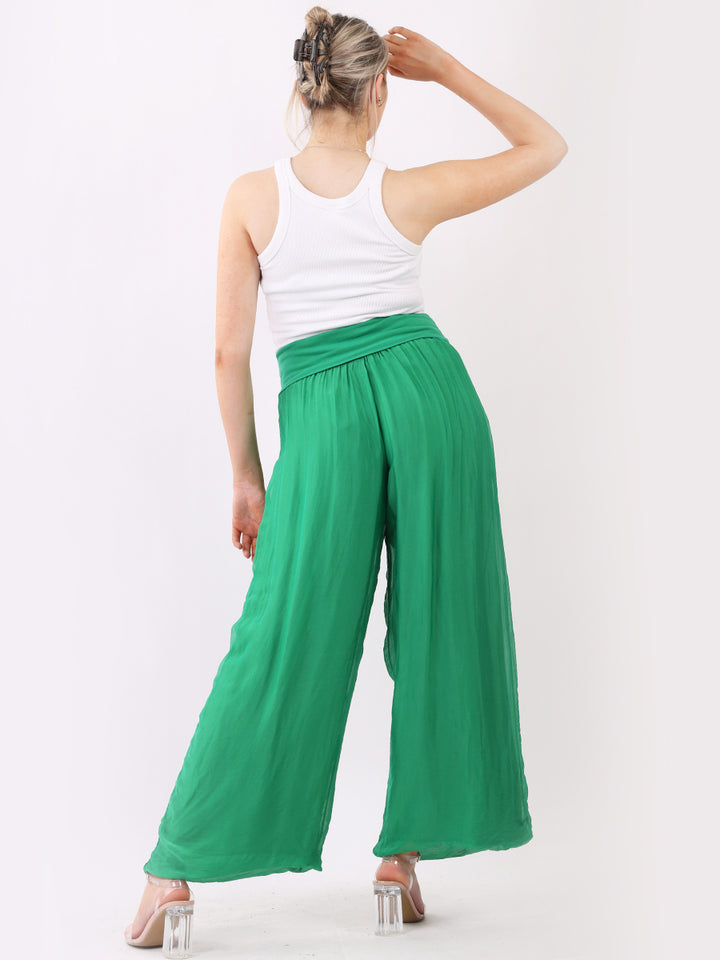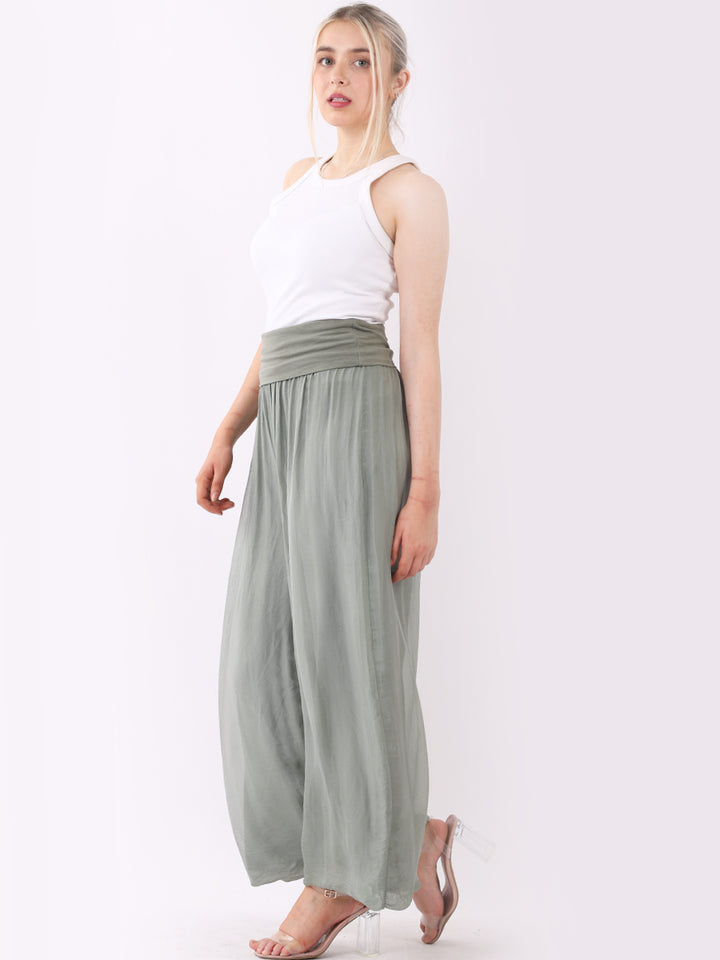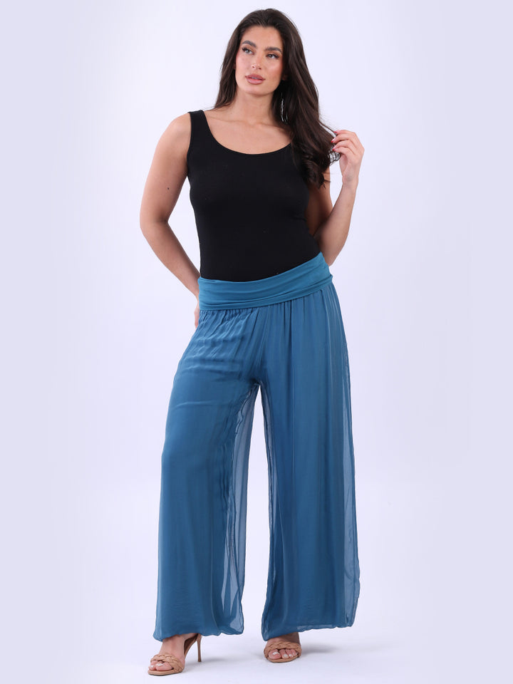 Italian Ladies Plain Wide Leg Silk Palazzo Trouser