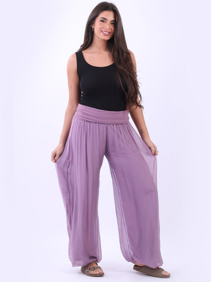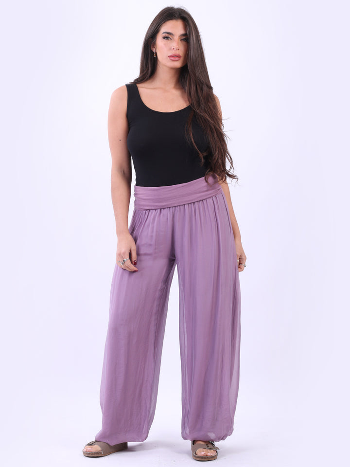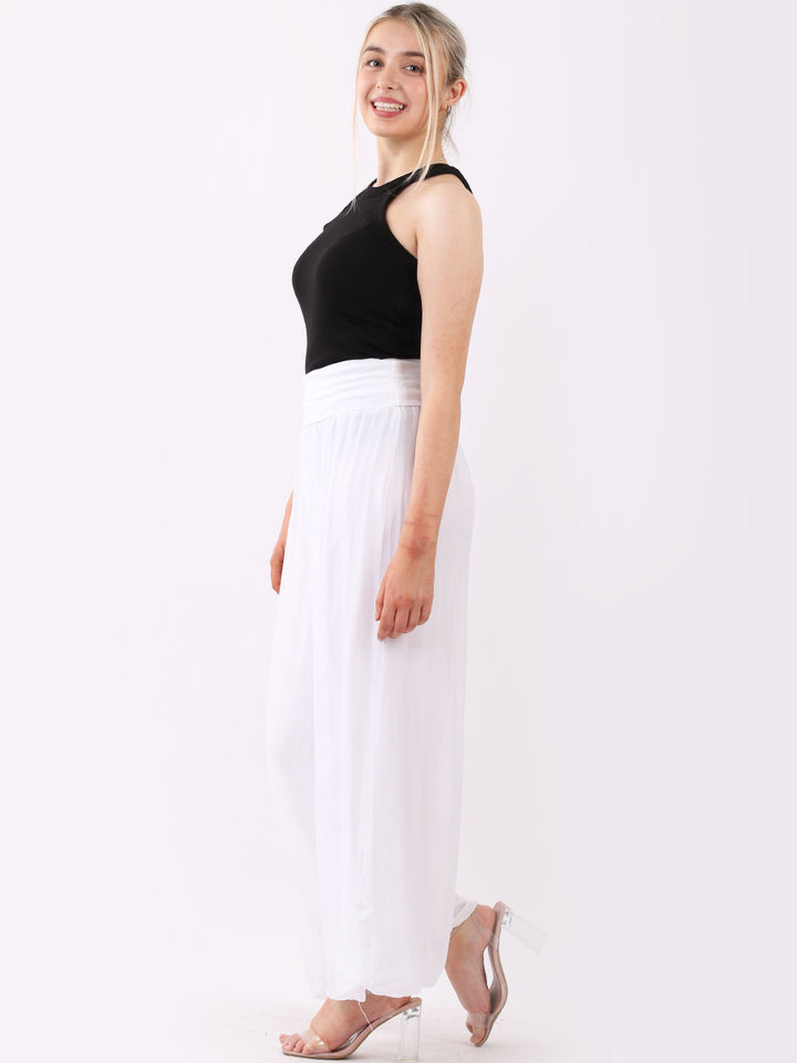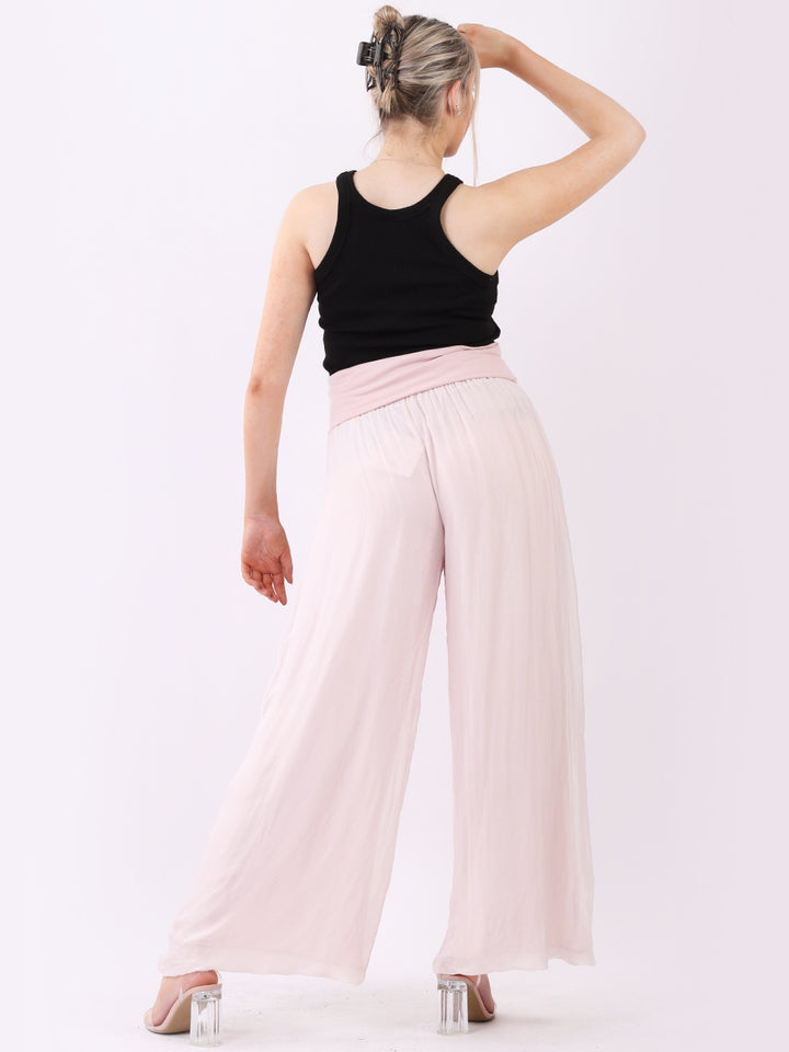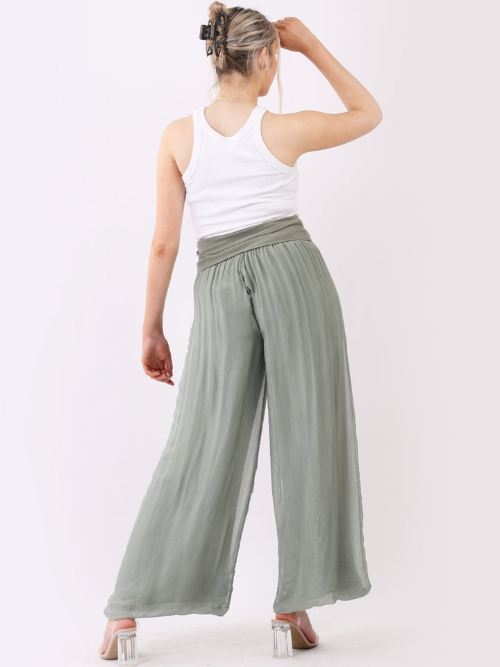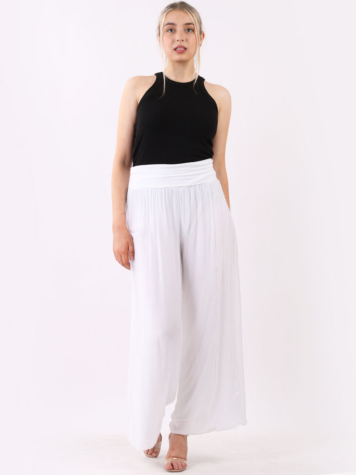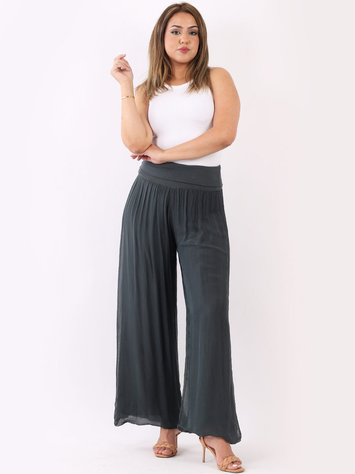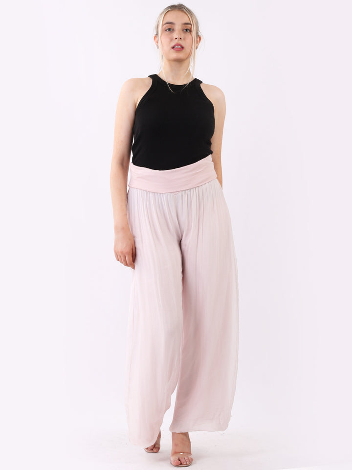 Italian Ladies Plain Wide Leg Silk Palazzo Trouser