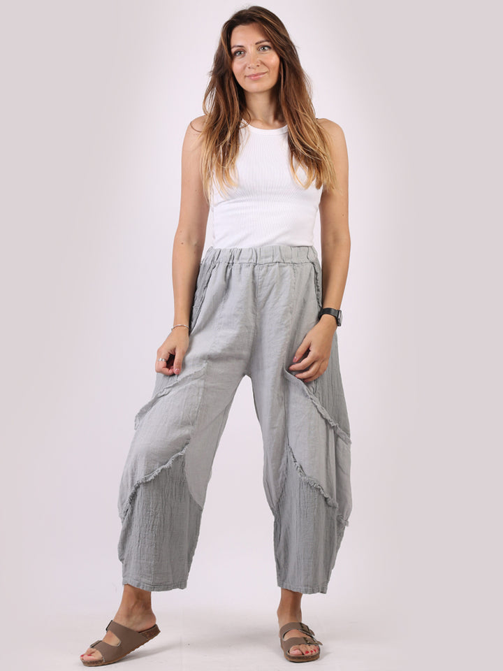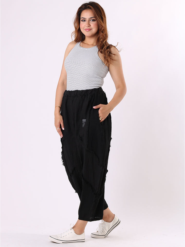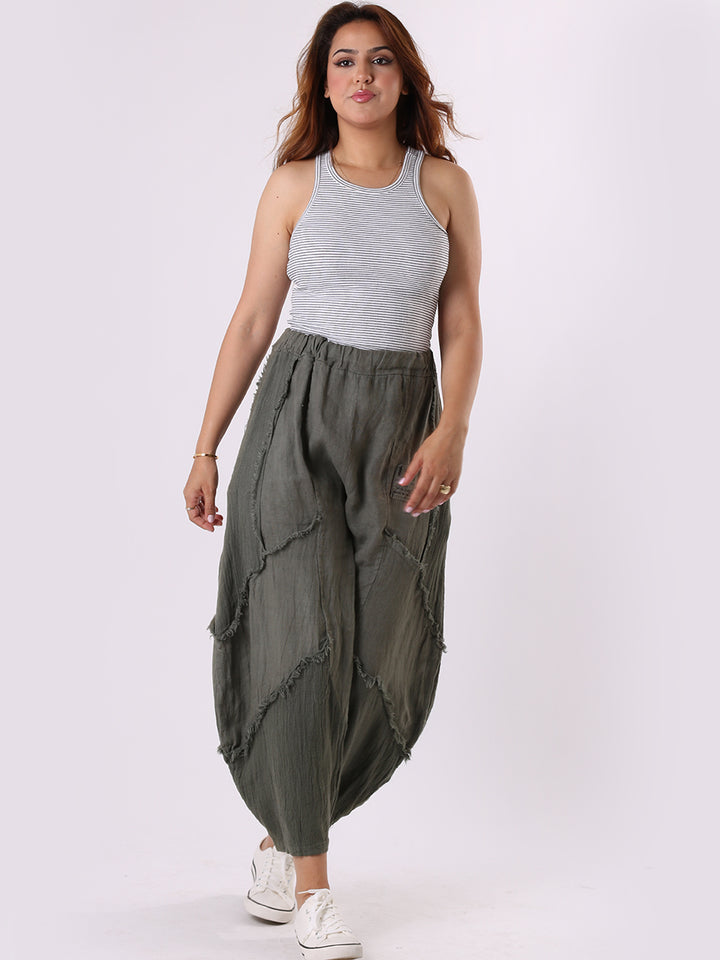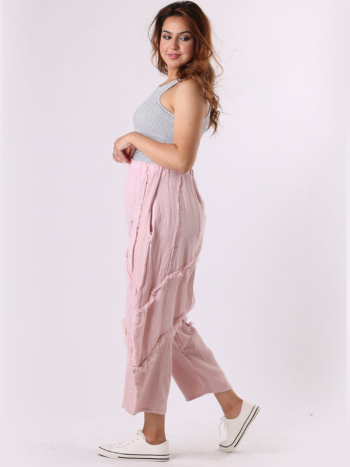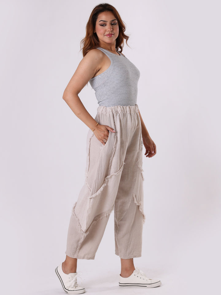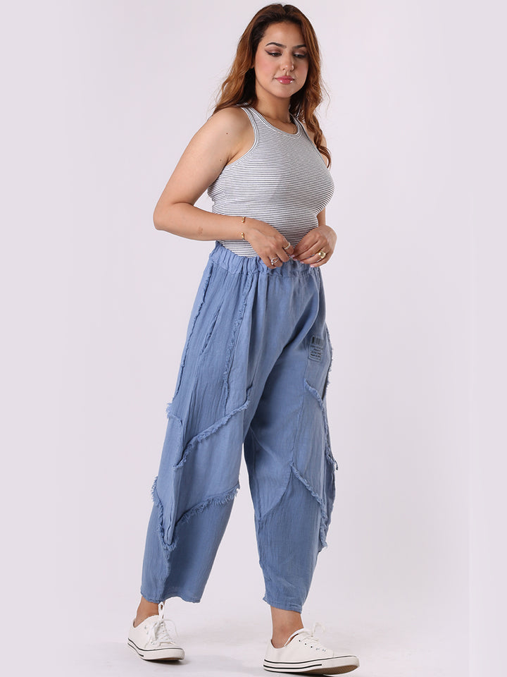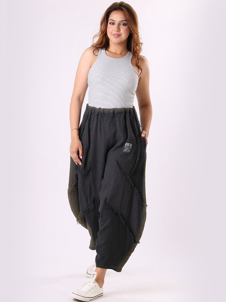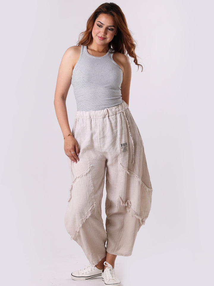 Italian Mesh Net Patches Plain Linen Slouchy Trouser