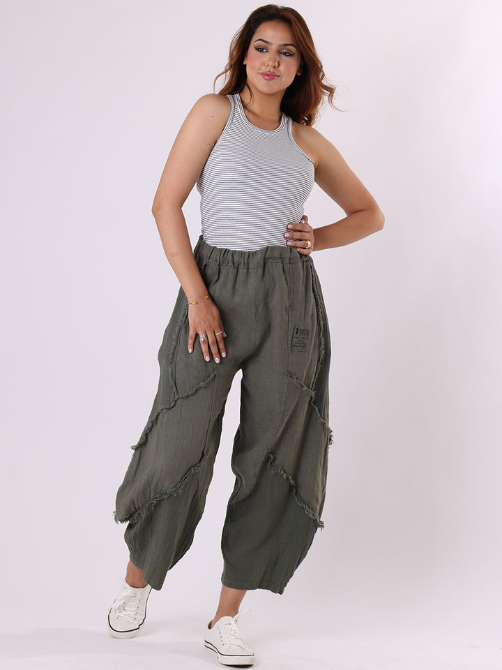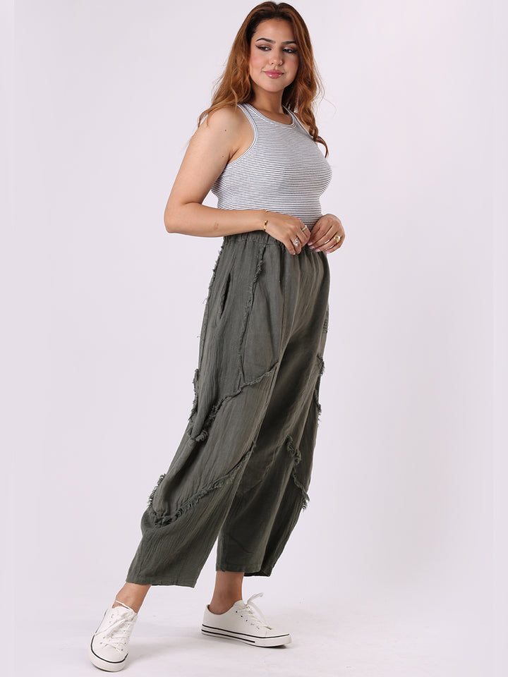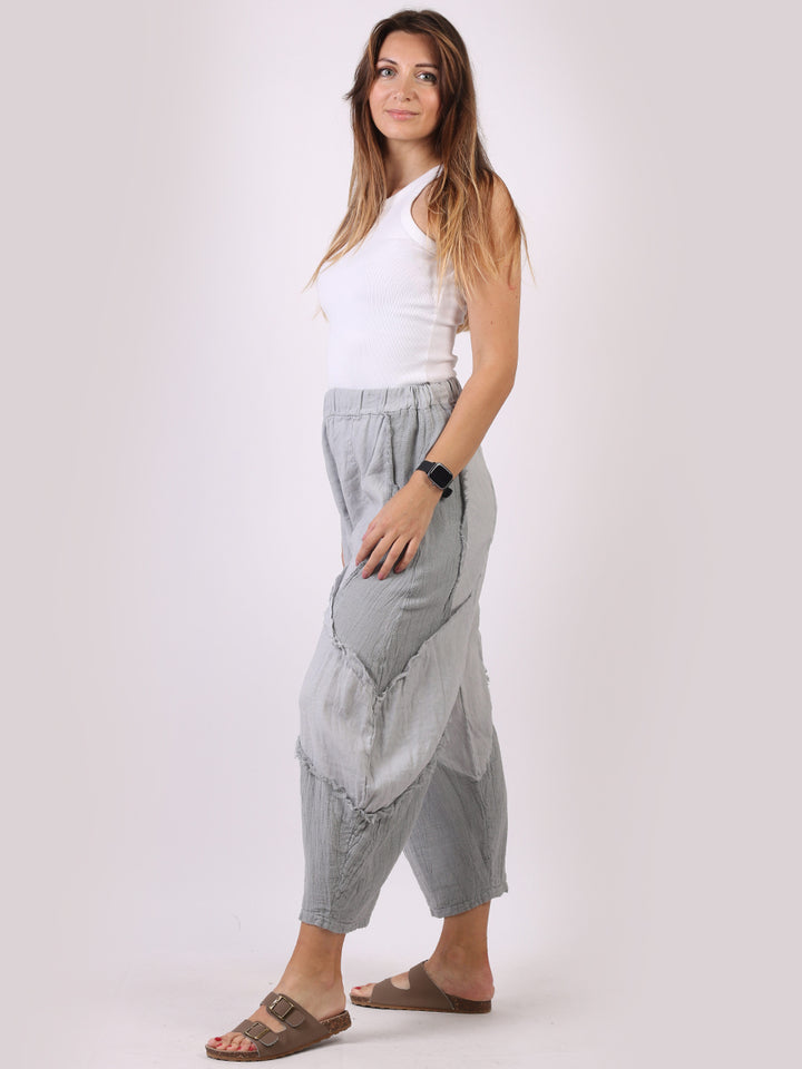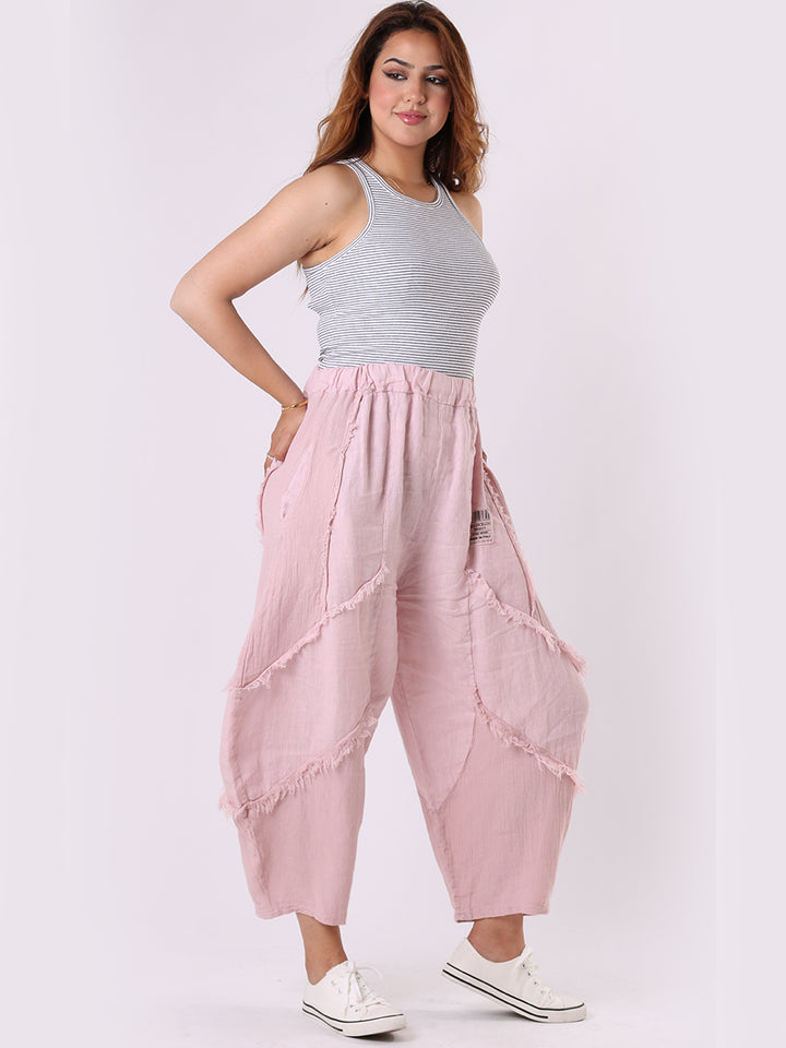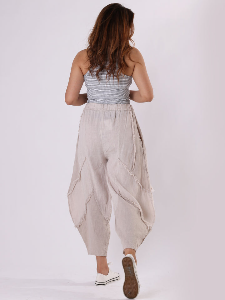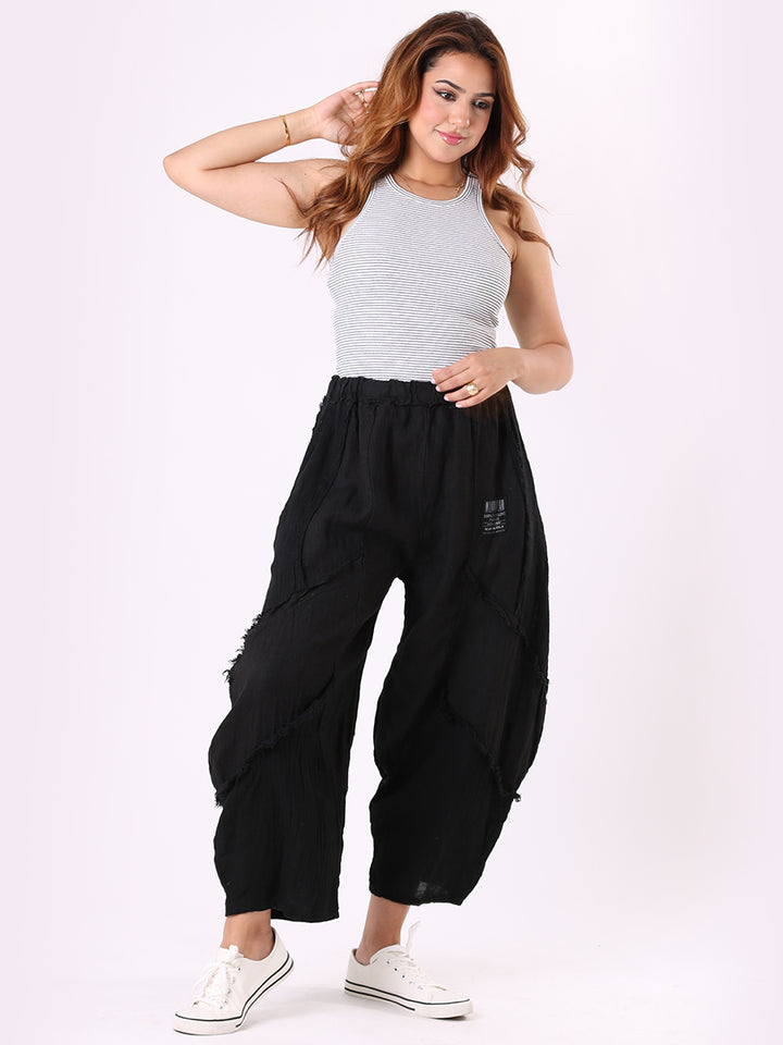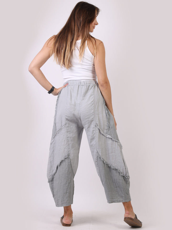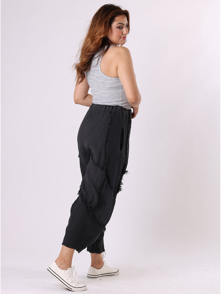 Italian Mesh Net Patches Plain Linen Slouchy Trouser