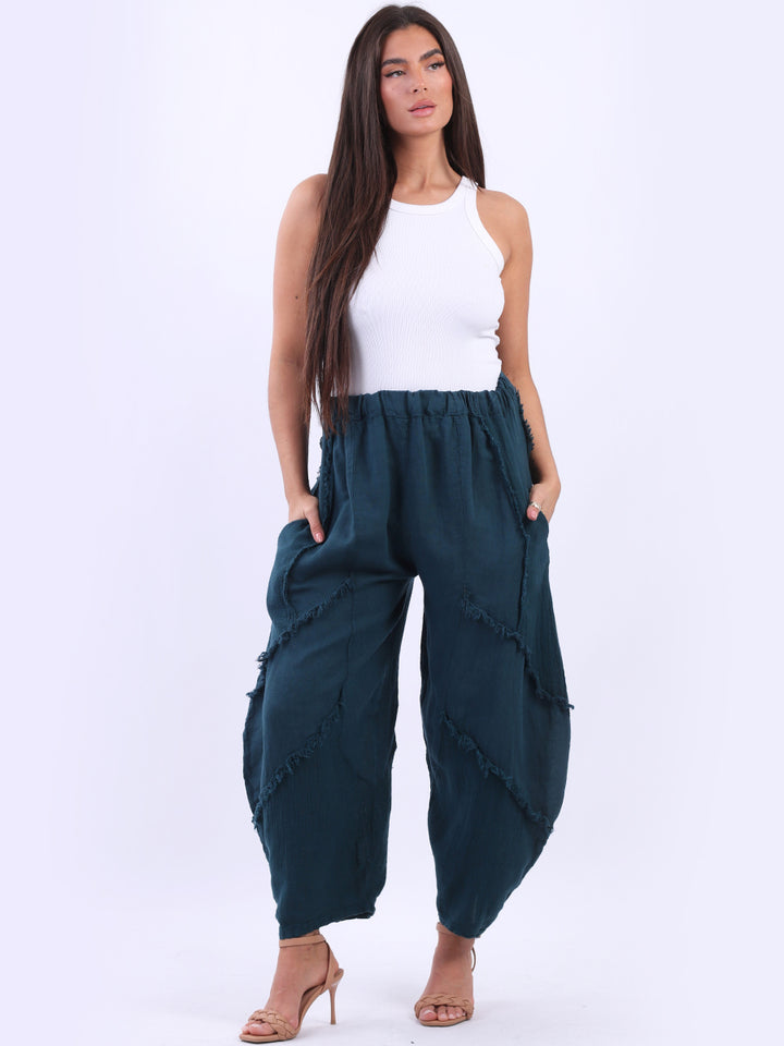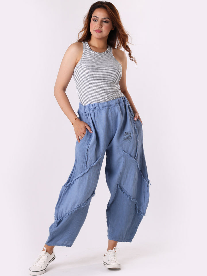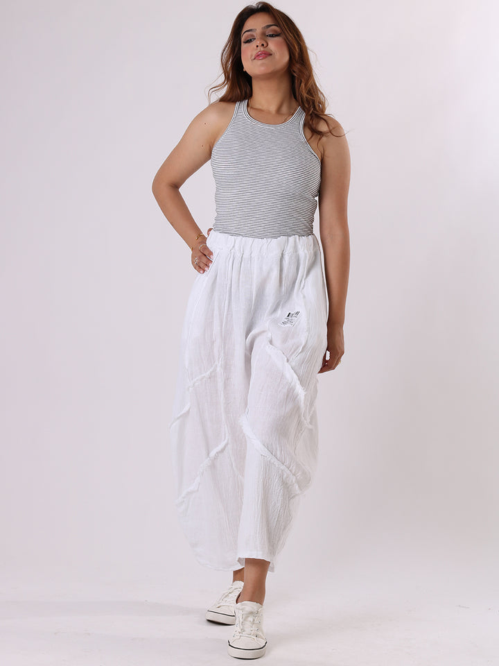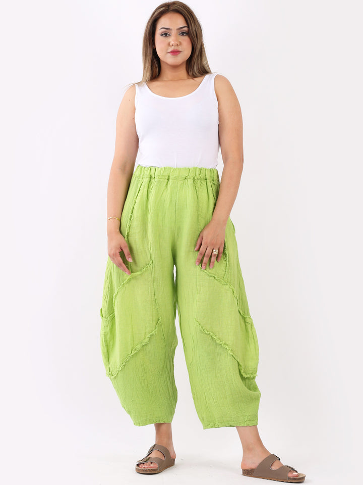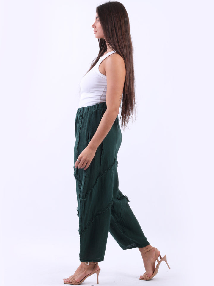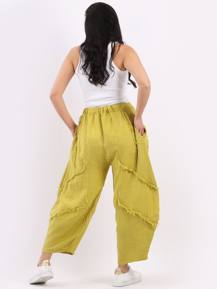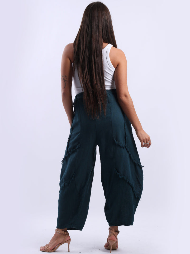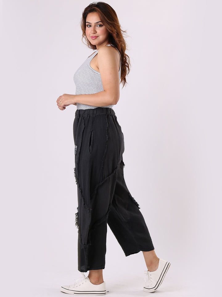 Italian Mesh Net Patches Plain Linen Slouchy Trouser