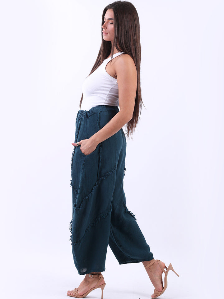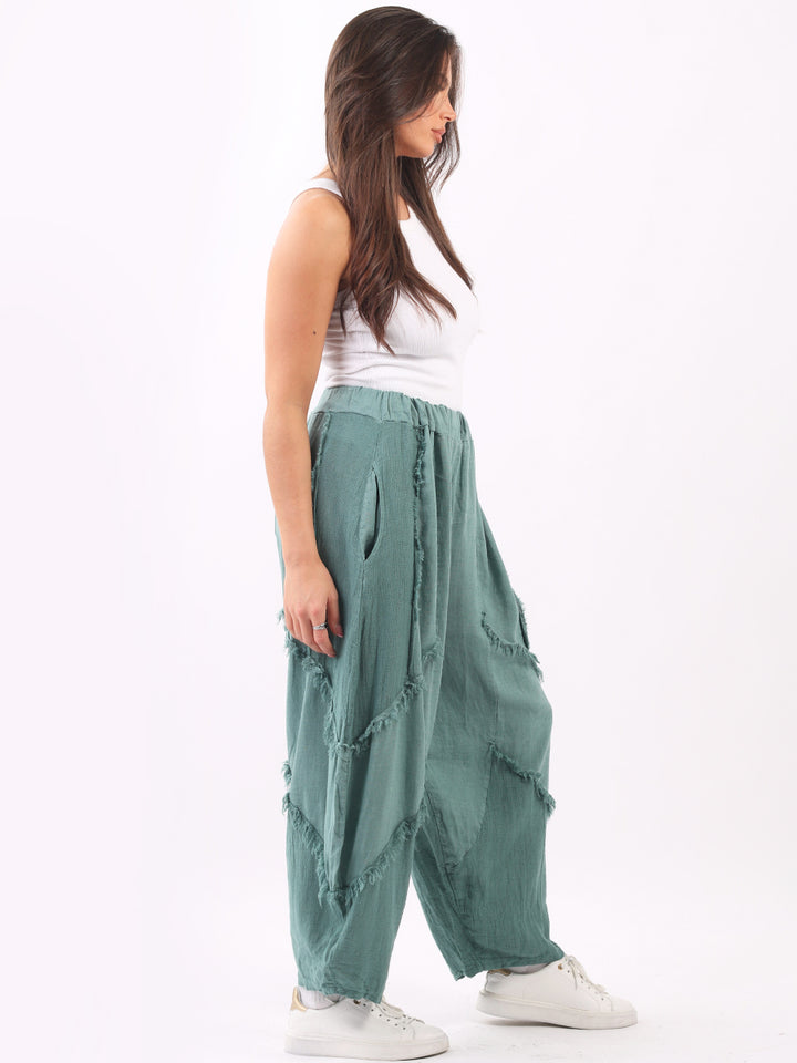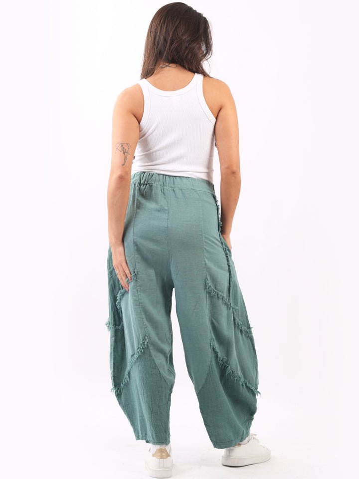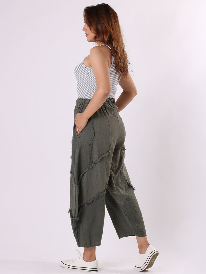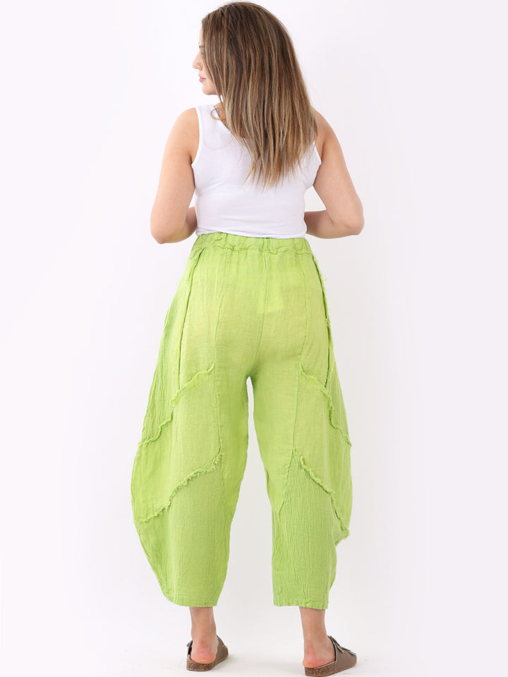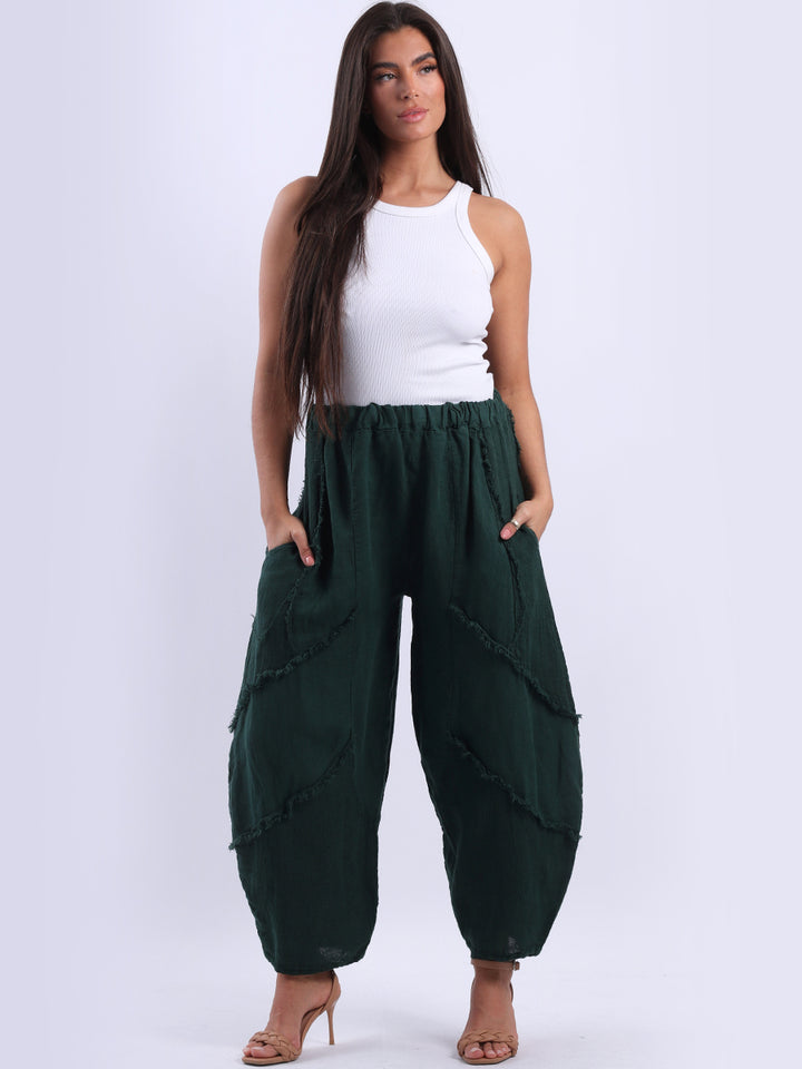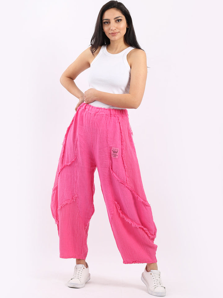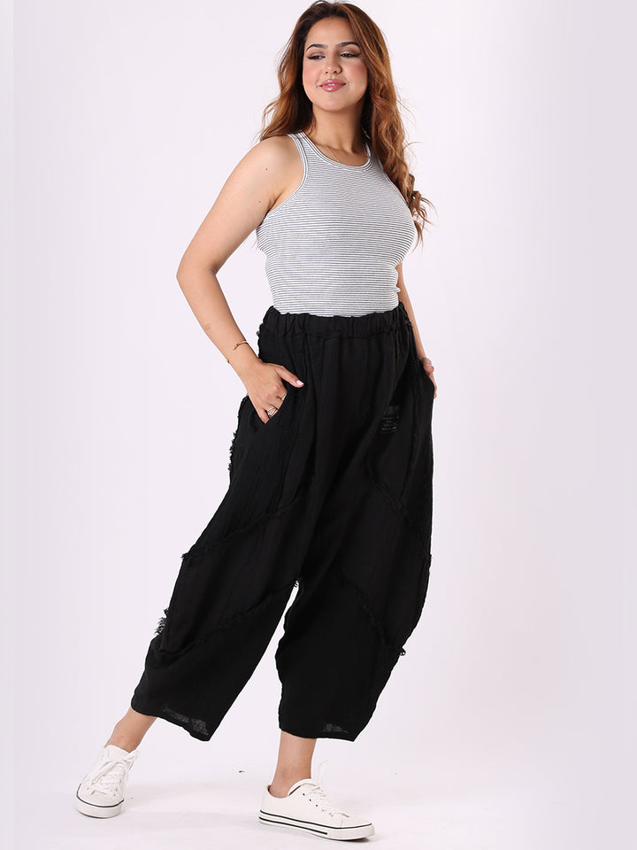 Italian Mesh Net Patches Plain Linen Slouchy Trouser