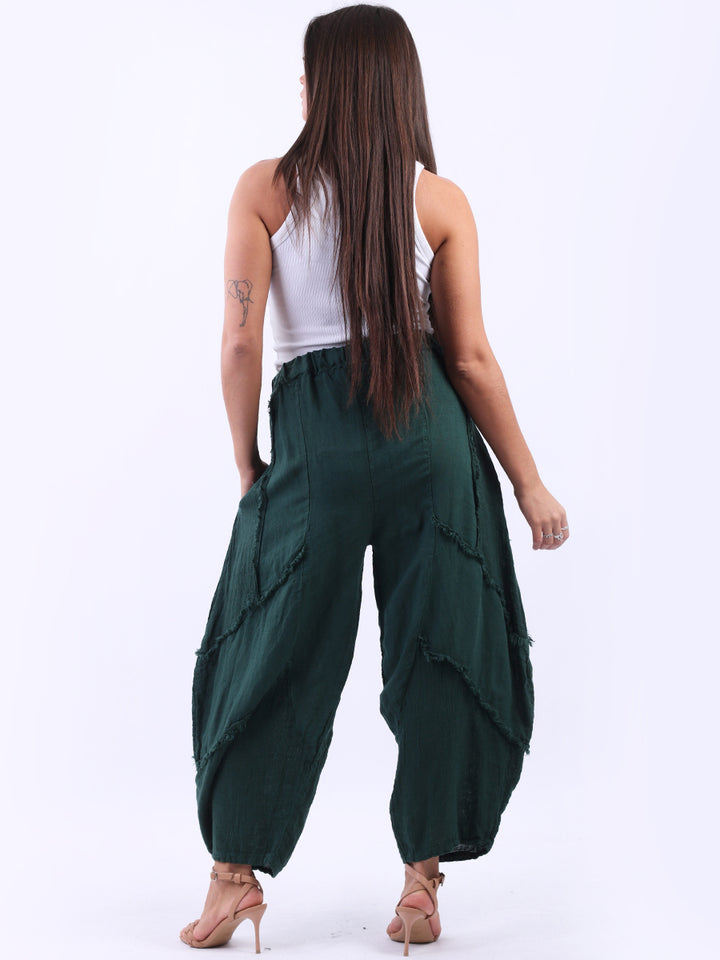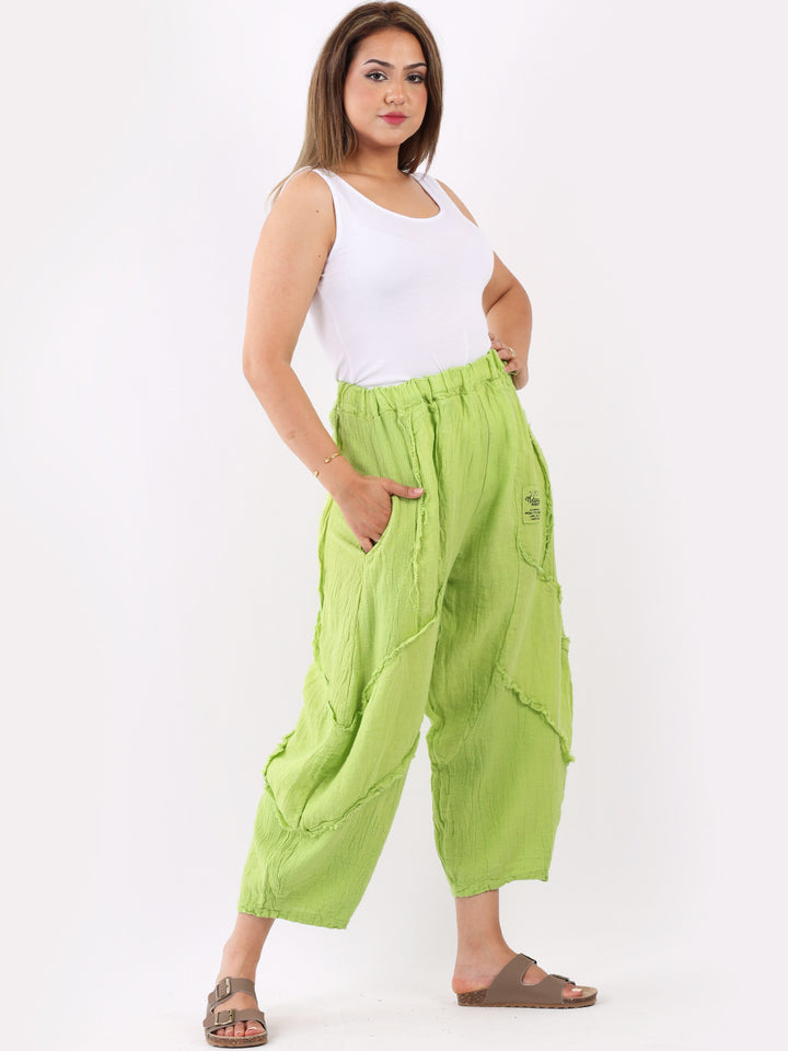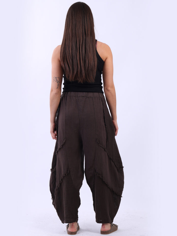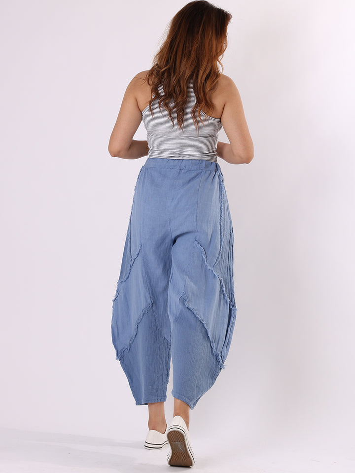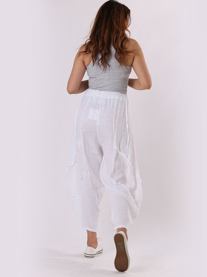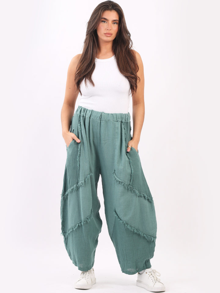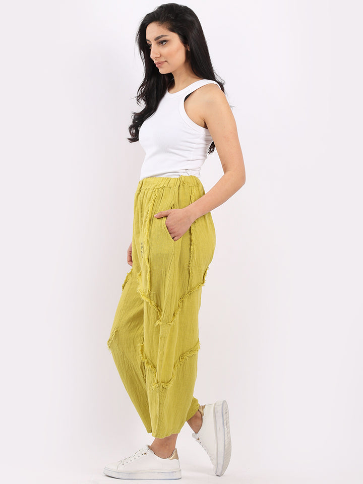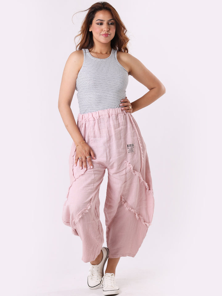 Italian Mesh Net Patches Plain Linen Slouchy Trouser