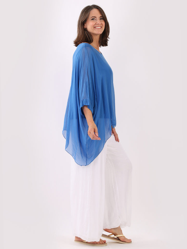 Endure simplicity with lustrous style by opting for this tunic top. Round neck and batwing sleeves are adorable when tailored in single color. It suits the formal office wear to evening leisurewear. Pair with printed denims for chic attire.