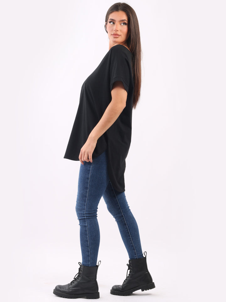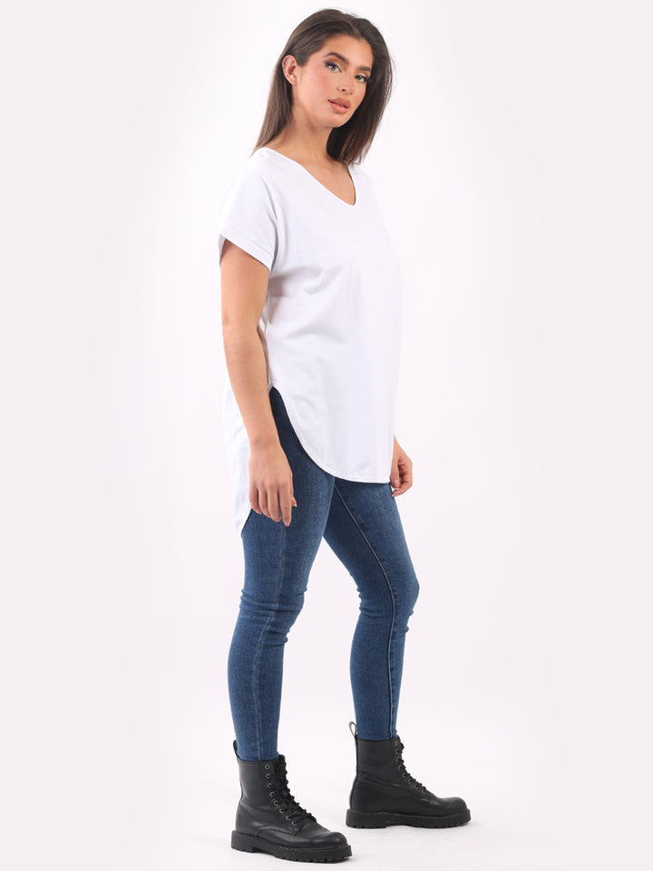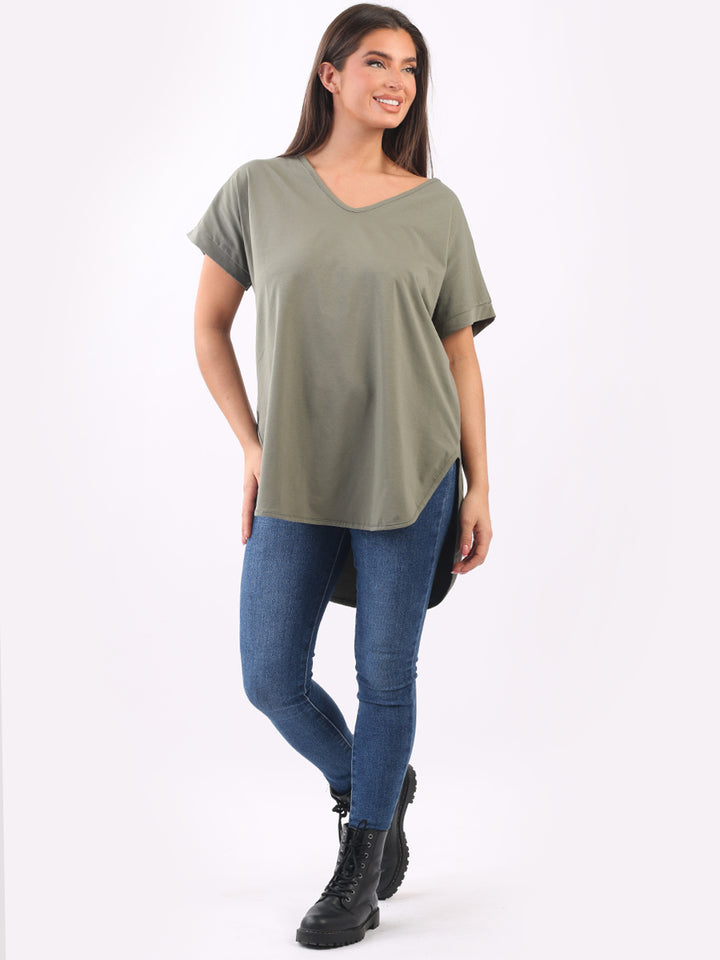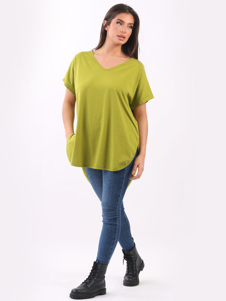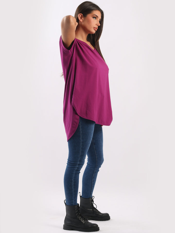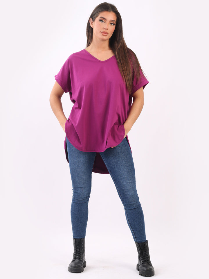 Outclass and yet laid back this is the ideal addition to the women's wardrobe. Made in Italy with finest quality cotton and features like plunging V-neckline, baggy plus size fit and bold beautiful colors. Dress it with skinny denims and long boots.